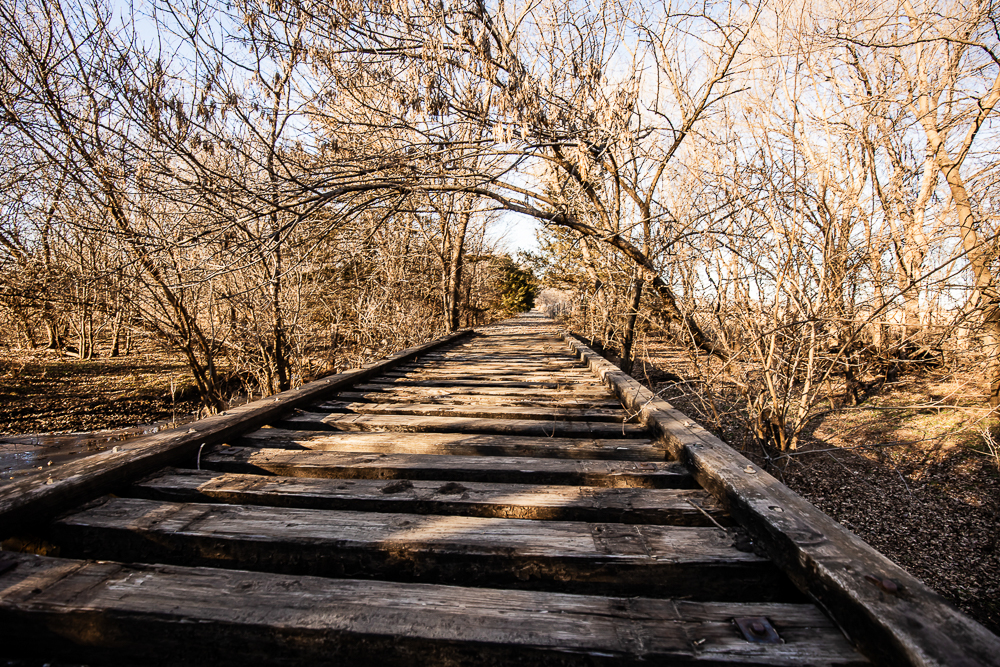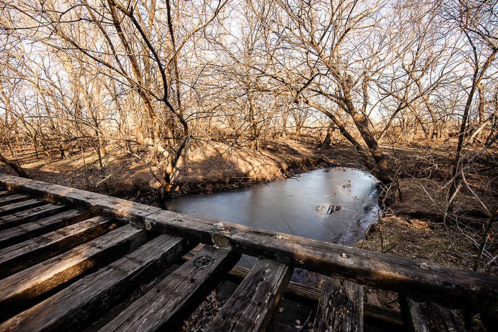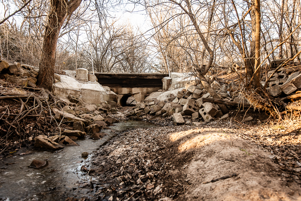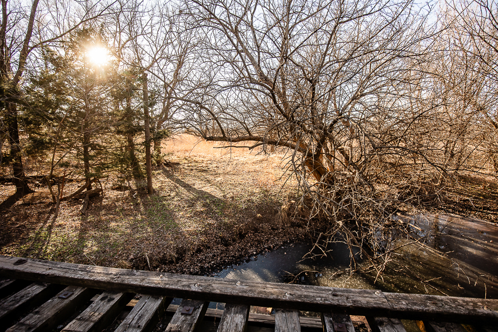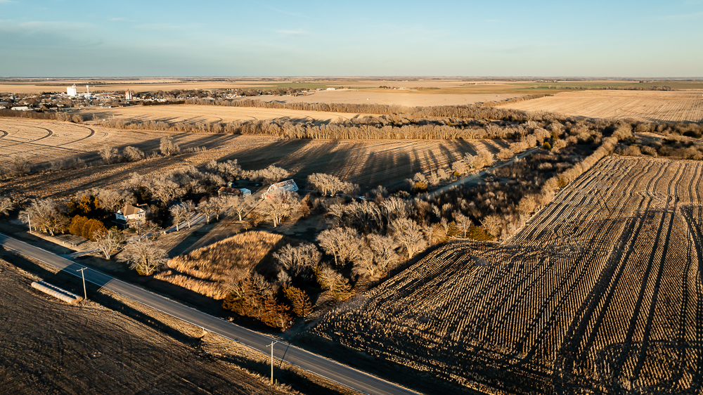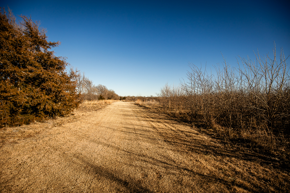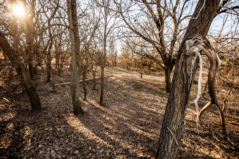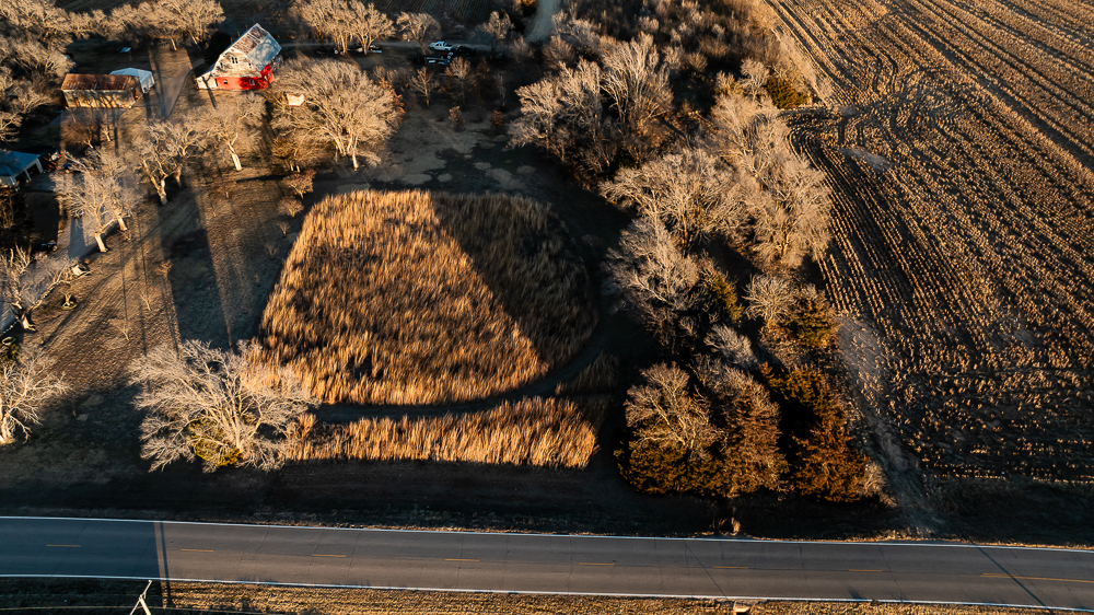 The remaining 32 +/- acres south and west of the creek is categorized as pasture, thick grass, interspersed tree cover, and a drilled water well for cattle grazing. There is fencing on two sides of the property and partial fencing on another side. Not much effort, and this could also be used for homesteading or a small herd of livestock. There are elevation changes that drain to the creek, pools of water remain even through the driest of season but are too small for fish. A new owner could construct a large pond, building an impoundment across the creek that would fill with seasonal rainfall, creating additional water for livestock and wildlife. The entire eastern boundary of the property is an abandoned railroad bed, a subdivision line of the Santa Fe Railroad that went from Hutchinson to Blackwell, Oklahoma, stopping at the Depot in Pretty Prairie until 1961. There is a unique bridge that is still sturdy as can be, and this path has been maintained for clearance and access for equipment through the property. There are also local stories of Native American camp sites along Boundary Road and settlements in this forested area.