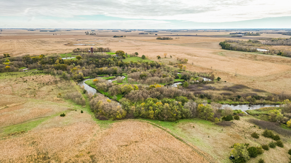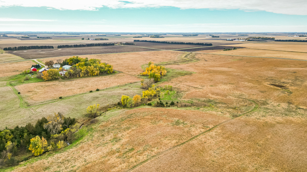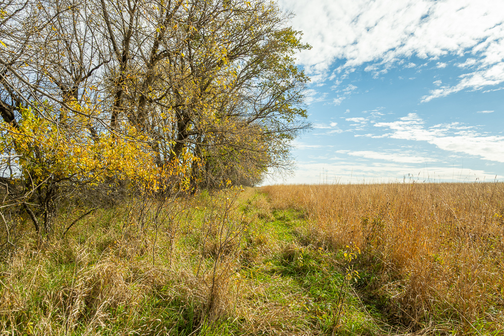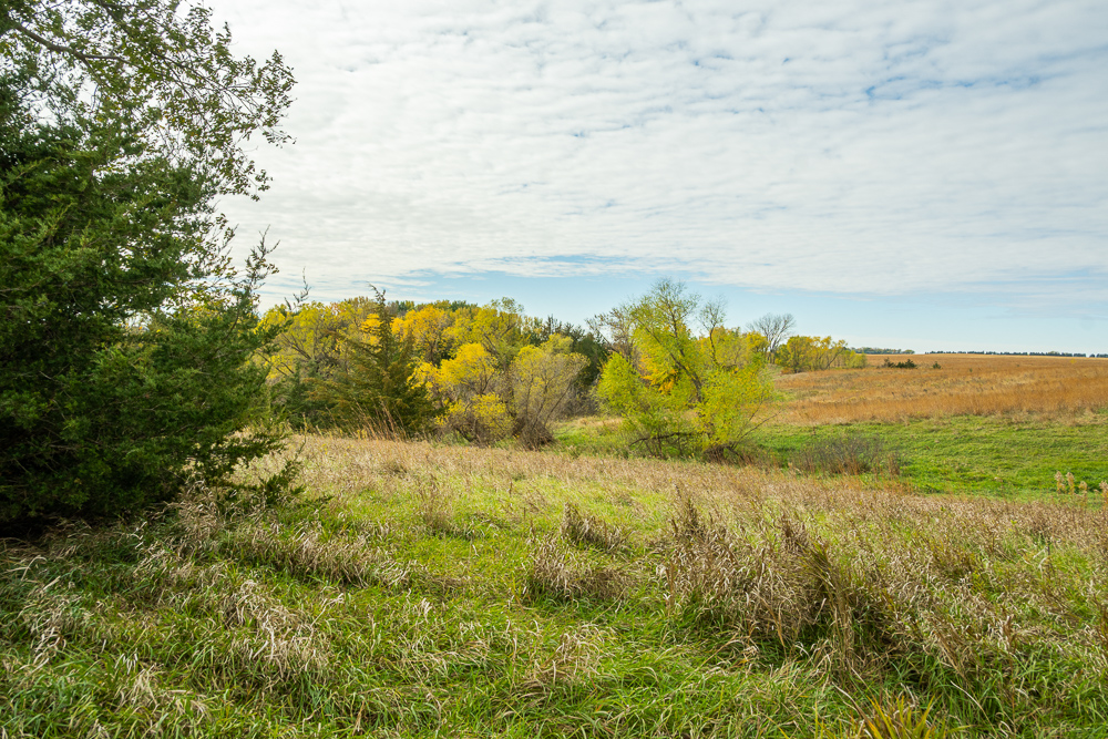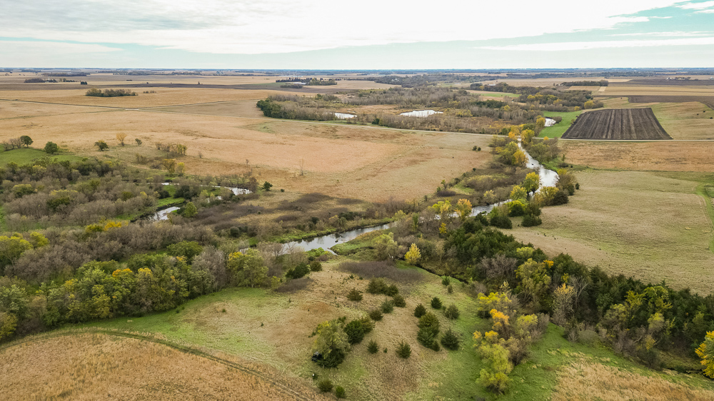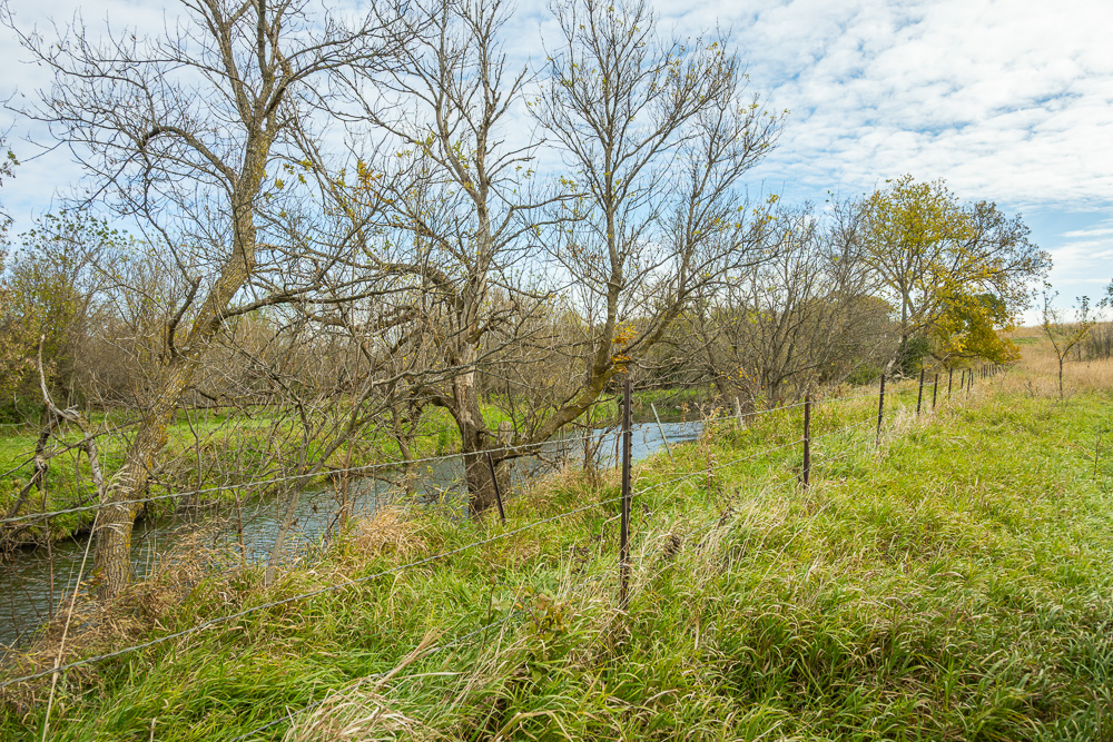 Beaver Creek meanders through the land, providing year-round water sources and natural travel corridors for wildlife. The east end features several ponds perfect for waterfowl, while the thick creek bottom, native grasses, and timbered draws provide excellent cover and bedding for deer, pheasants, and turkeys. A trail system allows easy access throughout, making it simple to manage habitat or move between stands. Surrounded by productive ag fields, this tract holds wildlife year-round and produces consistent action in every season.