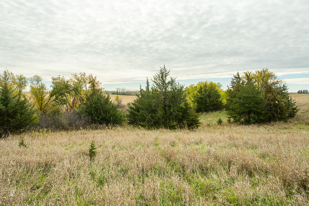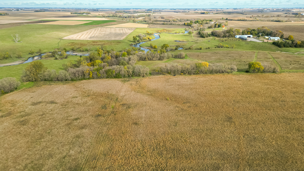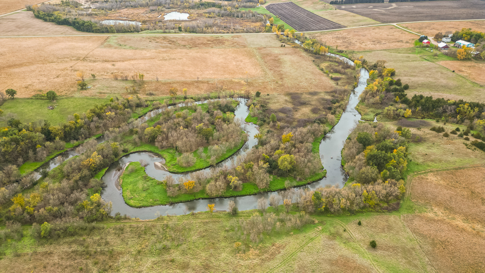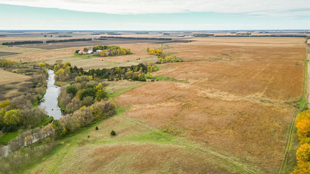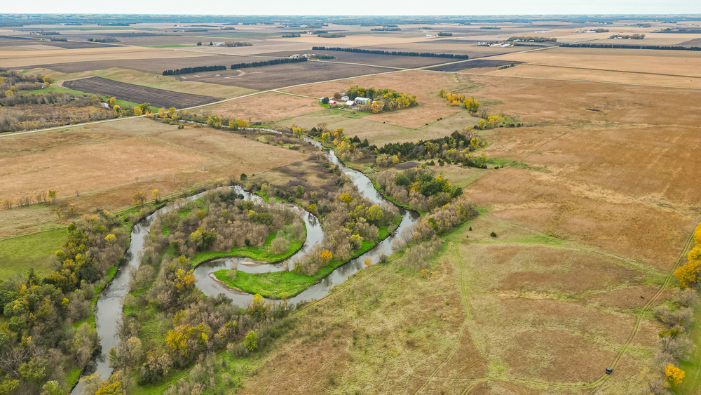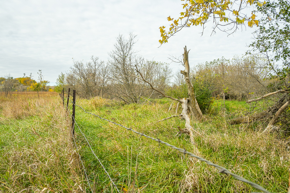 Beaver Creek meanders through the land, providing year-round water sources and natural travel corridors for wildlife. The east end features several ponds perfect for waterfowl, while the thick creek bottom, native grasses, and timbered draws provide excellent cover and bedding for deer, pheasants, and turkeys. A trail system allows easy access throughout, making it simple to manage habitat or move between stands. Surrounded by productive ag fields, this tract holds wildlife year-round and produces consistent action in every season.