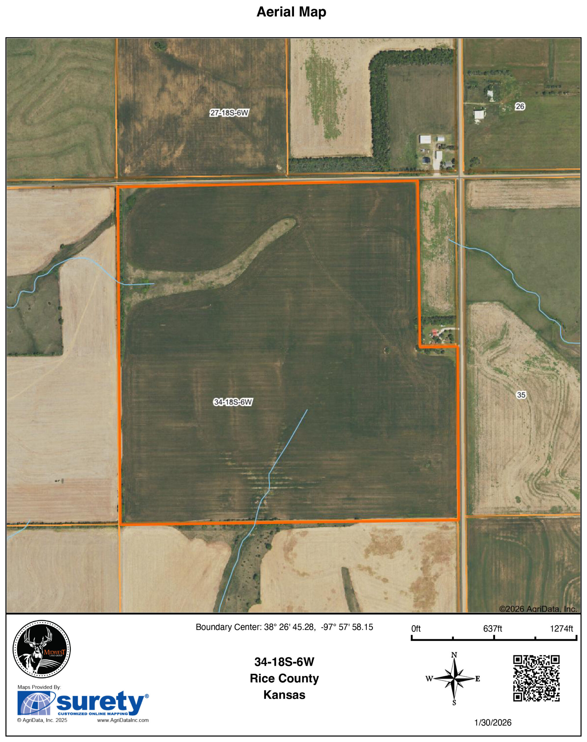 On the northeast side of Little River, Kansas, sits a quality 150 +/- acre piece of dryland farm ground. The farm has nice rolling topography and a nice waterway with lush native grass habitat. The farm has been managed very well over the years, with minimal tillage in place, conserving water and organic matter. Soil composition on the farm is mostly Crete Silt loam, with the remaining being Lancaster Loam. The farm carries a solid NCCPI score of 61.2. FSA acres are estimated at 149.26, and tillable acres are approximately 142 acres of crop production.From a recreational standpoint, the waterway in the northeast corner has the proper habitat to hold pheasants and quail, with proximity to crops that is always a plus. The farm would make for excellent future CRP for future upland hunting. The southern half of the farm has the proper topography and drainage to build a nice lake. With power at the road and nearby rural water, it makes for a great location and blank canvas for the home overlooking a nice pond and a Kansas sunset. To answer questions regarding possession or current tenant arrangements, please call Tyler Heil at (913) 207-4541.