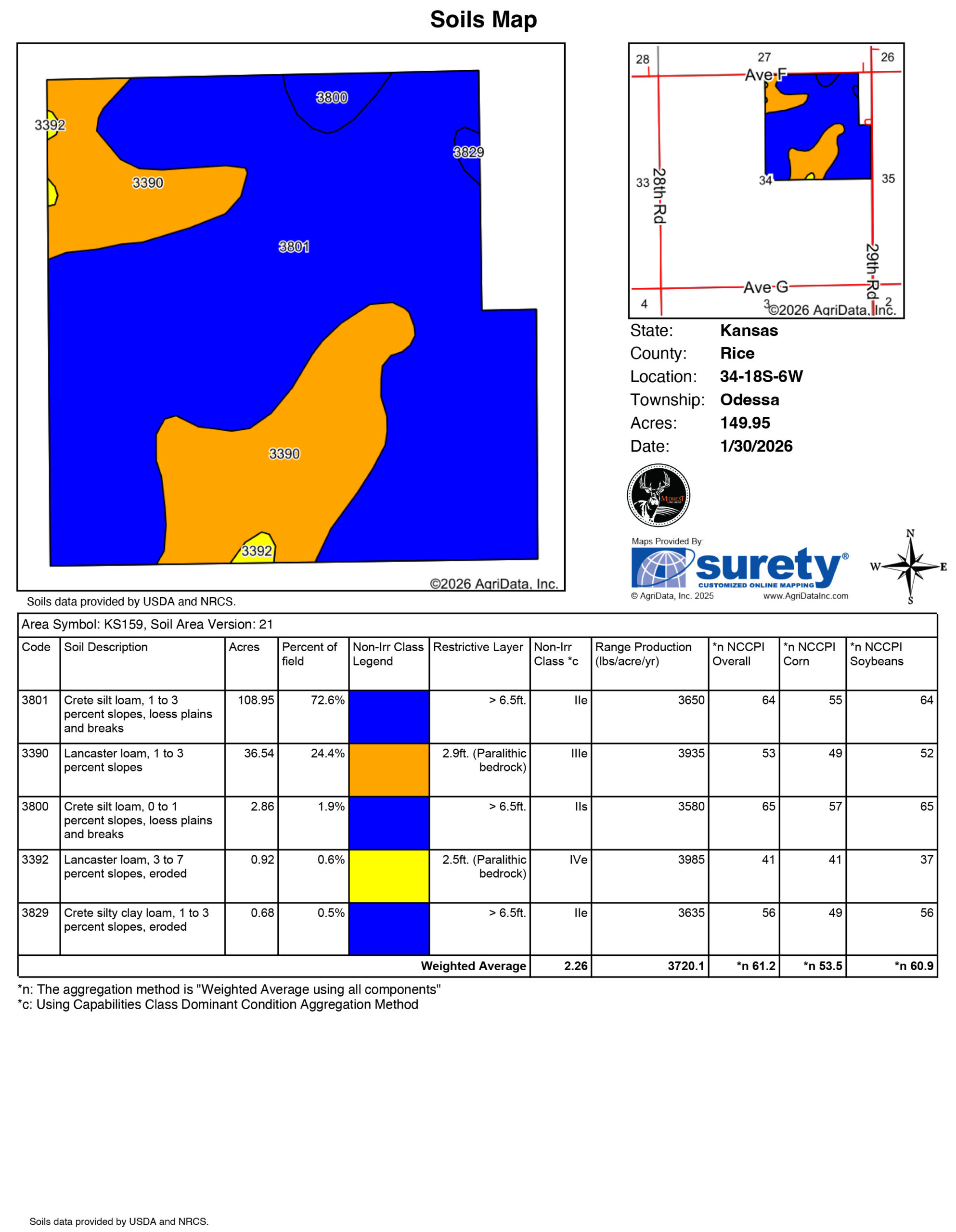 - Crete & Lancaster Loam soils