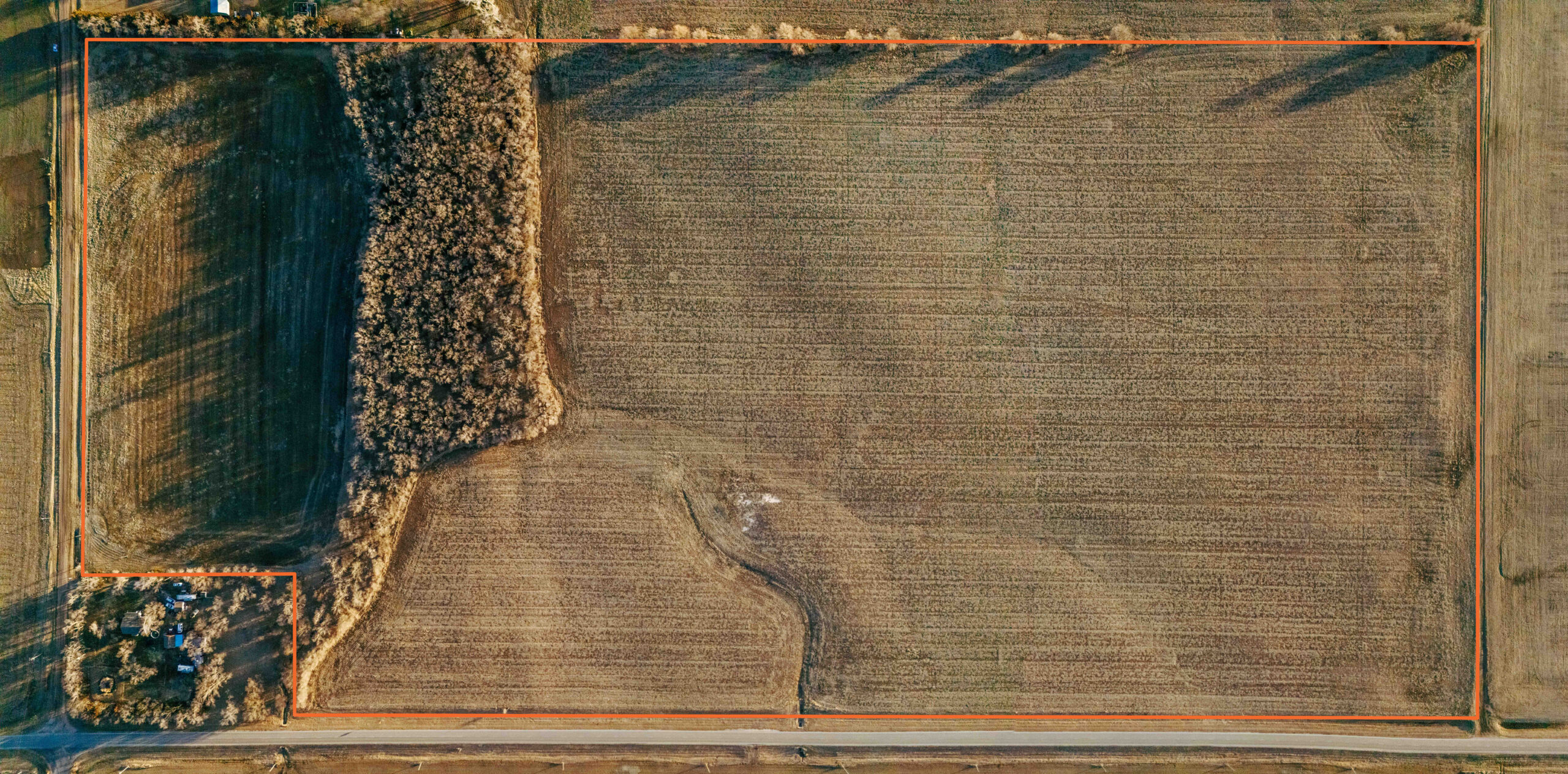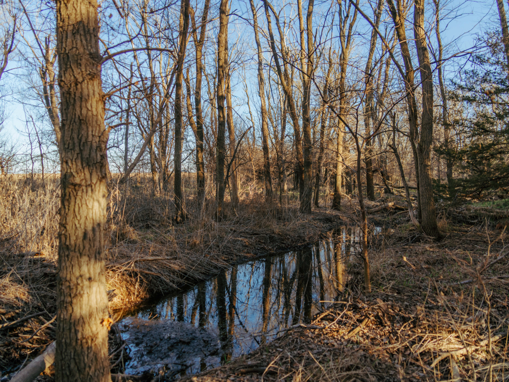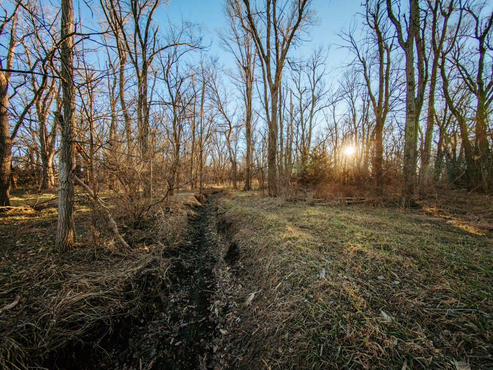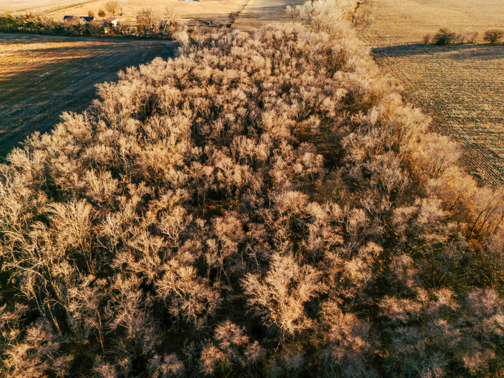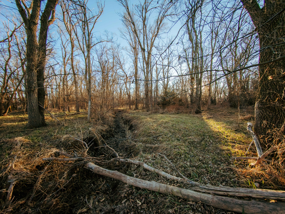 This farm has a solid 7+ acres of trees that has a nice seasonal creek through it. This area is covered with deer sign. One walk through this area will reveal many scrapes, broken limbs, and rubs from bucks that travel through here. The utility pole in the ditch alone is a sign of what travels this farm throughout the fall. The east side of the property also offers a nice secluded area for building and enjoying the wildlife right in your own backyard.