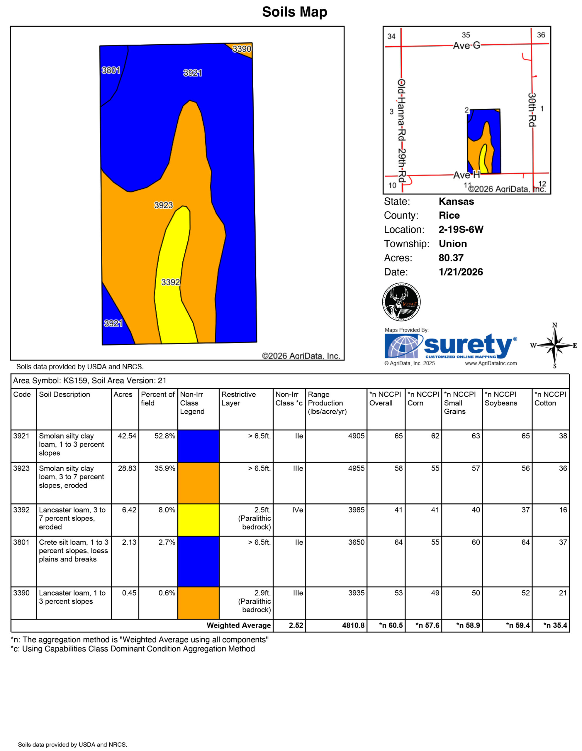Just off H Avenue, this versatile 80 sits currently in thick, lush CRP grass. The farm is re-enrolled into the CRP program starting in 2026. Giving any buyer the option to buy out of the contract and a substantial discount to put back into row crops or add to your cattle operation. The soil on the farm is nearly all Smolan with a little Lancaster Loam, generating an average NCCPI of 60.5. The topography on the farm provides any buyer with a great opportunity to build a nice pond. The east half will give you multiple spots on top of the hill to build on. Giving you a nice southwest view of the Kansas sunsets. The farm is also home to a few quail and quality Kansas Deer hunting. We have documented several quality deer that have made it through this deer season and will be very nice bucks next year.
