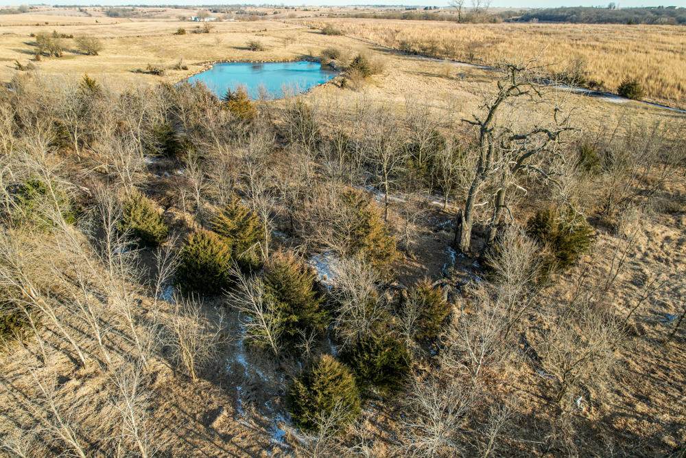 Cedar thickets and native grasses provide dense bedding cover, while the rolling terrain forms natural funnels and predictable stand locations. Two established ponds and a strong year-round creek create consistent water sources and movement corridors, concentrating deer travel and strengthening rut activity patterns.The creek acts as a primary travel route through the property — the type of feature mature bucks use to move between bedding and feeding areas with security.