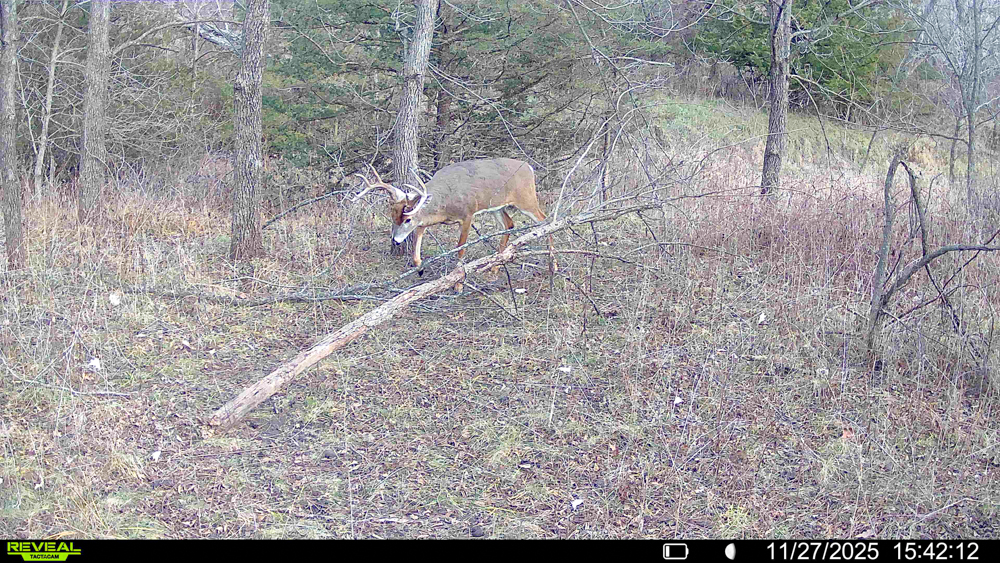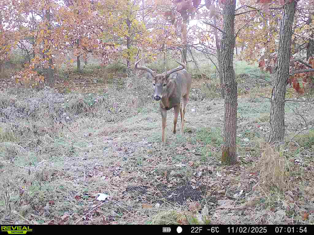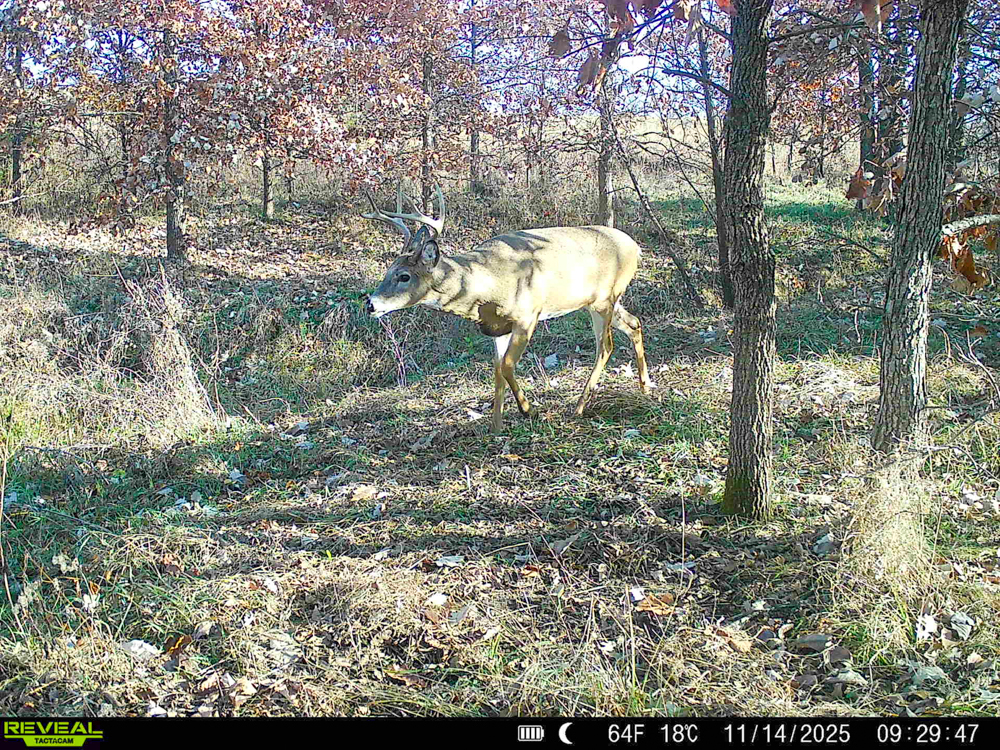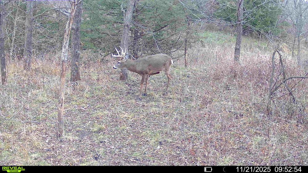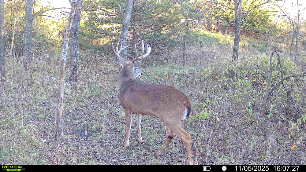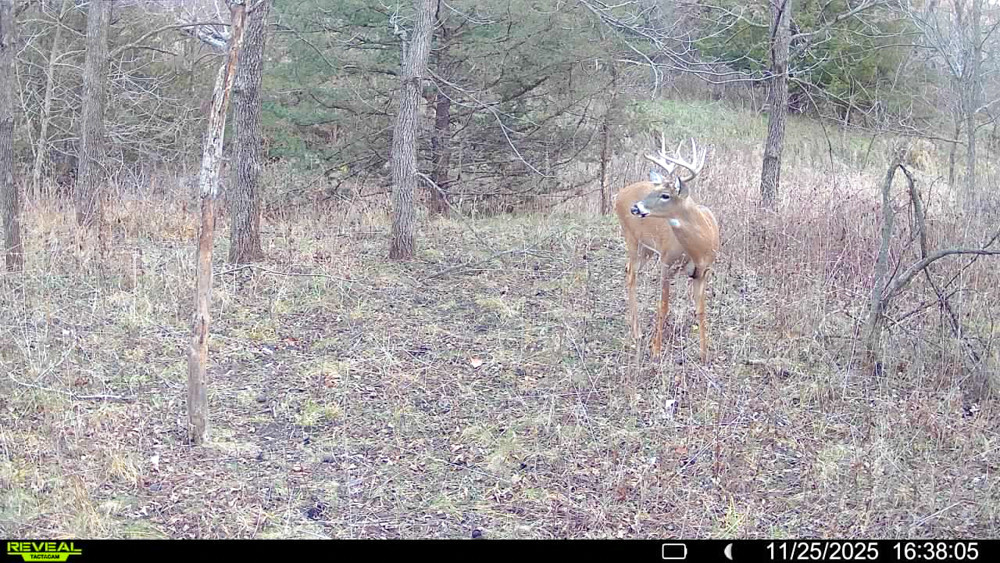 During November alone, two trail cameras documented multiple mature bucks and a strong age structure — a testament to both the farm’s layout and the strength of this Ringgold County corridor.