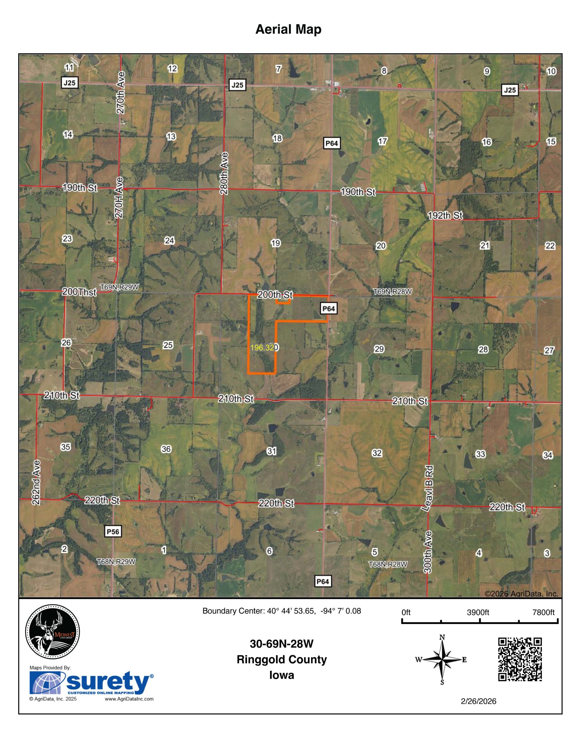 This 195 +/- acre offering east of Mount Ayr represents what serious land buyers pursue in southern Iowa — a rare blend of high annual income, developing hardwoods, diverse water features, and proven trophy whitetail potential in a highly respected neighborhood.