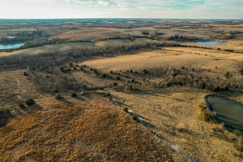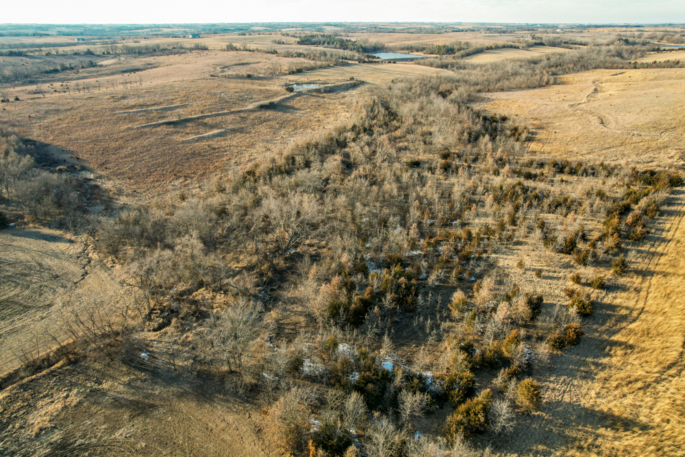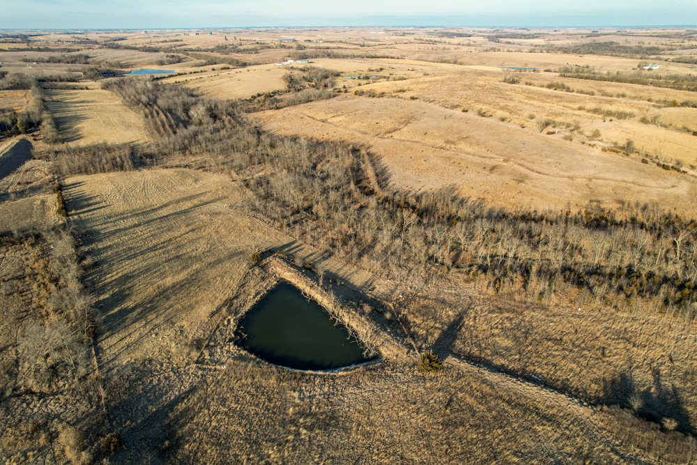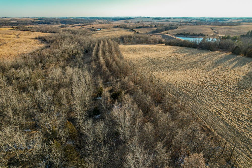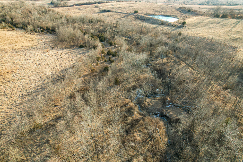 Approximately 10 years ago, a CRP tree planting was established, and those oaks and walnuts are now maturing into a legitimate hardwood component. These plantings, combined with cedar thickets, warm-season grasses, strong edge cover, three ponds (two on the 140-acre portion and one on the 55-acre tract), and a beautiful year-round creek, create the type of layered habitat structure mature bucks seek. This farm boasts some phenomenal locations for food plots that would elevate it to the next level.