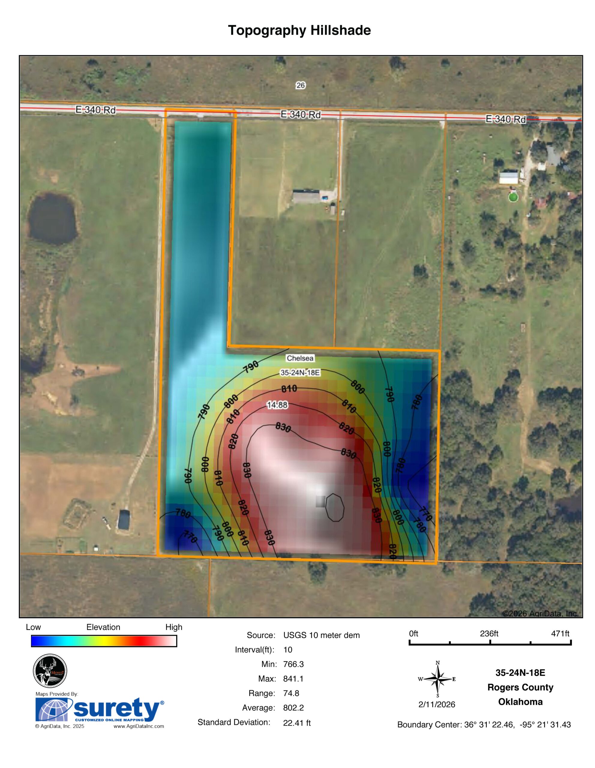 • East 340 Road frontage (blacktop)