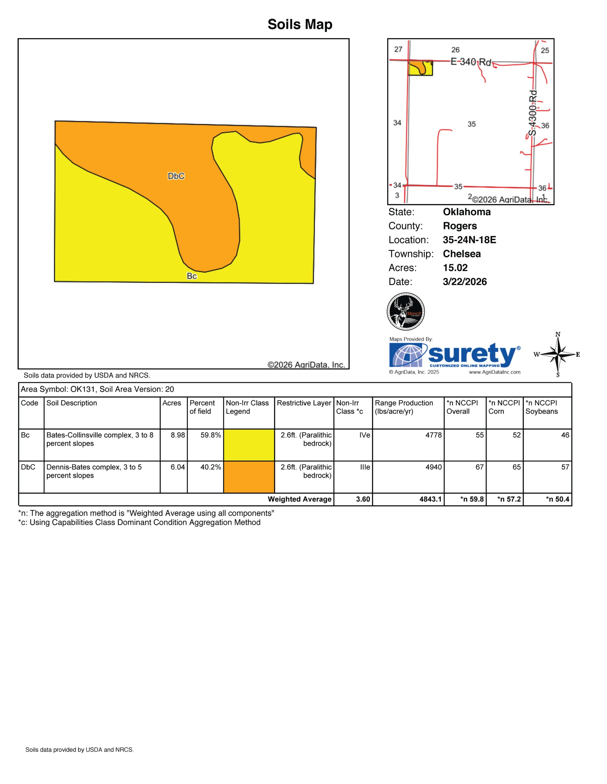 Located in desirable Rogers County, Oklahoma, this beautiful 15 +/- acre tract offers the perfect blend of functionality and country charm. With blacktop frontage along East 340 Road and South 4290 Road, access is convenient and reliable, making this property ideal for a homesite, small ranch, or investment opportunity.