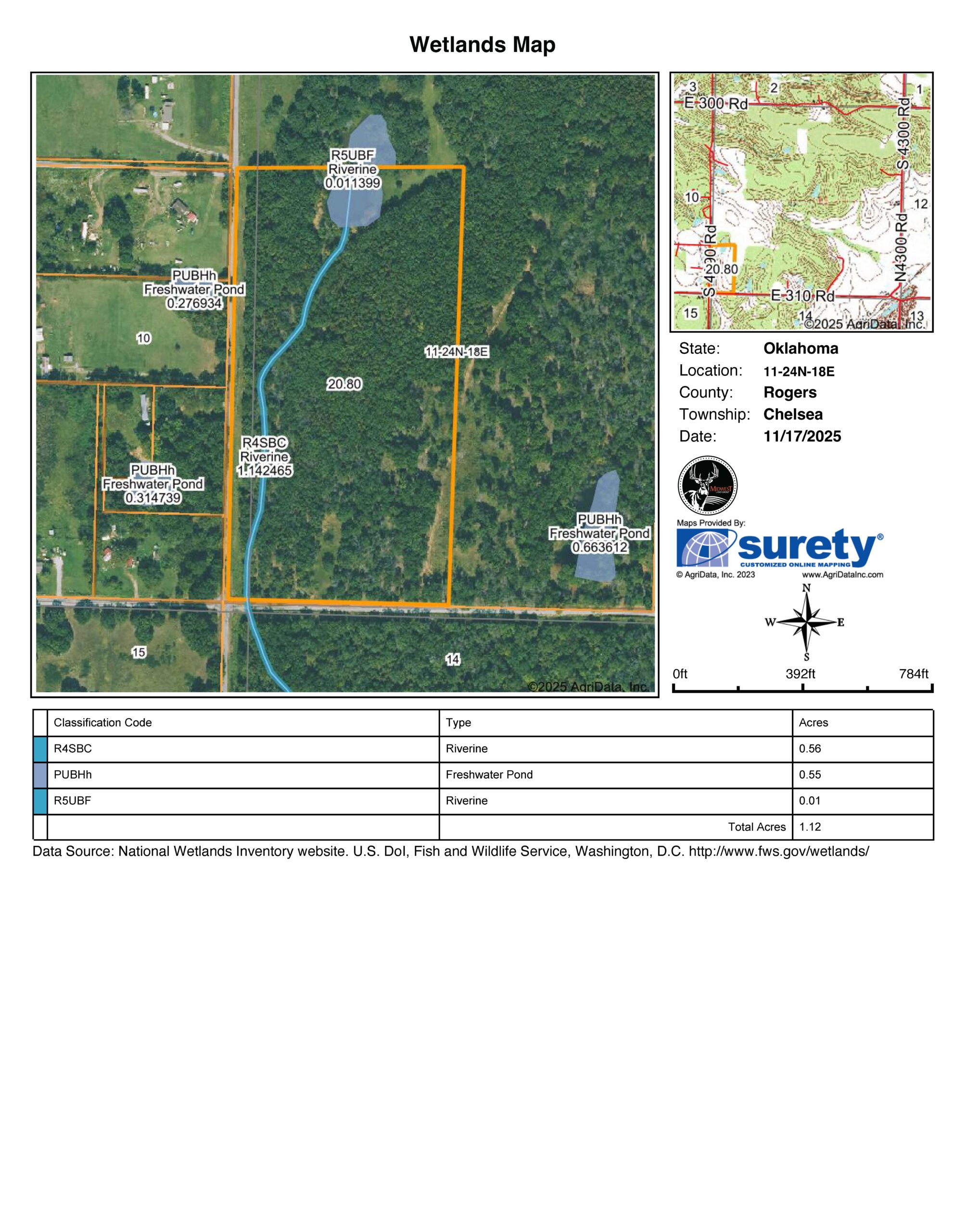 20.8 surveyed acres of scenic Rogers County land offering mature hardwoods, rolling terrain, and a picturesque pond. Situated on a hard corner with blacktop frontage along both South 4290 Road and East 310 Road, this tract delivers prime access and endless potential. Utilities — including rural water and power — are already available at both road frontages. Multiple build sites make this property ideal for a private homestead, weekend retreat, or future development. Just 10 minutes to Claremore, 30 minutes to Grand Lake, and 1 hour to Tulsa, enjoy a peaceful setting without sacrificing convenience. Additional land available, contact listing agent Paul Smith for more info (918) 297-2737, shown by appointment only.