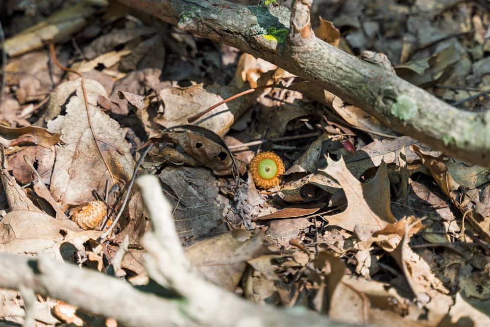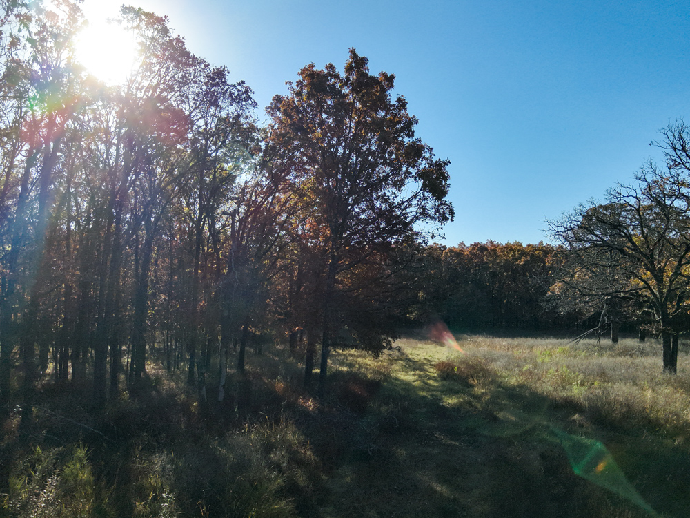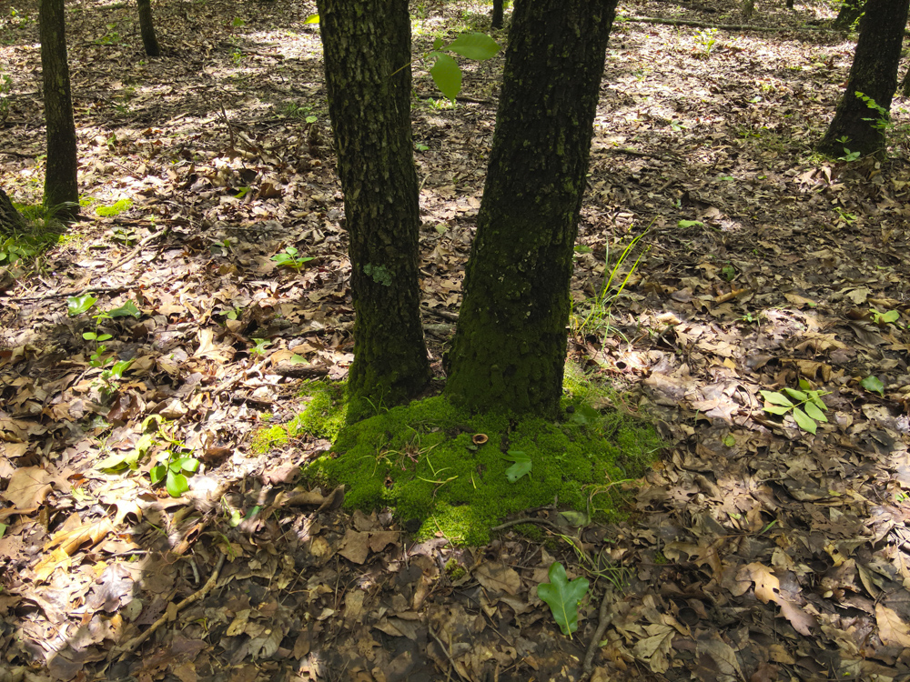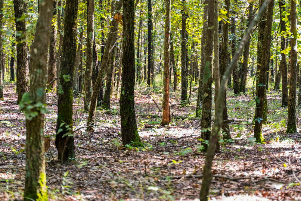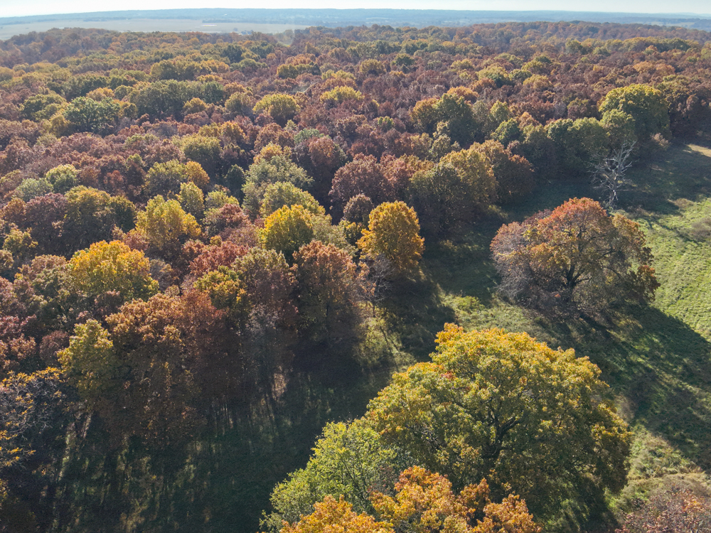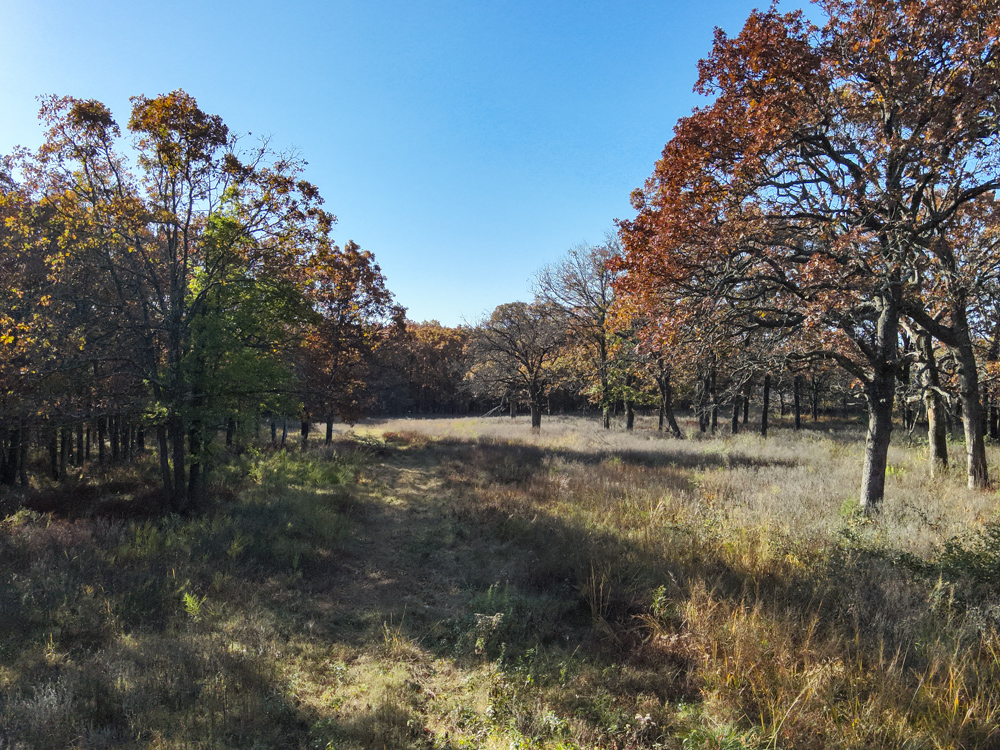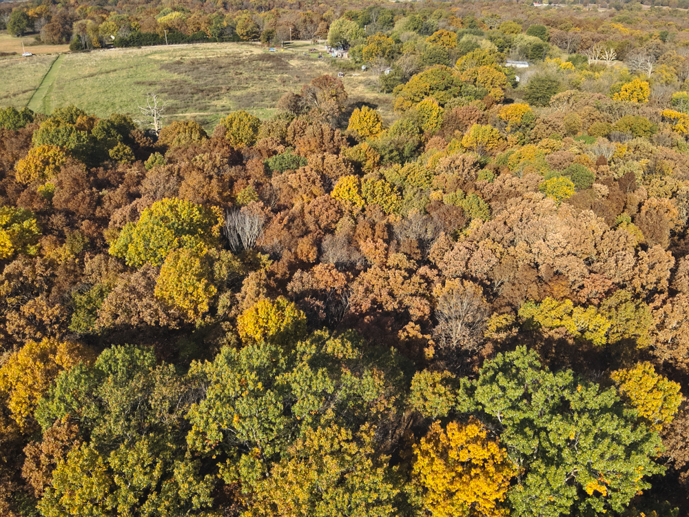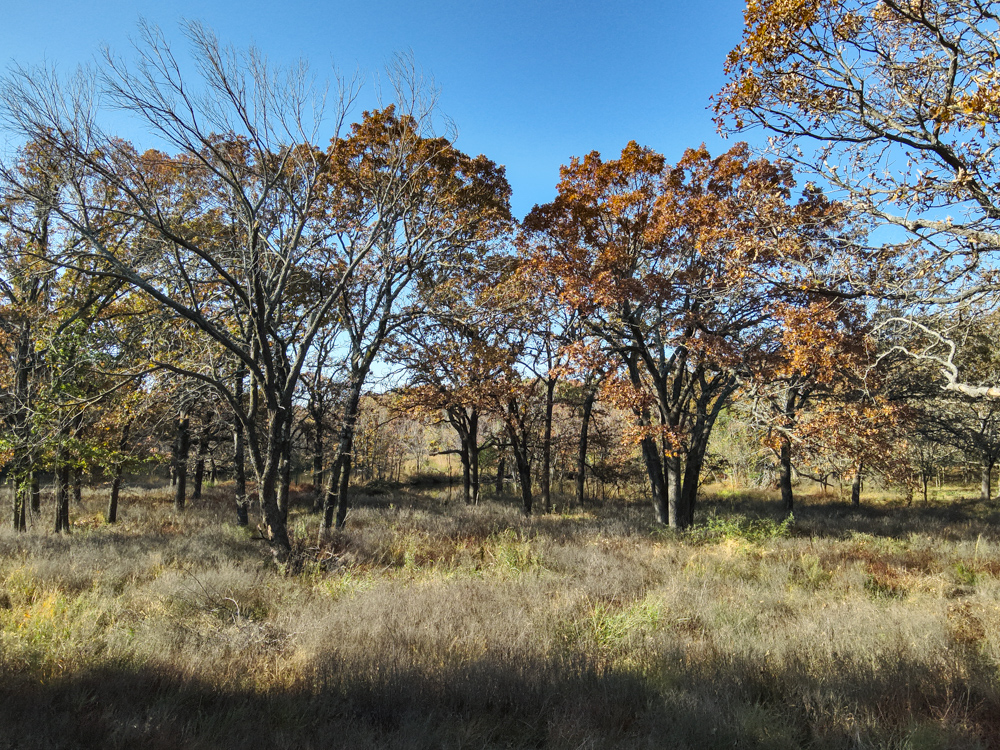 - Large oaks and walnut trees throughout