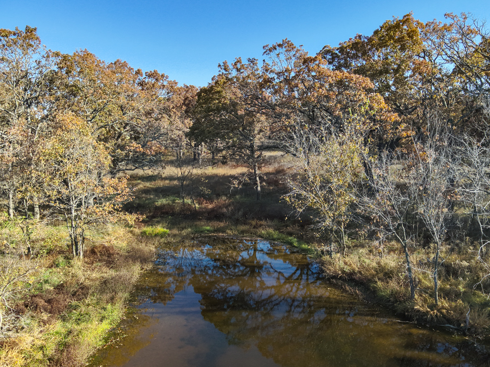 - Pond tucked within the timber
