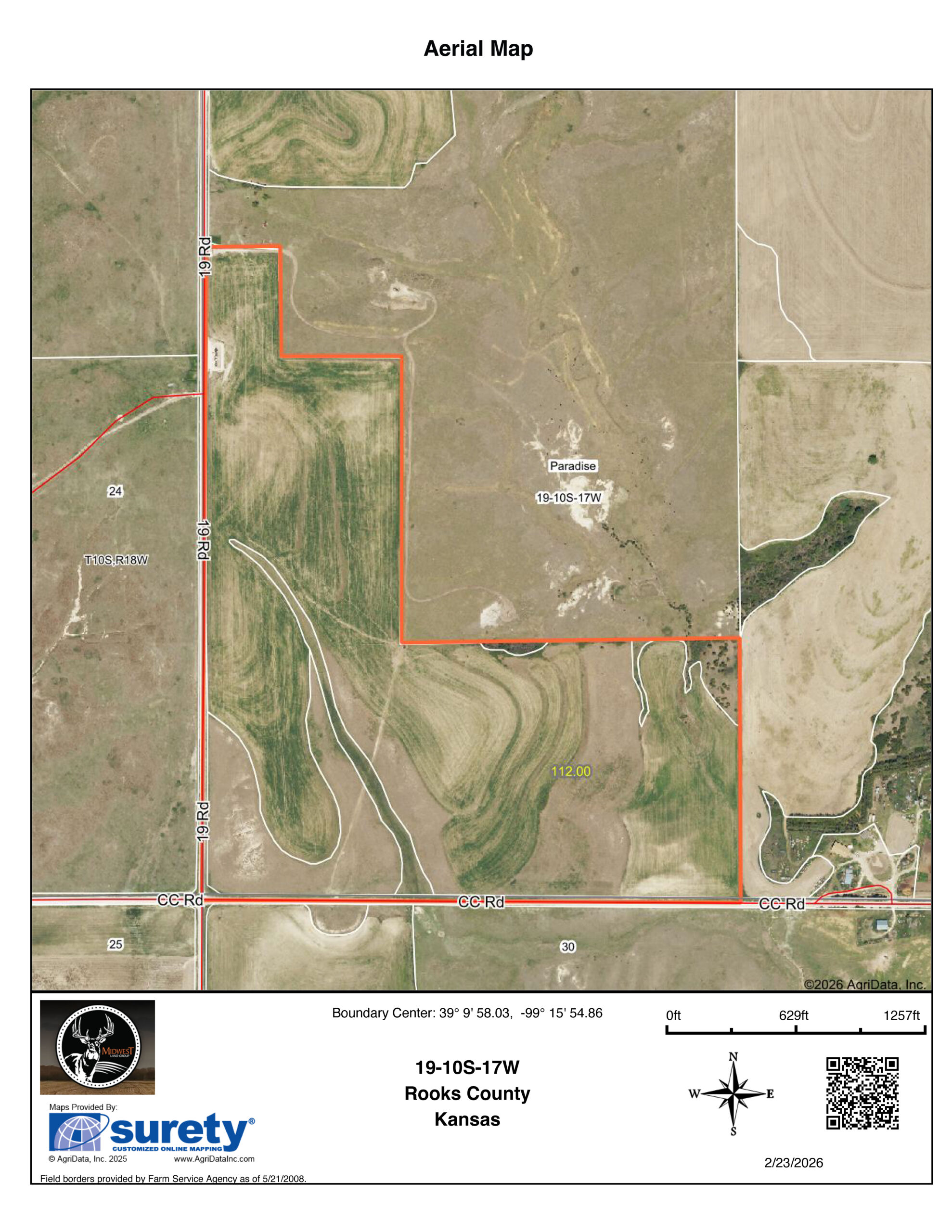 Here’s a chance to buy a smaller investment property with ample upland bird hunting opportunity as well. This 112 +/- acre surveyed property in Rooks County is the perfect blend of productive cropland and native habitat. Of the total acreage, 92.73 +/- is FSA tillable acres with the difference being native grass waterways, terraces, and thickets. Thick native grasses, plum thickets, and cedars provide cover near food sources for the thriving upland bird population. Fence lines, grass terraces, and lots of field edge make this small parcel upland hunt much bigger. Brand new fencing and gates encompass the entire property with good road frontage and power along two sides. Mineral rights are reserved. The property is currently cash-rented for $6,491 annually by a reputable local tenant. Additional hunting lease income is available for the investor looking to maximize the property's ROI. Guaranteed income and recreational value makes this small property an attractive offering, reach out to the listing agent for more details!Property Features