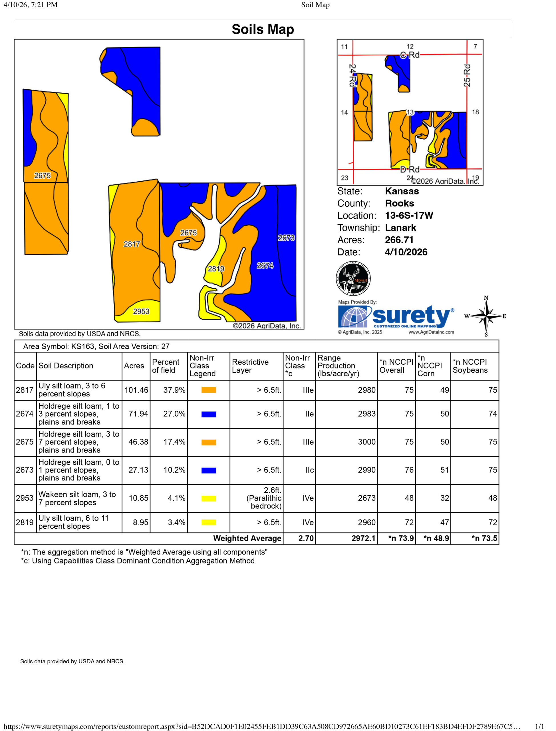 • 264 +/- acres of cropland
