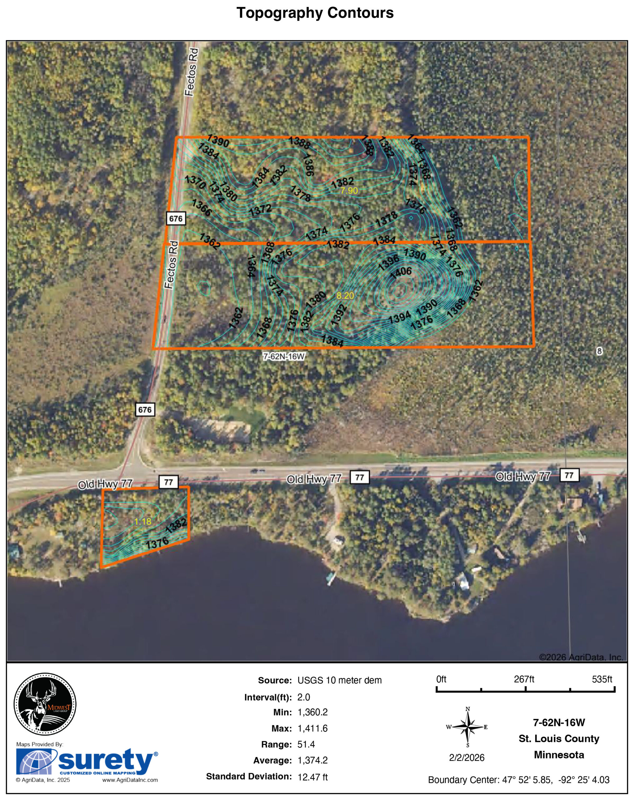 Perfectly positioned to overlook Lake Vermilion’s Daisy Bay and just south of Frazer Bay, these three separate tracts combined to 17.1 acres offer a number of investment opportunities, or stunning home build sites with shoreline access on one of North America’s premier freshwater fisheries. Tract E is located directly on the lake, while Plot B and C are just north on Fectos Road, and both plots come with a quarter interest in Tract D, which is a 1-acre lakeside plot immediately adjacent (east) to Tract E. The interests will allow for dock and boat slip placement for Plot B and C owners.Plots B (8.2 acres) and C (7.9 acres) feature a beautiful mix of hardwoods and pines, gently rolling hills, absolutely covered in deer tracks, by the way, and drop into a tamarack swamp on the east side. Each presents various build sites with a number of pre-approved future septic locations, complemented by paved road frontage. The opportunities to build a gorgeous lake-country cabin or a forever home are impressive and might offer the most beautiful views on the lake.
