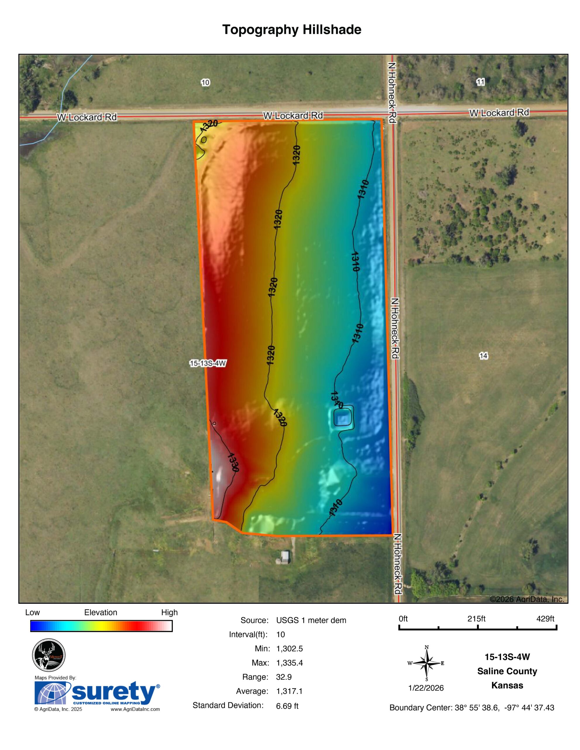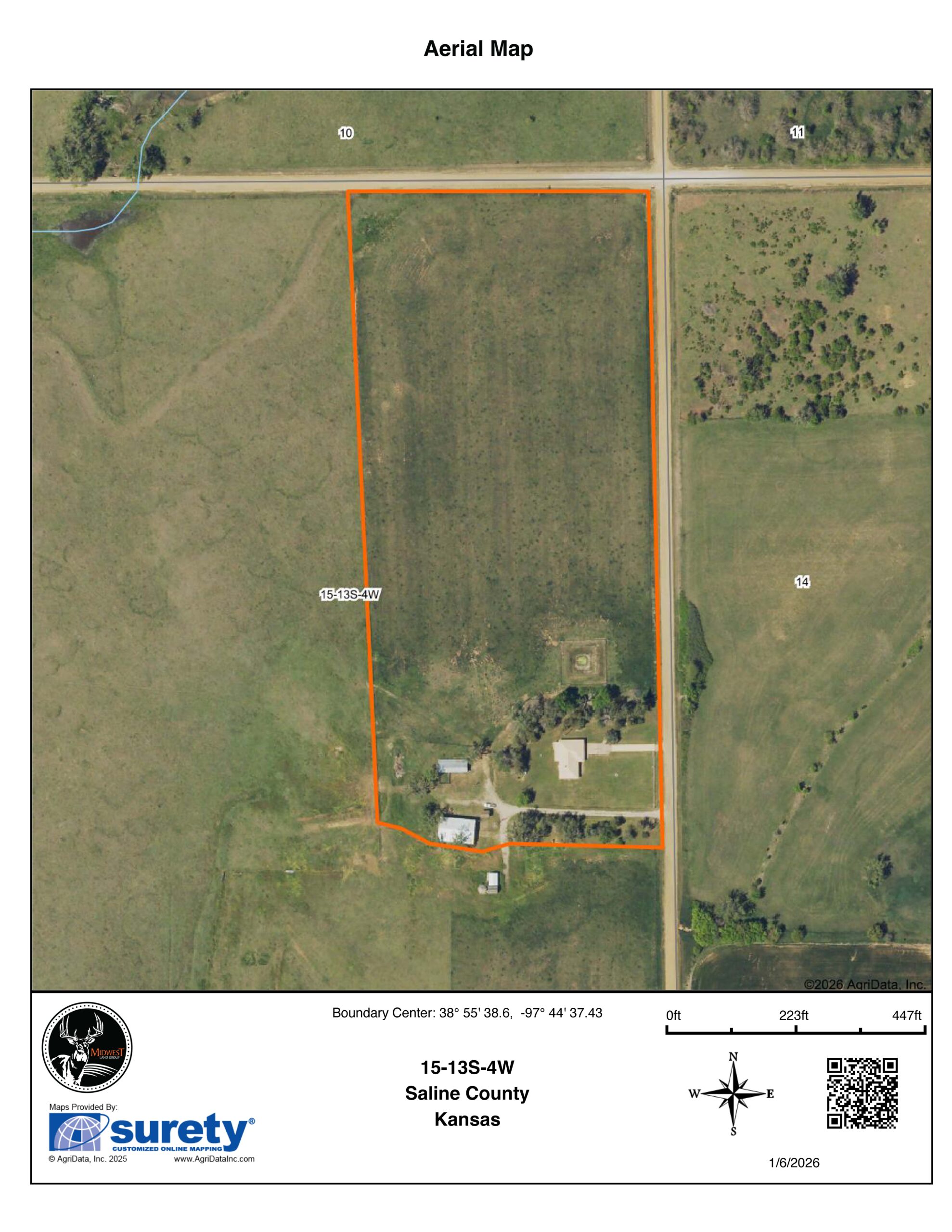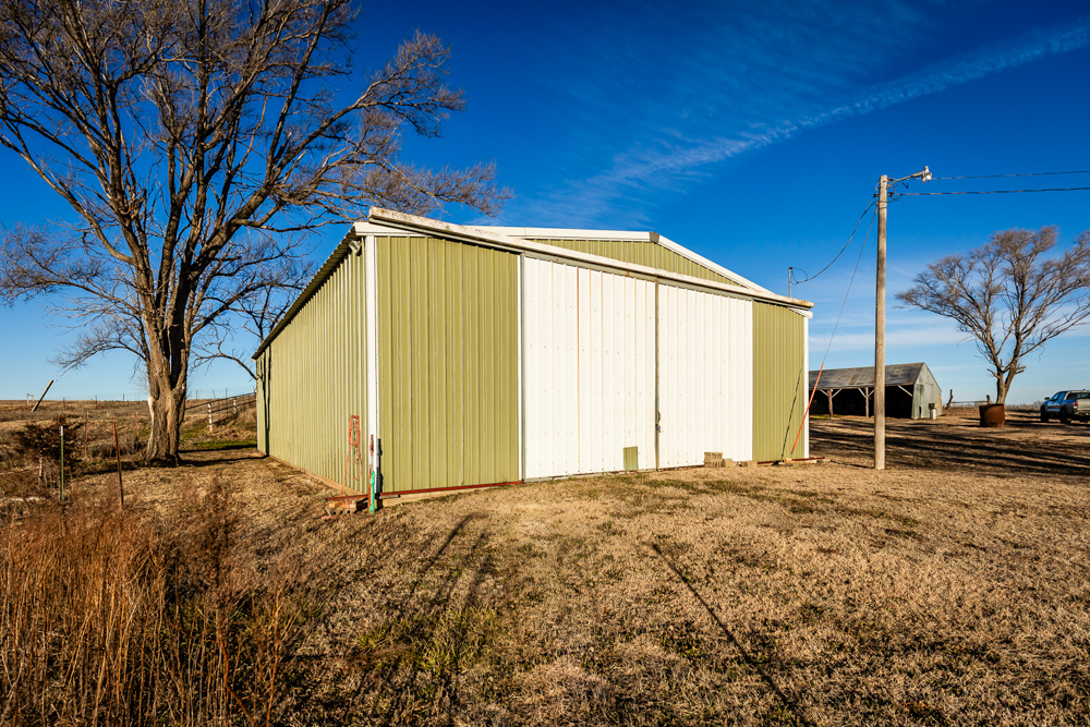 Located 10 miles northwest of Salina, Kansas, sits a home and shop on 13 +/- acres. Access to the property is provided by Hohneck Road, which is only 1.25 miles off a blacktop road and 4.5 miles from I-70, ensuring quick and clean access to and from the property. The home, built in 1963, consists of 1,416 finished square feet and has 2 bedrooms and 1 bathroom with an additional bonus/office room. The main floor also features a living room, kitchen/dining combo with lots of cabinet storage space, and a laundry room, which also has a shower and an additional sink. The home has a full unfinished basement, which is a great space for storage or could be finished out for additional living space. There is a two-car attached garage and a large covered rear porch, a great space for sipping your morning coffee, grilling, or catching a good sunset. The view out the front door to the east is beautiful and worth leaving the city for!