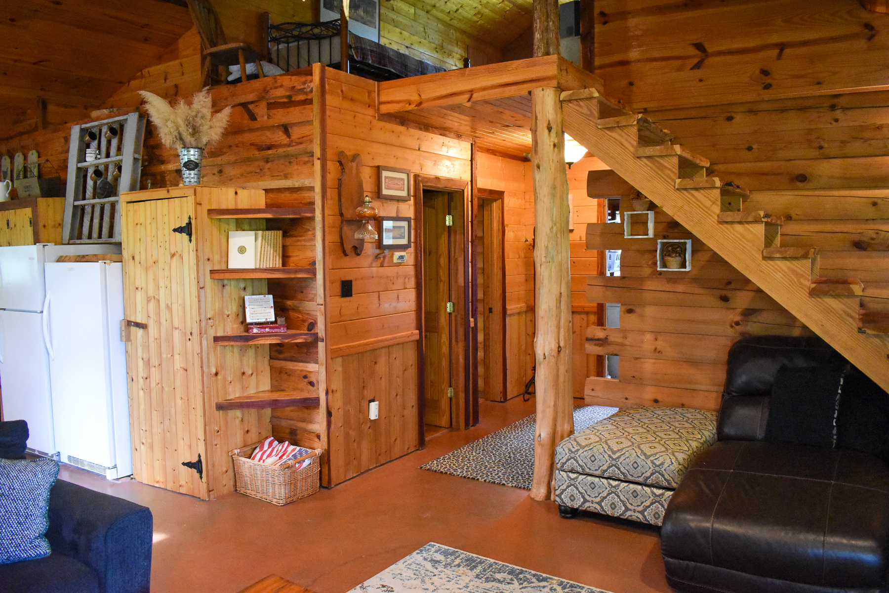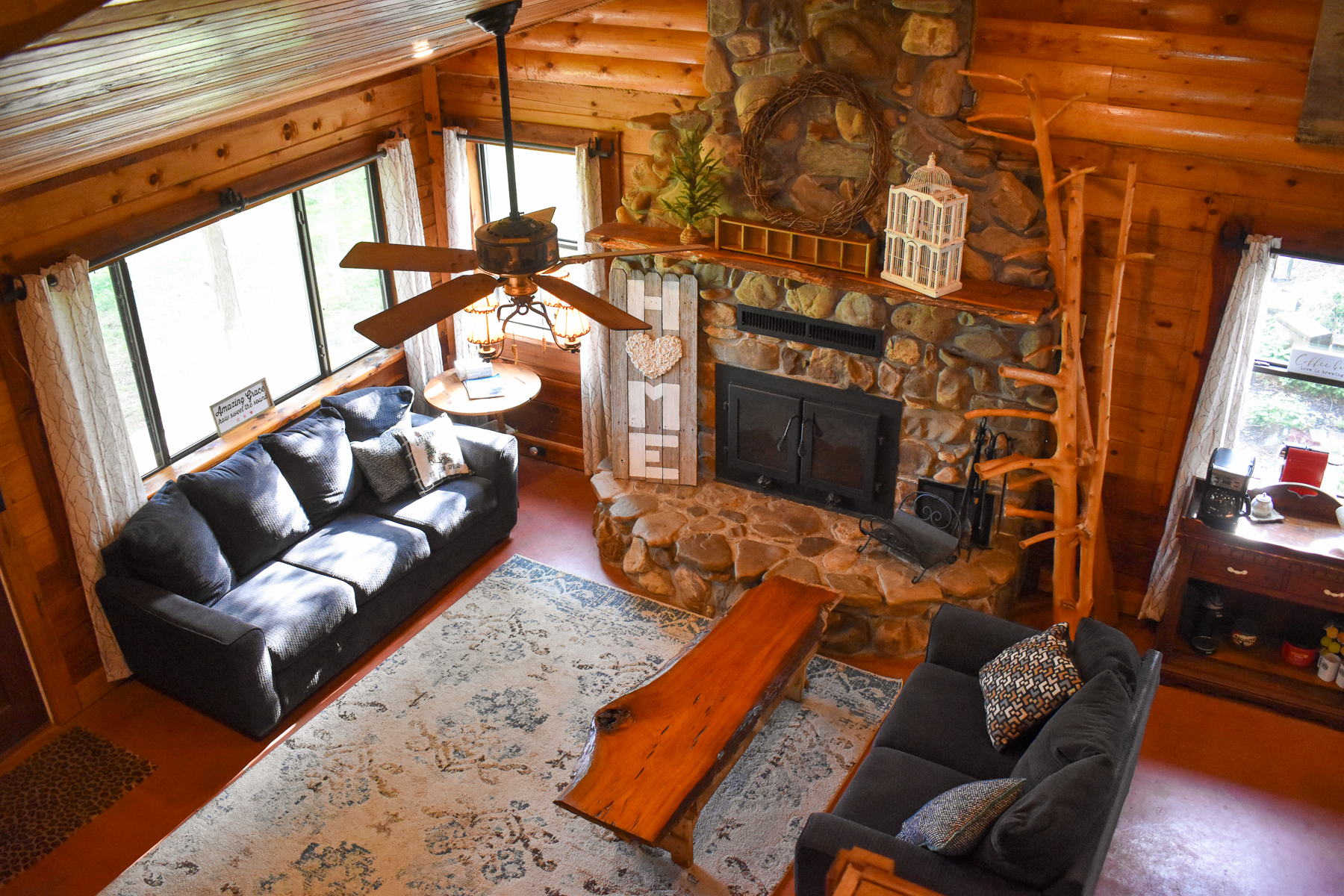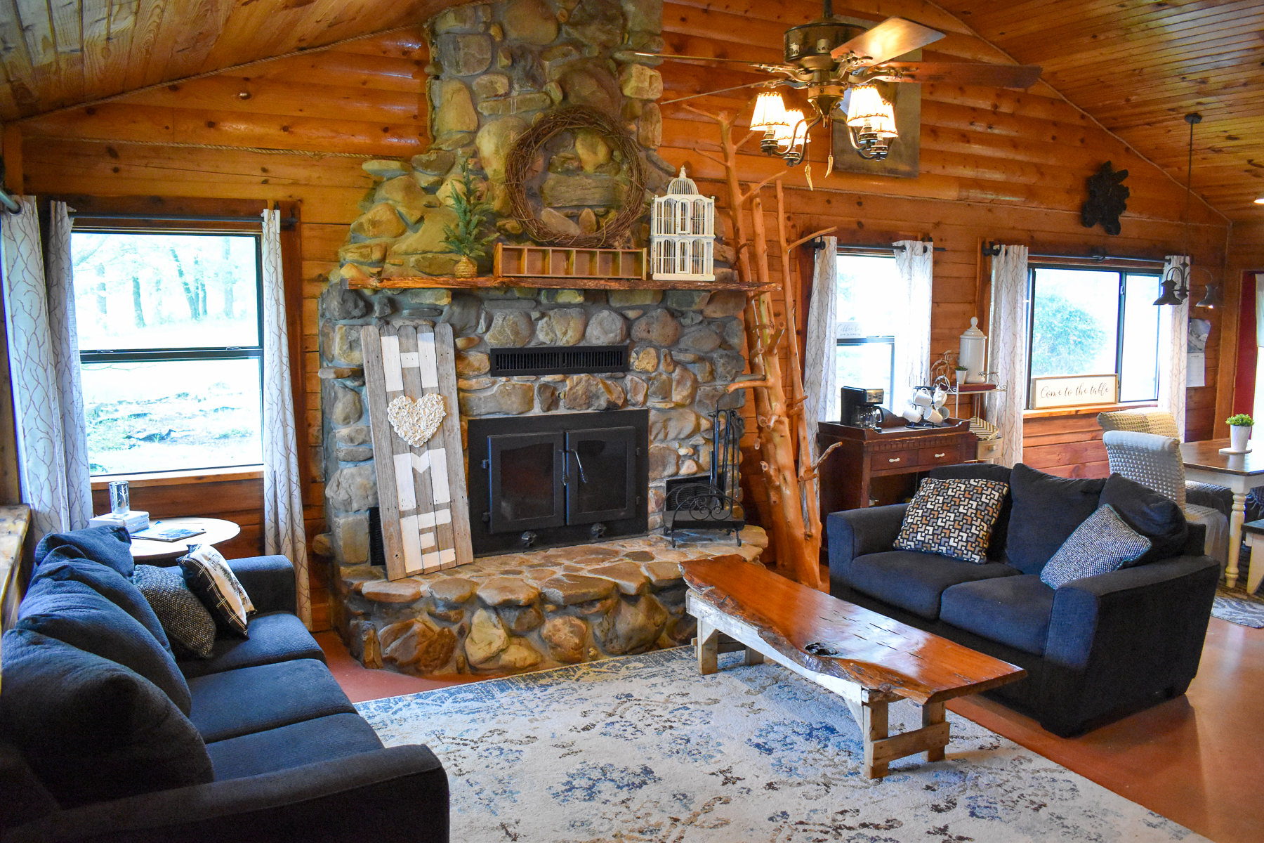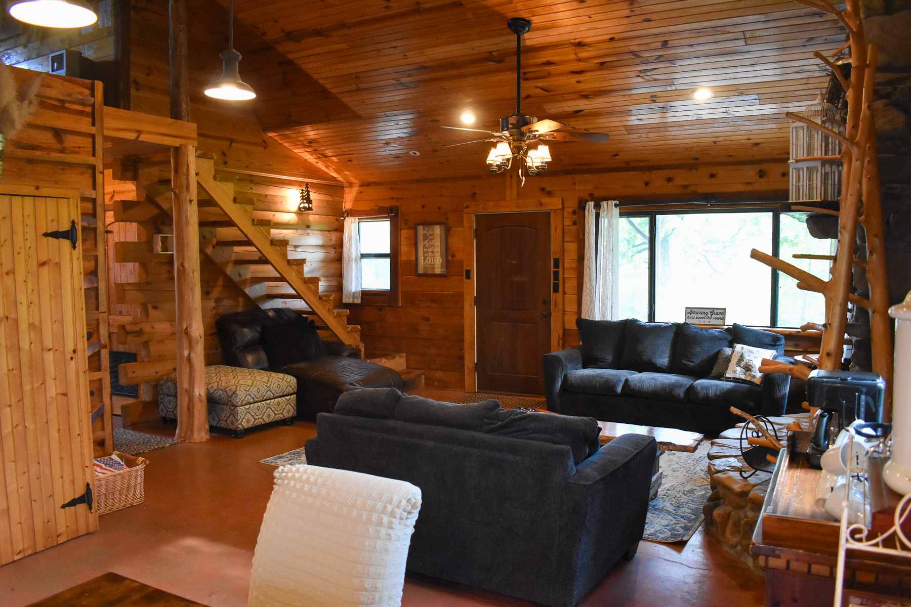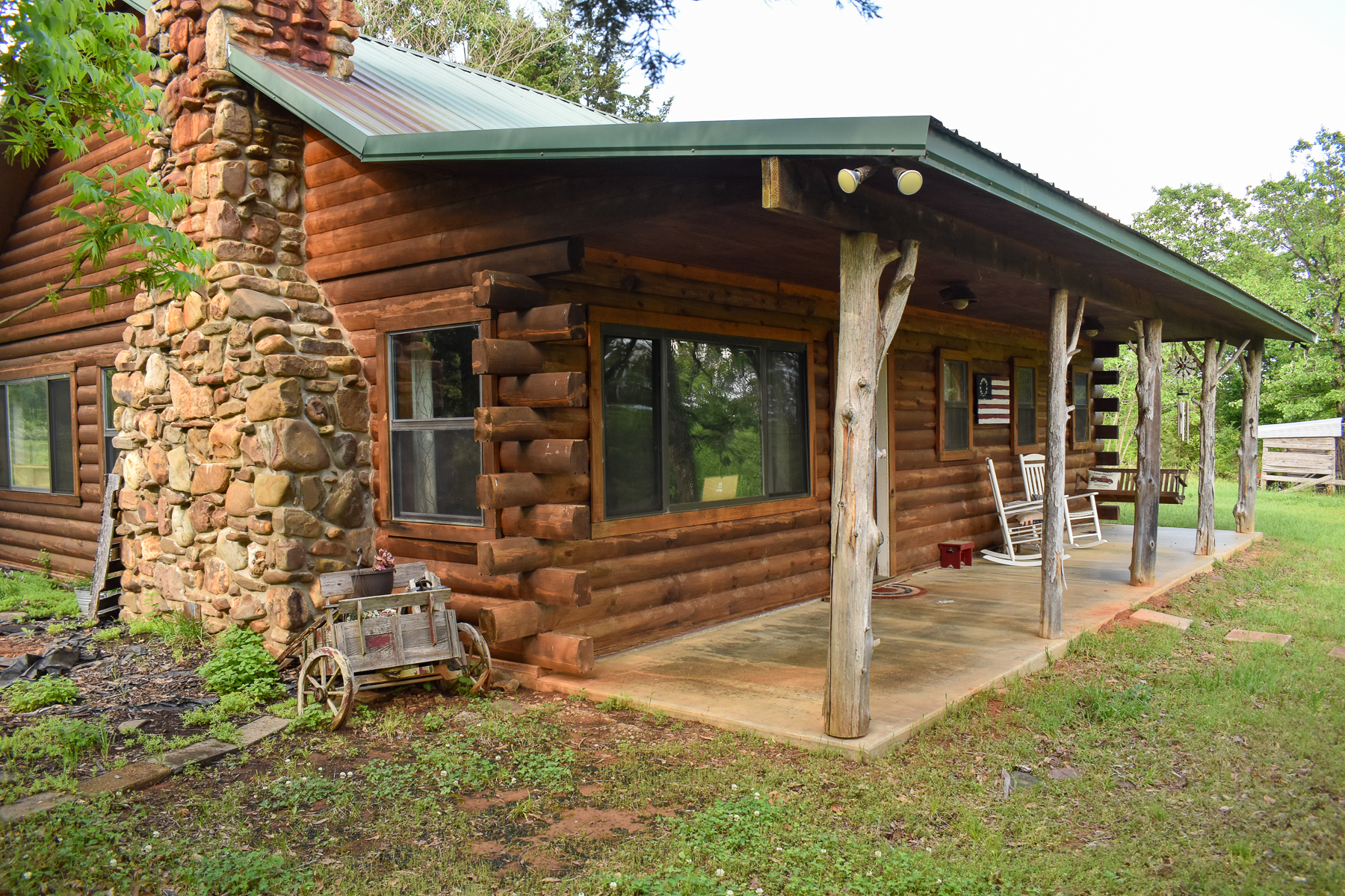 If you have been looking for privacy and seclusion, but don’t want the maintenance that comes with large acreage, you need to take a look at this beautiful log cabin and acreage! The 10 +/- acres is located off of a quiet county road with very few neighbors. The 1,250 +/- square foot log cabin is just that, a true log cabin finished with all of the cozy amenities that you would expect - like the rock fireplace, front and back porches, and loft overlooking the living area. The cabin speaks for itself, with beautiful rustic finishes that perfectly fit the space. Outside, there are flower beds and garden areas, barns, outbuildings, and even a treehouse with a slide.