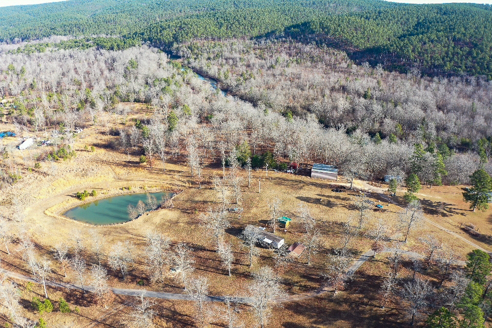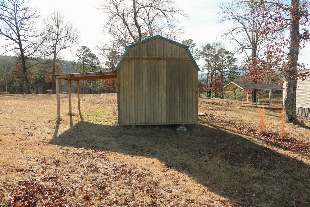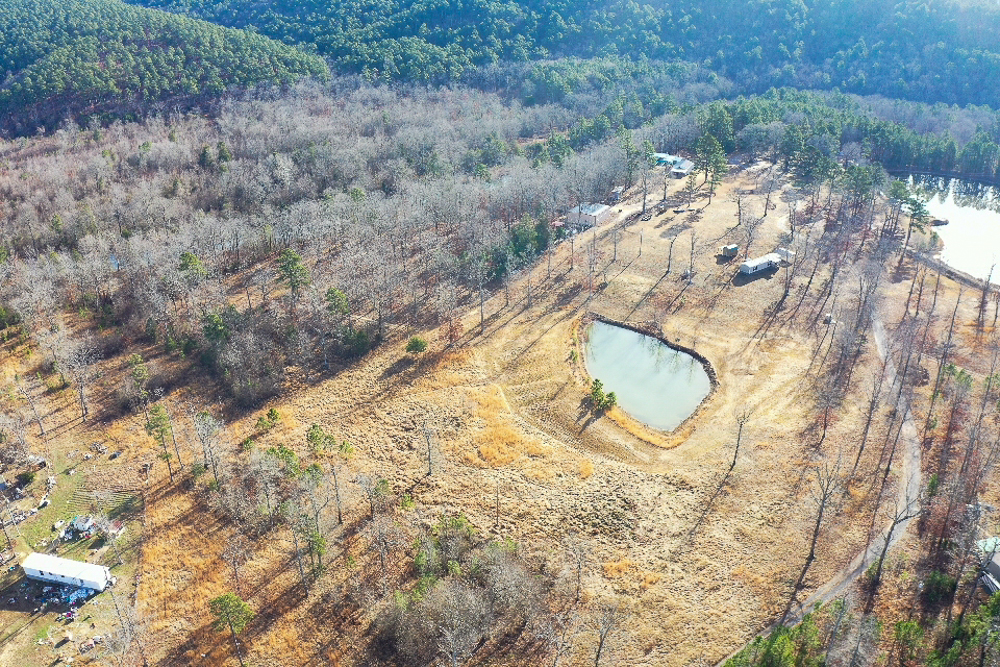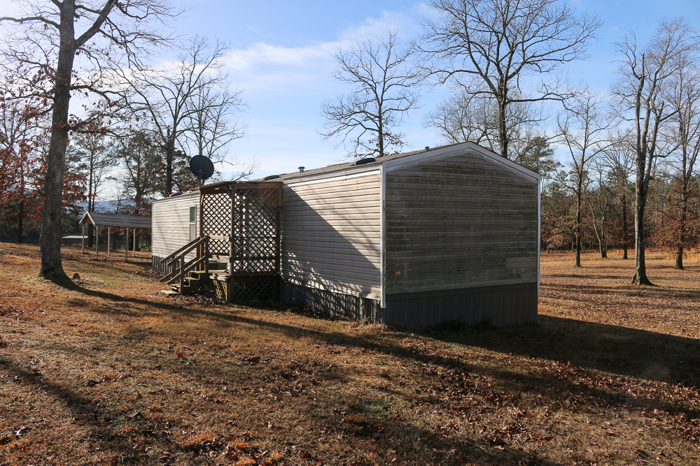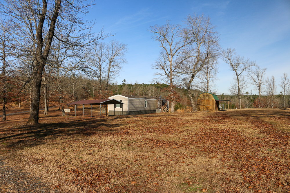 This tract is truly something to look at! A newer mobile home sits on roughly 6 +/- acres out in the country. The mountain views are truly remarkable here. The 2 bedroom, 2 bath mobile home is move-in ready with a new washer and dryer hooked up, a new refrigerator, and a cook stove that stays with the purchase. It has power and a water well with a well house with a new pump and filter system that is established, making it easy to get moved in. Along with the 800-gallon septic tank that is already put in place as well.The metal carport and outbuilding in place are perfect for vehicle protection and storage for whatever you need to keep out of the weather. Enjoy your morning coffee sitting beside the stocked pond, watching the sunrise on the beautiful Ouachita Mountains. If you are looking for the perfect getaway from the loud, busy day-to-day life, look no further.
