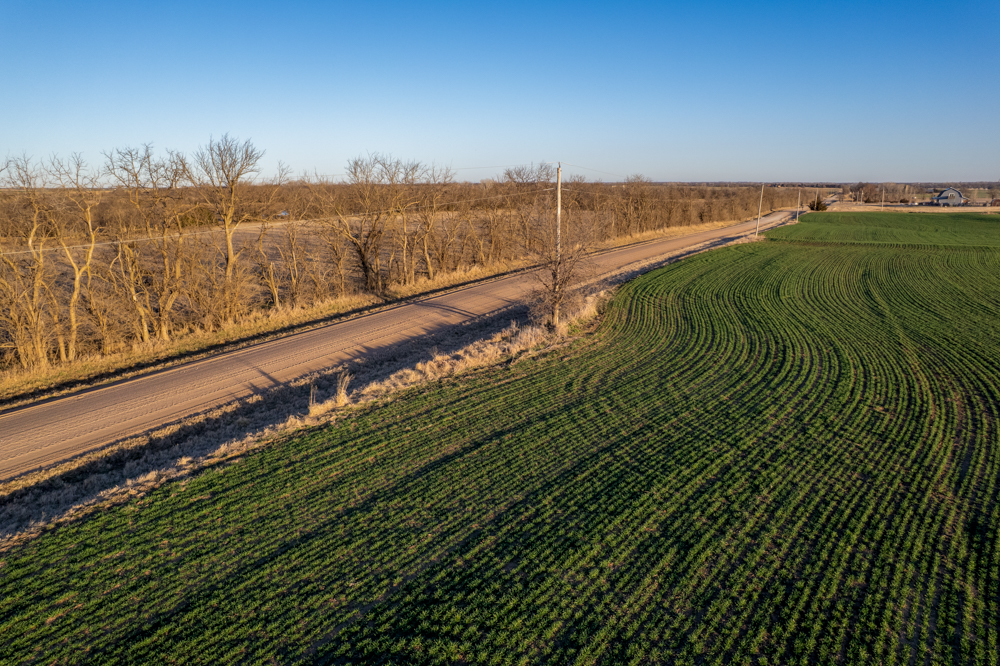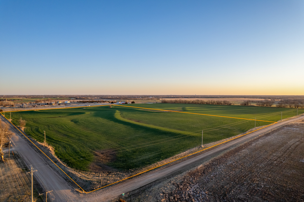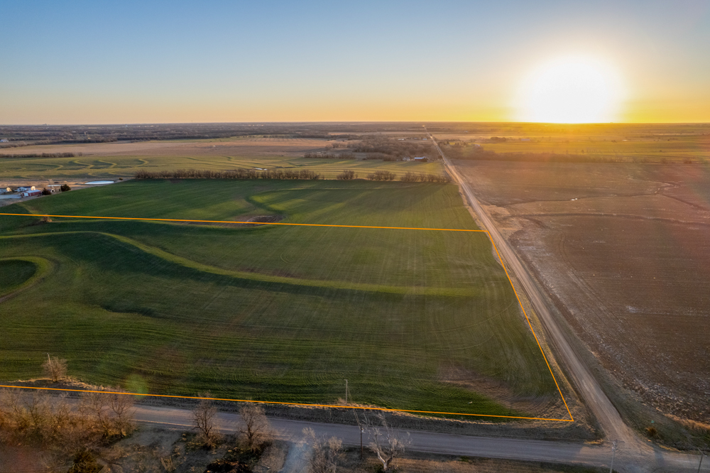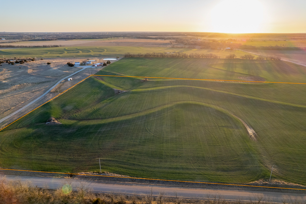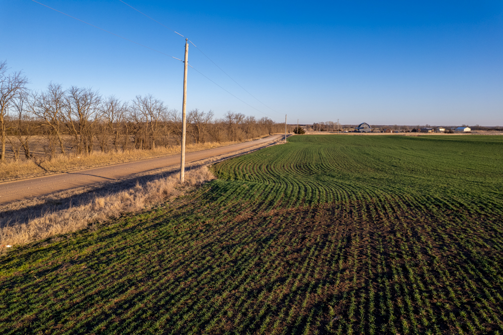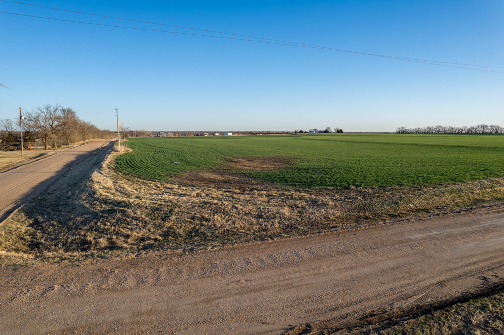 The tract is currently productive farm ground with clean open acreage that allows a buyer to design and position a home, shop, and outbuildings exactly how they envision. The open layout of the land also provides plenty of room for a large yard, hobby farming, horses, or simply enjoying beautiful Kansas sunsets.