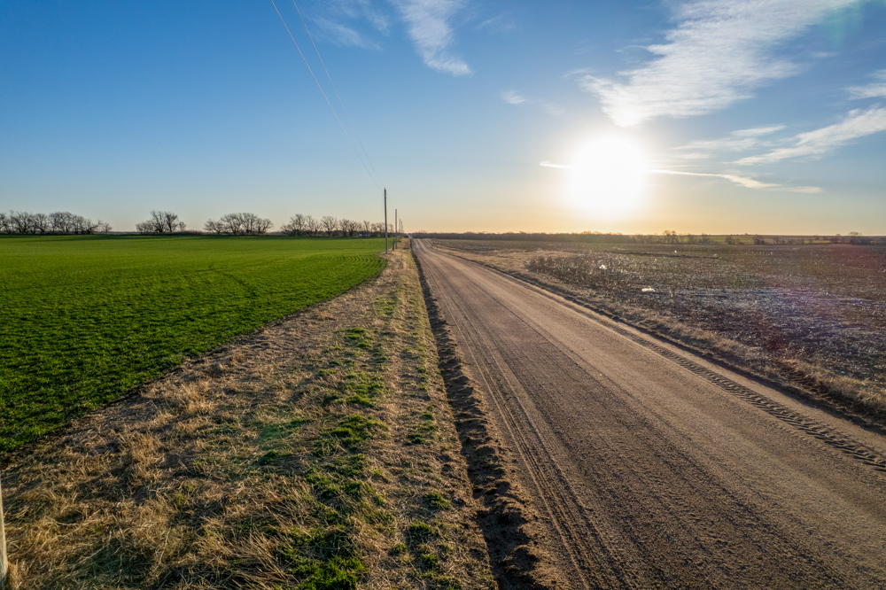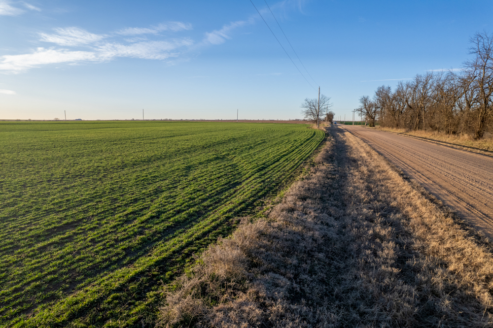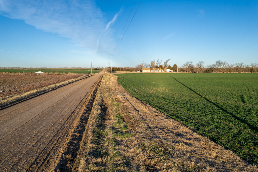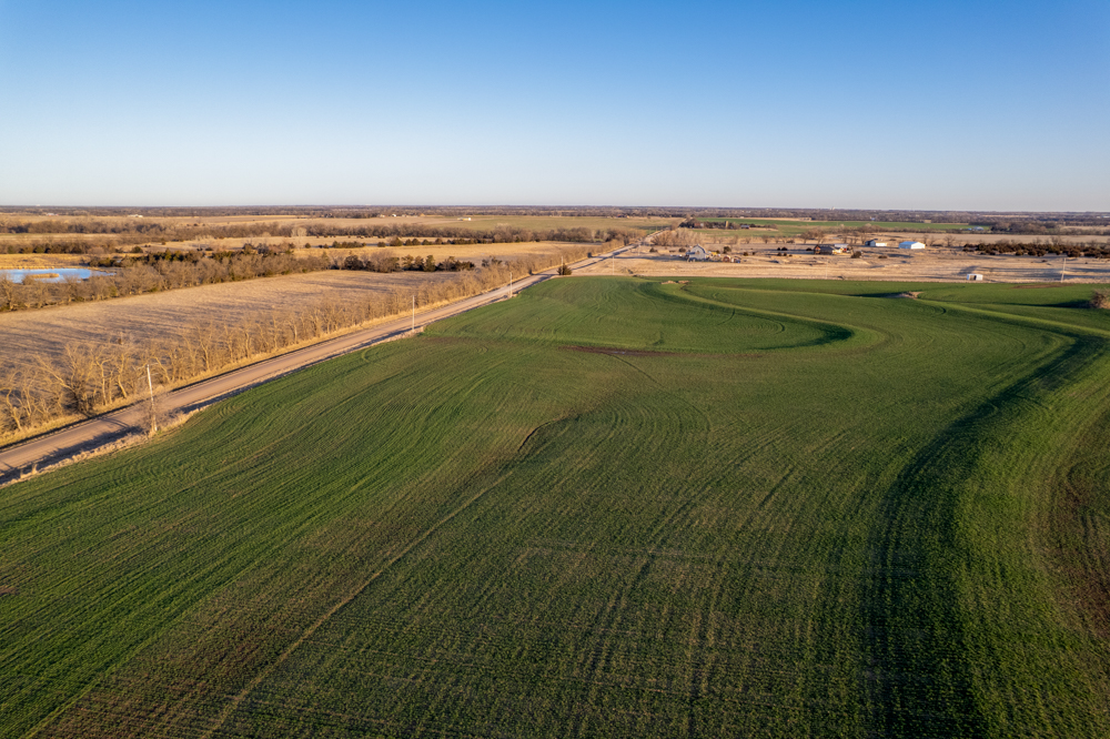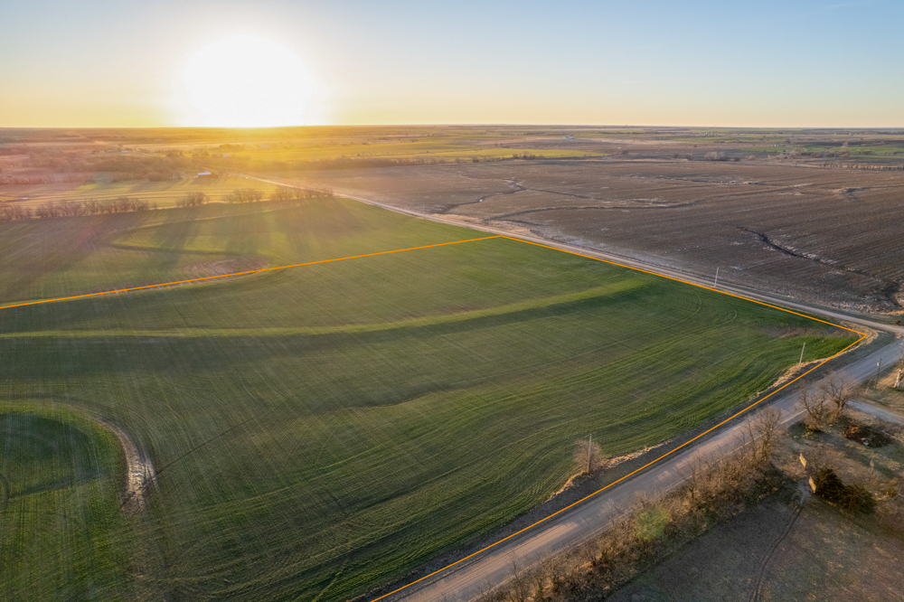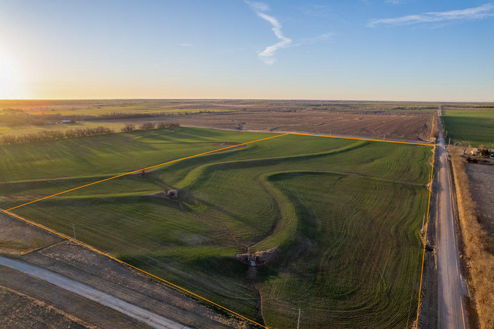 The tract is currently productive farm ground with clean open acreage that allows a buyer to design and position a home, shop, and outbuildings exactly how they envision. The open layout of the land also provides plenty of room for a large yard, hobby farming, horses, or simply enjoying beautiful Kansas sunsets.