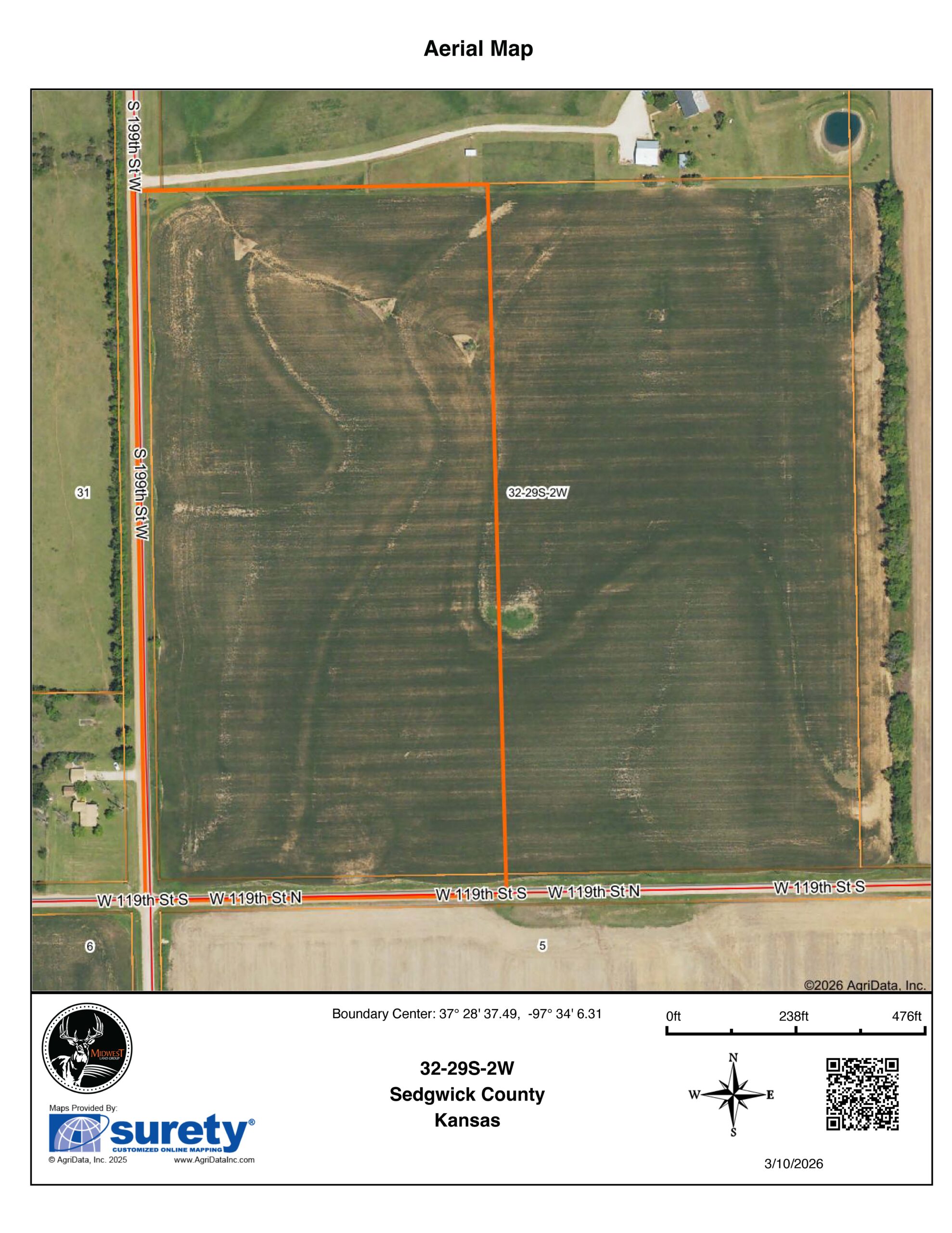 Small acreage build sites in Sedgwick County with good access and utilities are increasingly difficult to find, making this 20 +/- acre tract an outstanding opportunity for those looking to establish a country home just outside of town. A survey will need to be performed during the contract to close period. The property is currently planted to wheat, and full possession of the property will immediately follow harvest of the current crop. For questions or to schedule a time to view the property, contact the listing agent Shaun Reid at (316) 210-6680 or sreid@midwestlandgroup.com.