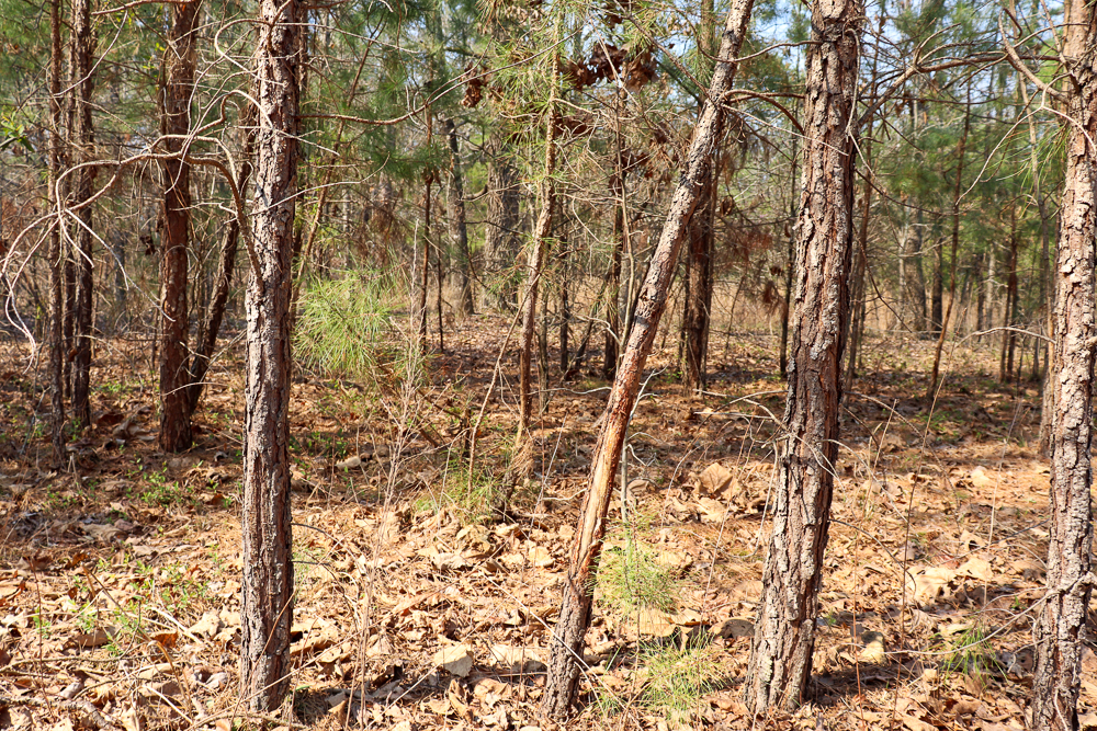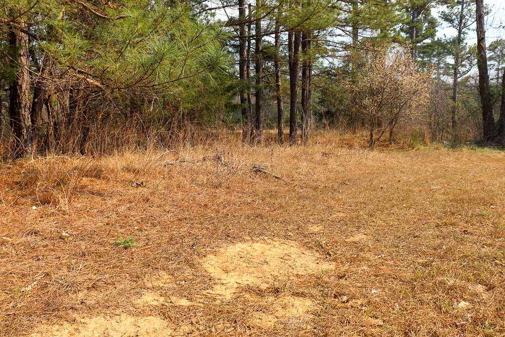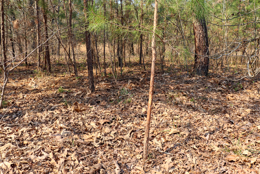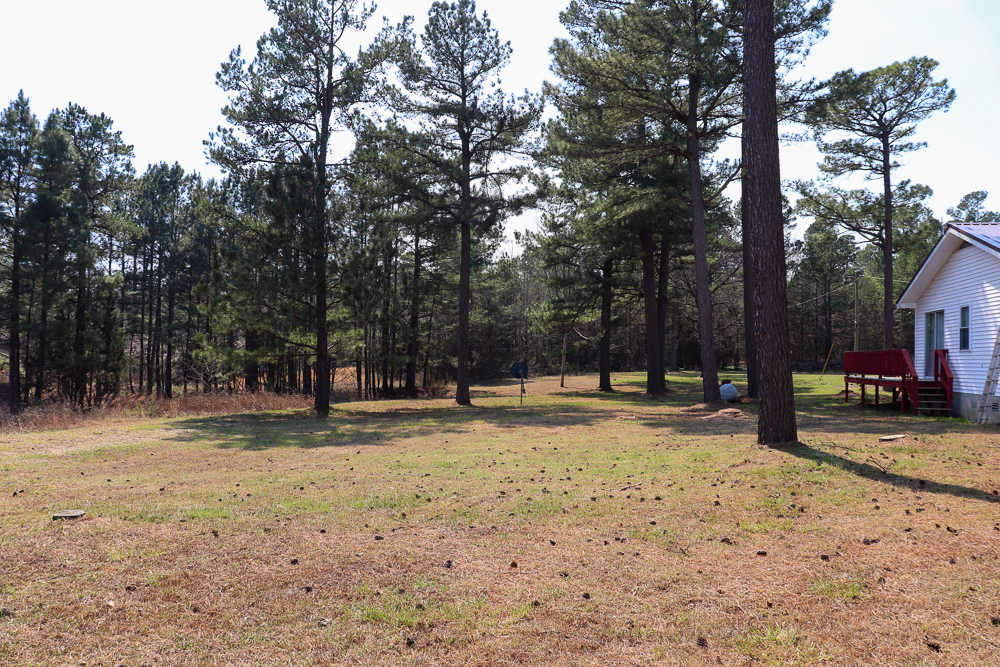 - Yard surrounding the home dotted with mature pine trees