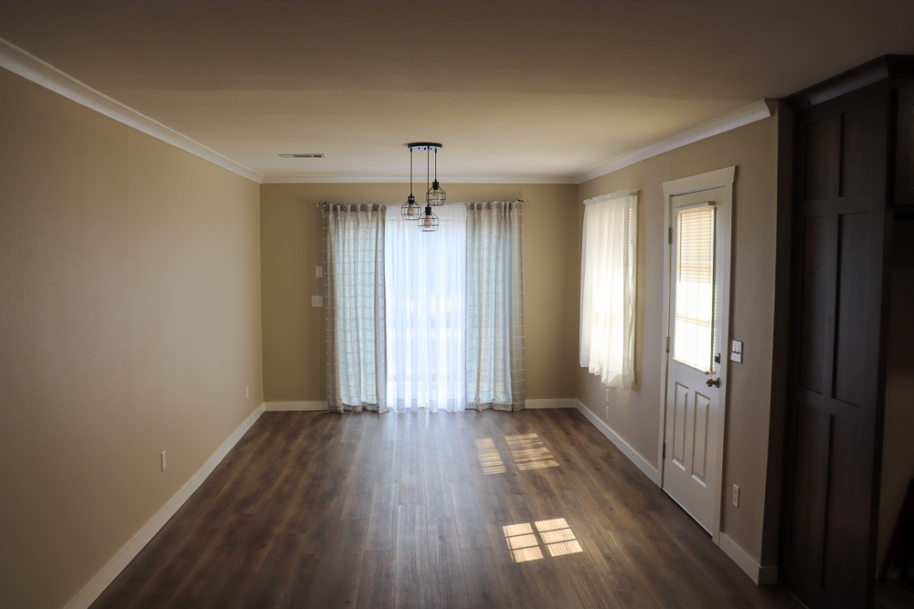 - Combined kitchen and dining area