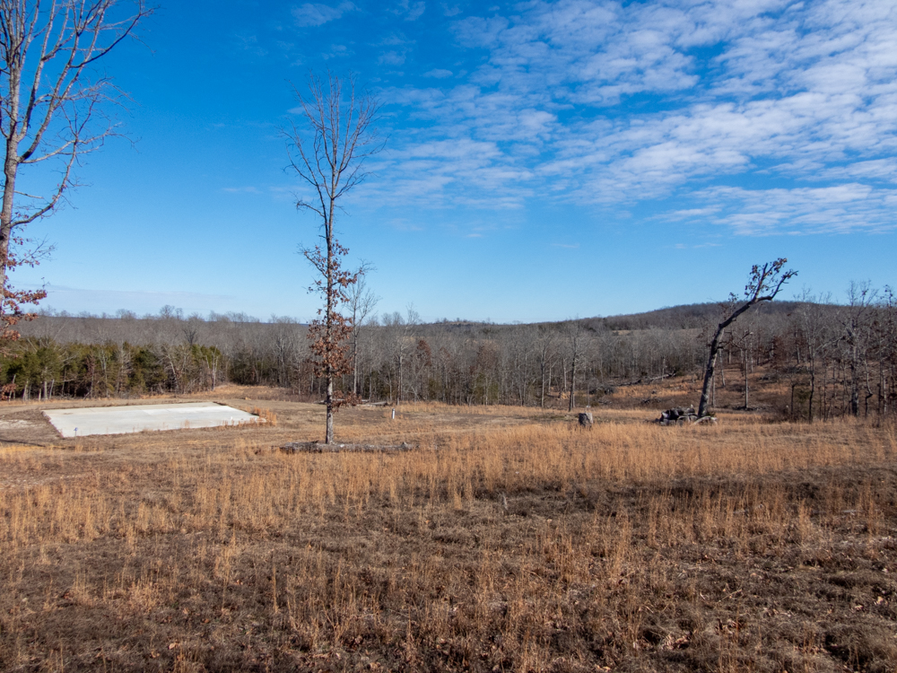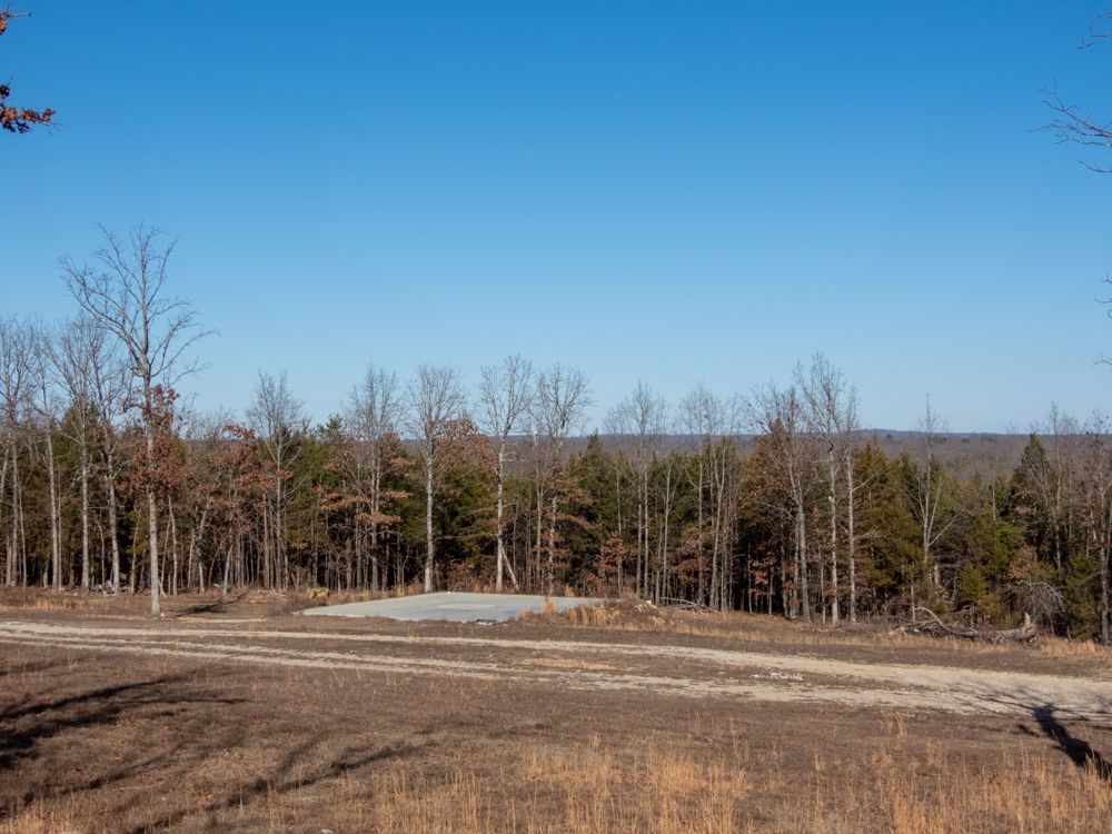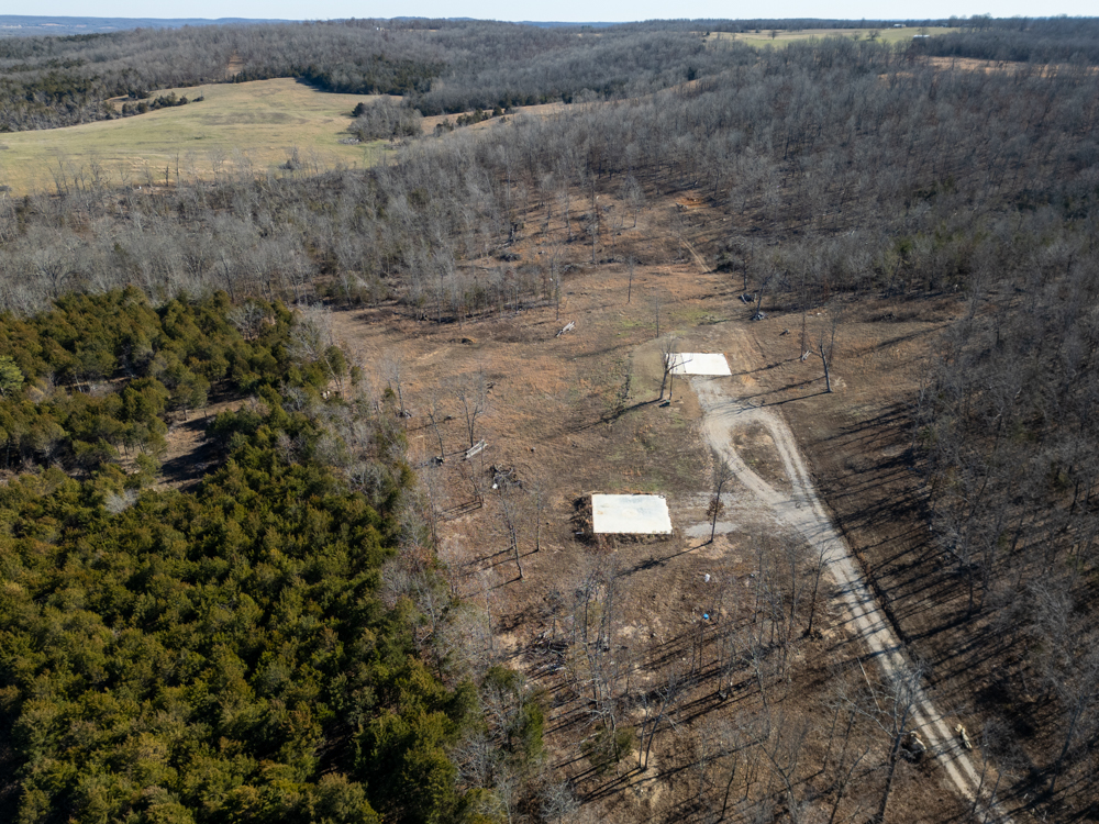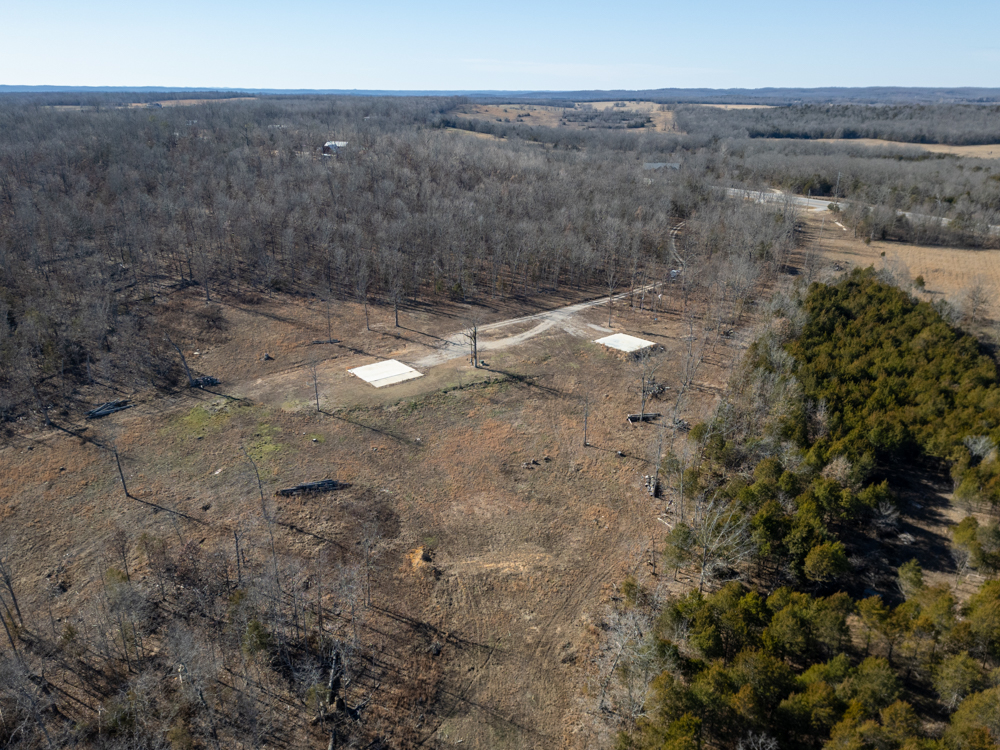 Nestled just south of Ash Flat, Arkansas, this 45.7 +/- acre Ozark retreat offers the rare combination of privacy, convenience, and endless opportunity. From the highway, an arched entryway welcomes you, and a winding drive meanders through mature trees, leading to a hilltop homesite with a sweeping valley view. The perfect place to build your dream home. Two concrete pads are already in place, with utilities ready. A 42’x40’ pad for a house and a 36’x40’ pad for a shop lend the ability to start building your vision immediately.
