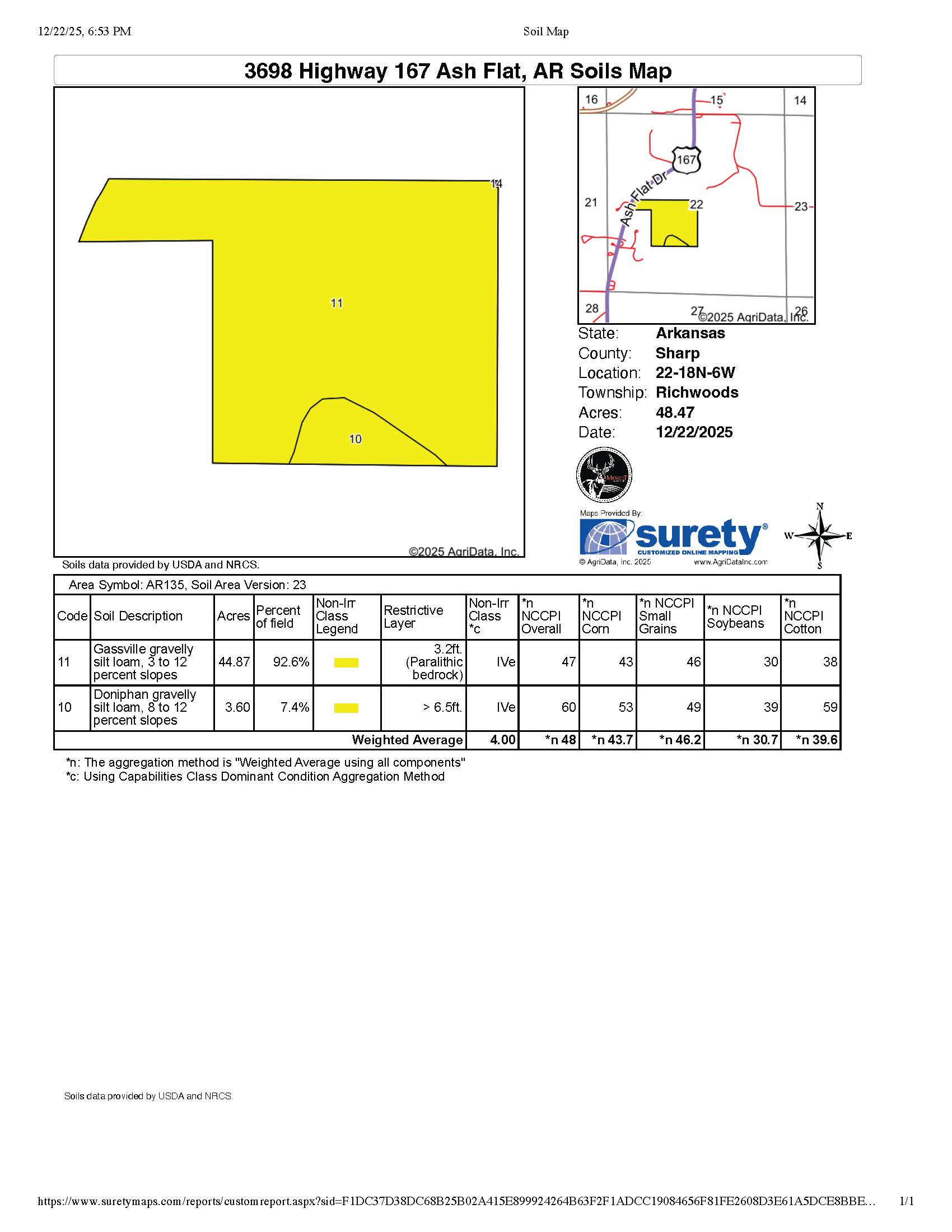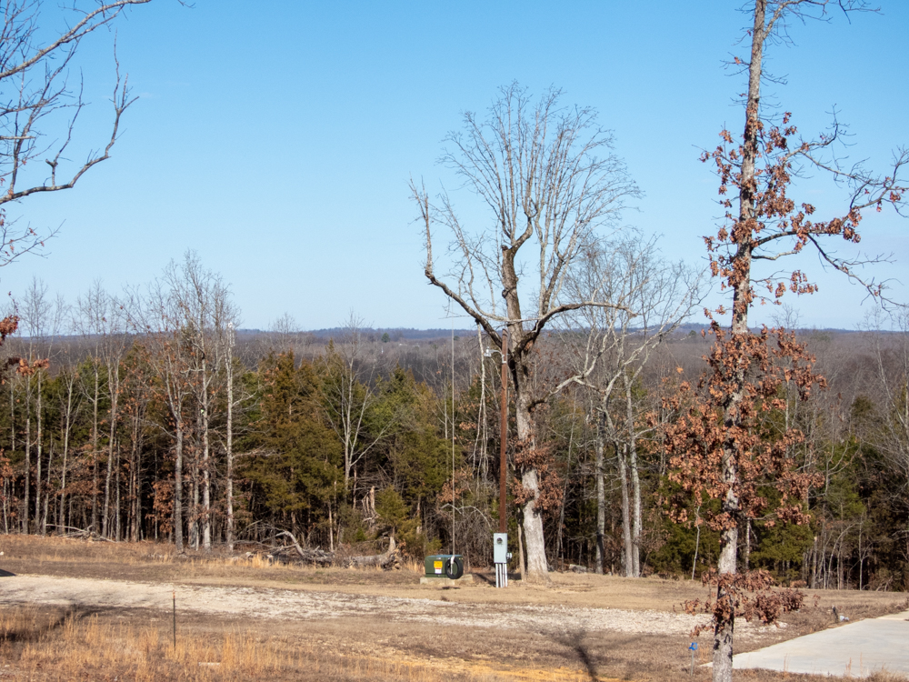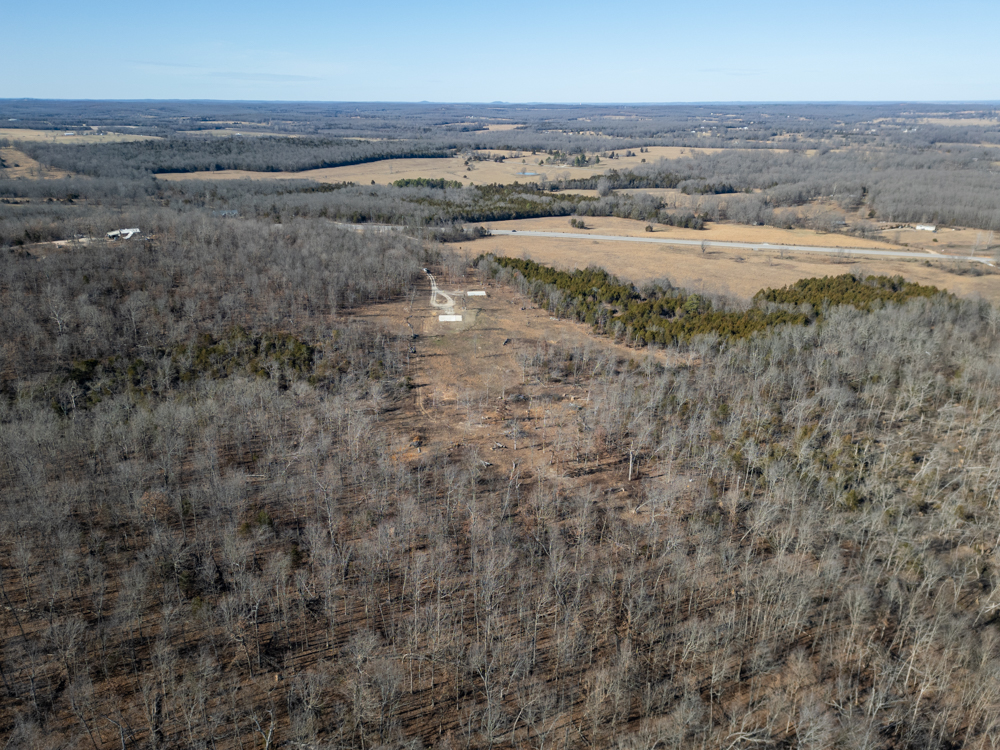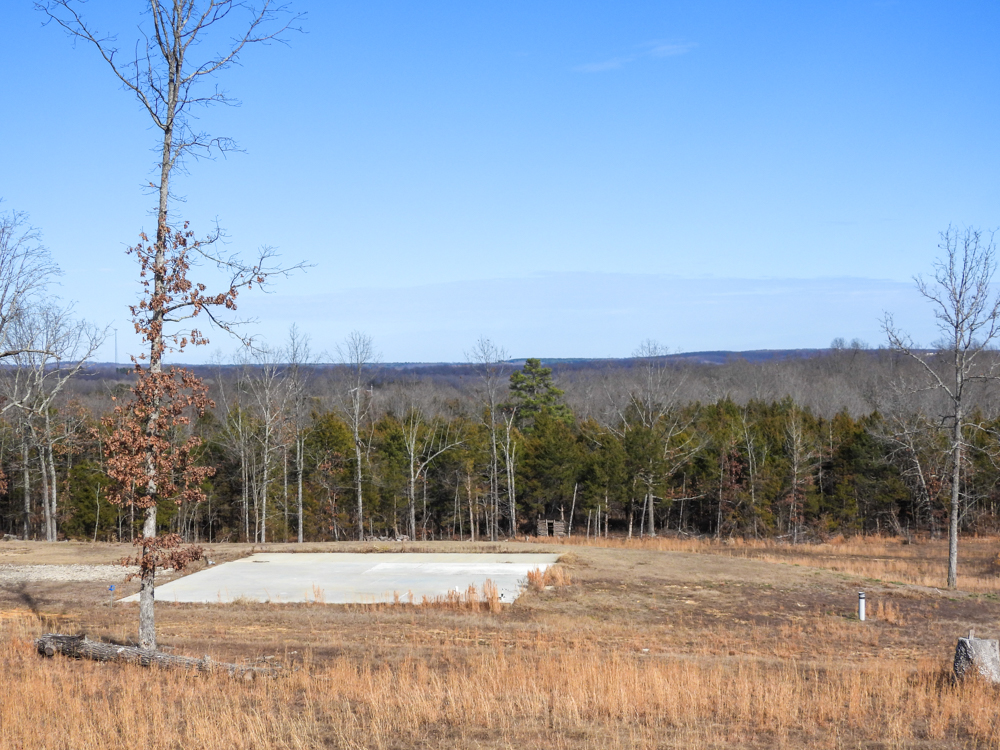 Nestled just south of Ash Flat, Arkansas, this 45.7 +/- acre Ozark retreat offers the rare combination of privacy, convenience, and endless opportunity. From the highway, an arched entryway welcomes you, and a winding drive meanders through mature trees, leading to a hilltop homesite with a sweeping valley view. The perfect place to build your dream home. Two concrete pads are already in place, with utilities ready. A 42’x40’ pad for a house and a 36’x40’ pad for a shop lend the ability to start building your vision immediately.