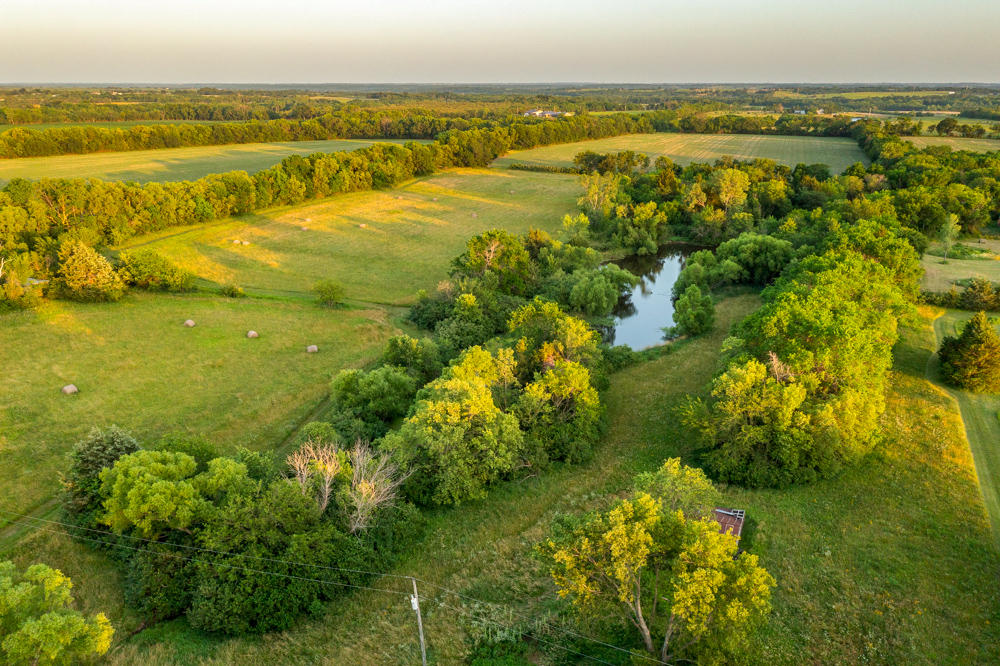 Located on blacktop with utilities such as rural water and electric services, this is a no-brainer build site. You will notice quickly that a long driveway off of 61st Road would place your home back into the secluded tree-lined hay meadow overlooking a 1 +/- acre pond. This area feels like no one is around, as you cannot see anyone other than homes, and not to mention, your south and east sides are made up of crop fields.