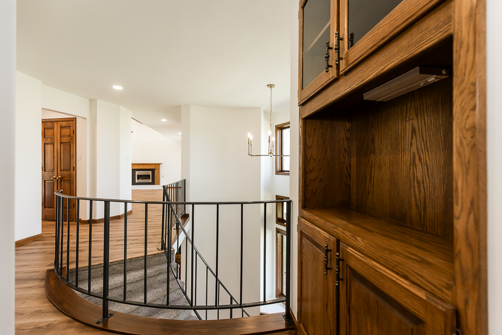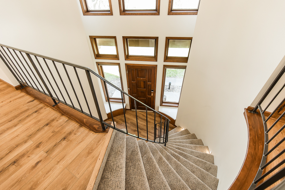 As you enter through the front door, a stunning spiral staircase draws your eye upward to a gorgeous gold chandelier, creating a truly grand first impression. The spacious living room is filled with natural light from an abundance of windows and features a gas fireplace, making it a warm and inviting space to gather. The kitchen has been thoughtfully updated with newly installed countertops and backsplash, offering both style and functionality—perfect for preparing and enjoying home-cooked meals. The primary suite provides a relaxing retreat, complete with an updated bathroom featuring a walk-in shower and an inset soaking tub.