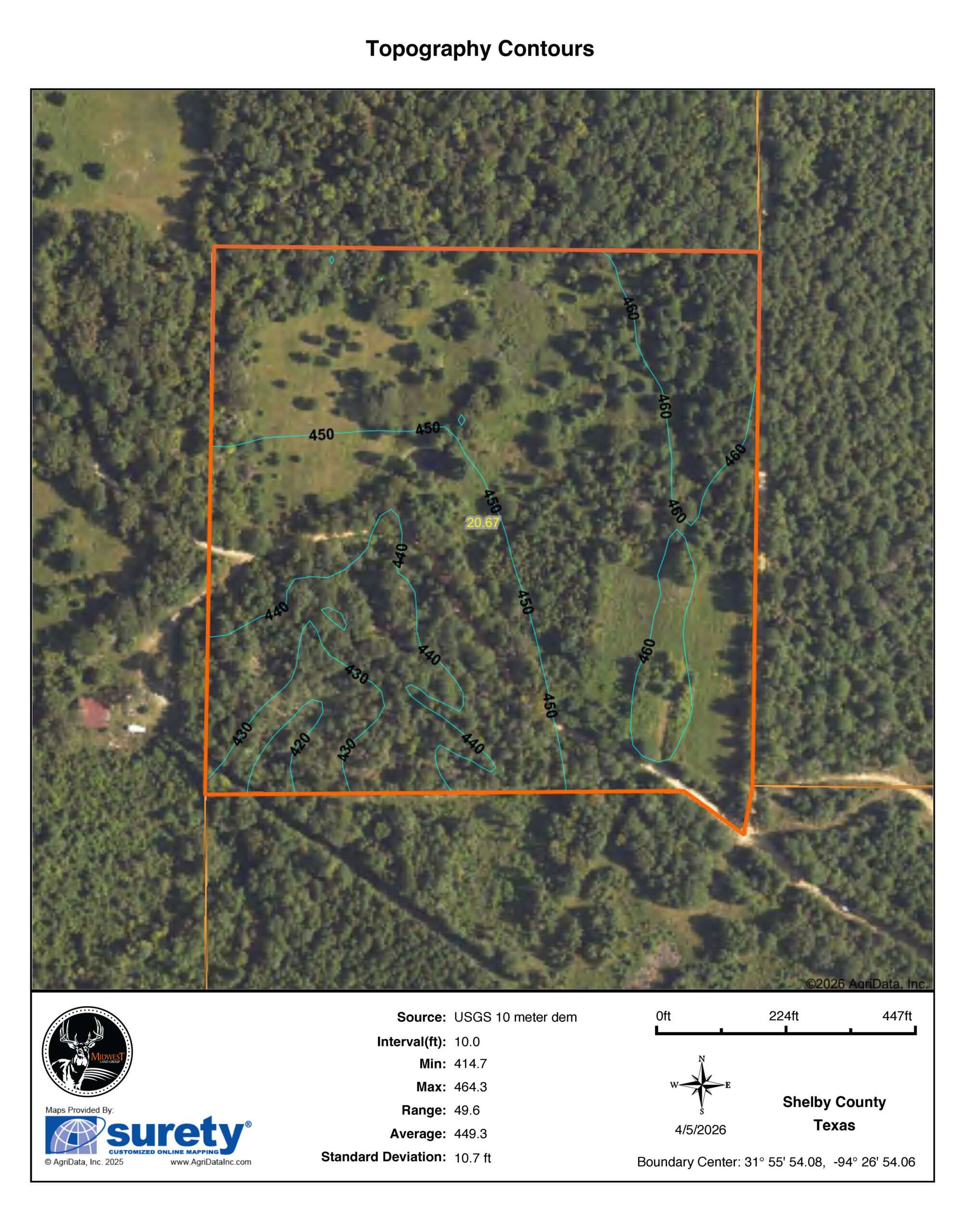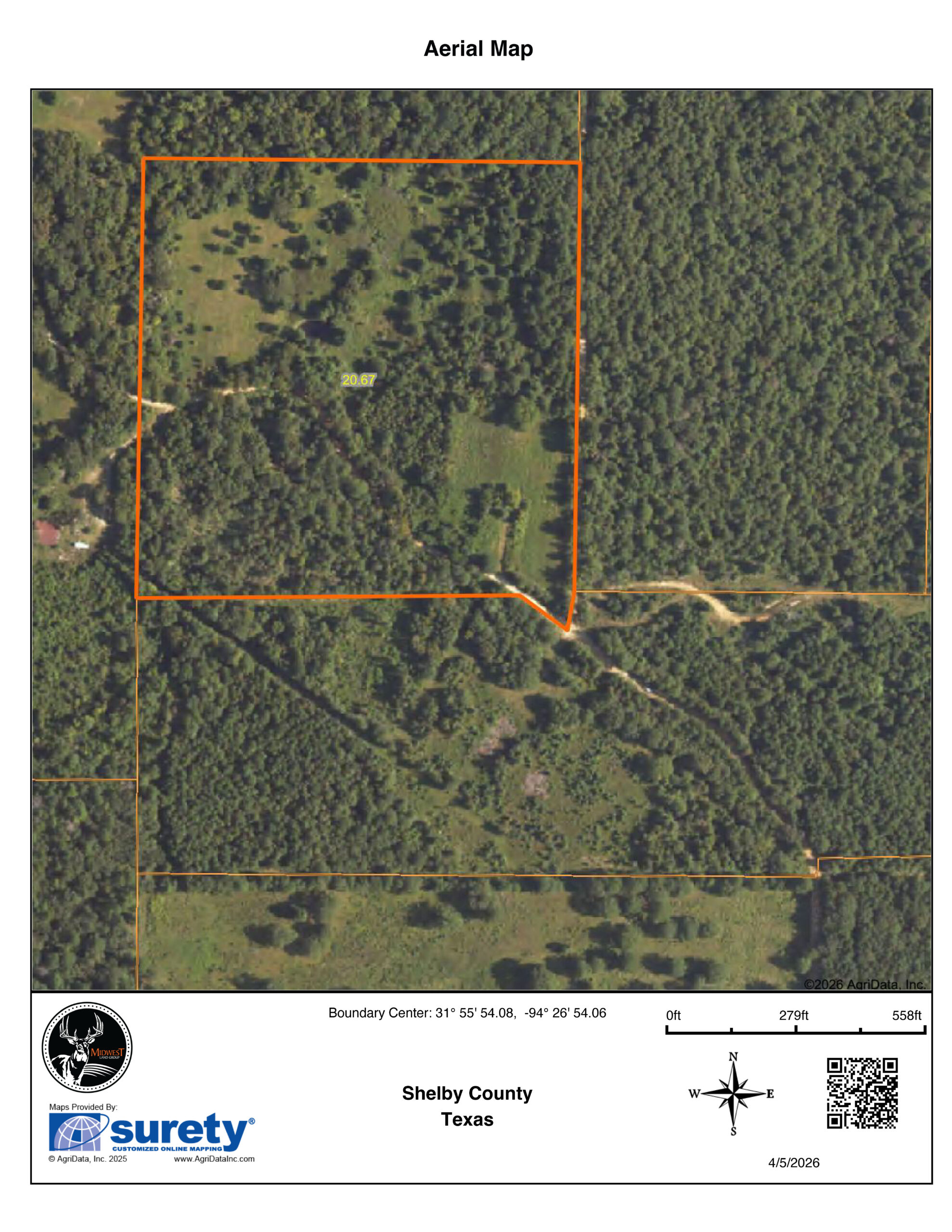 Located just minutes outside of Timpson, this versatile 20-acre tract offers great access, multiple build sites, and prime wildlife habitat. Situated less than 8 minutes from Timpson, Texas, 20 minutes from Mount Enterprise, Texas, and only 45 minutes from the renowned Toledo Bend Reservoir, this property offers something for everyone.With over 2,000 feet of road frontage, the tract provides excellent access and flexibility, featuring multiple entry points that open up a wide range of possibilities for development or recreational use. The land is predominantly flat, offering several prime build sites for your future home, cabin, or weekend getaway.