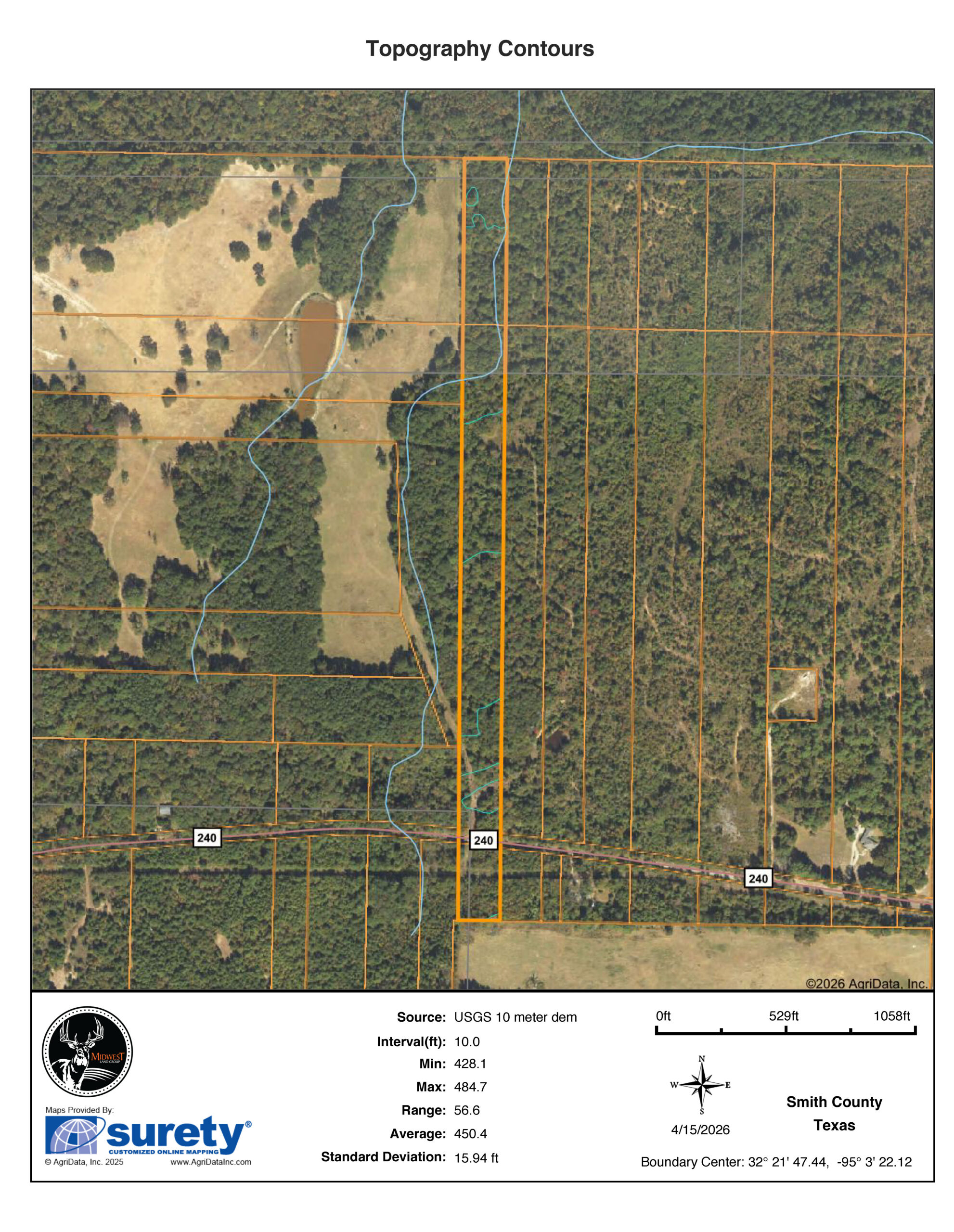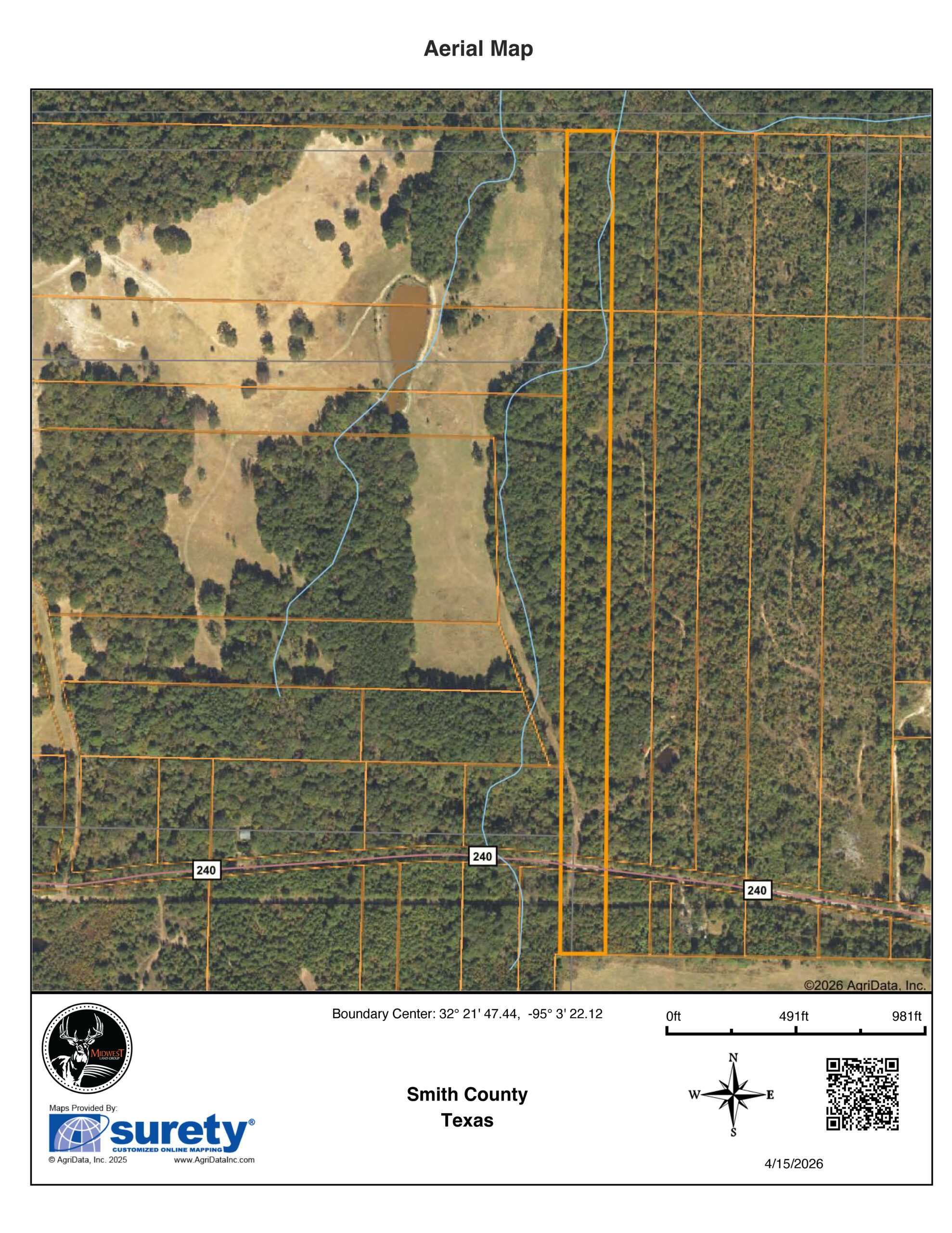 - 180 feet of road frontage on the north and south sides of County Road 240