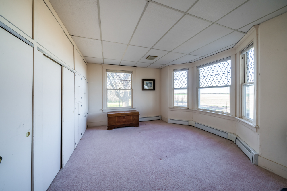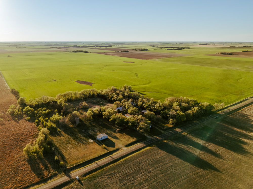 The 12-acre homesite is well-established with mature trees and a wide shelter belt on the north side, which does an excellent job of blocking winter winds. The property is equipped with several useful outbuildings, including a 2-car detached garage, a 36’x48’ Quonset, and a 36’x72’ machine shed. There is also a retired veterinary clinic building with a stall that could be repurposed, along with grain bins already in place. Two pasture areas provide space for livestock and would be ready with the addition of some fencing. Altogether, this is a clean, functional property that offers both strong agricultural value and a comfortable place to live.