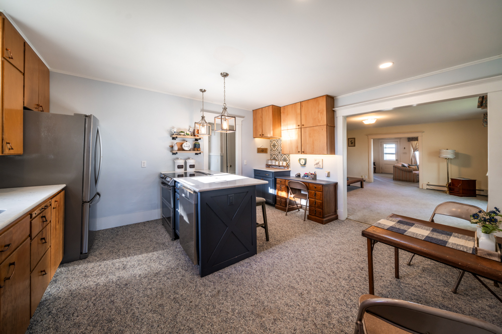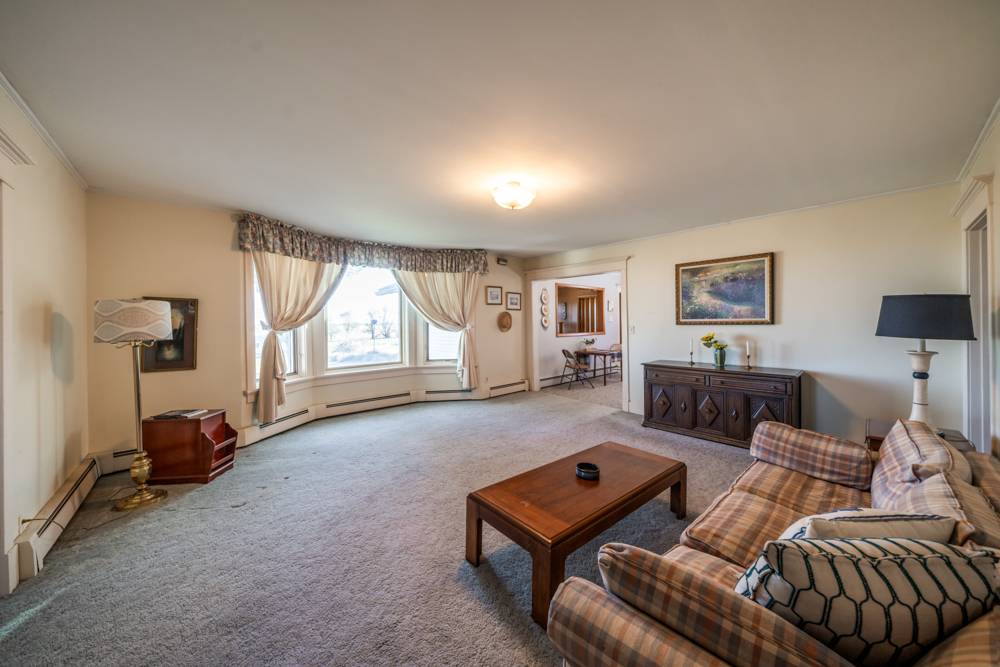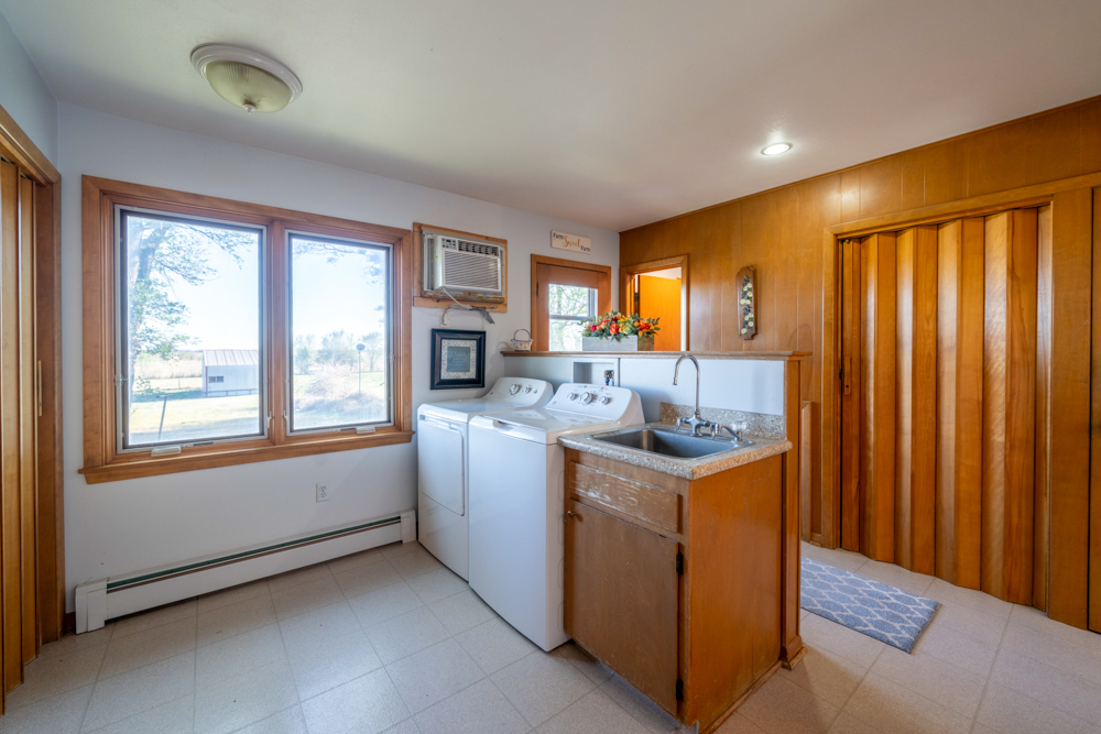 The farmhouse offers 4 bedrooms, 2 bathrooms, and around 2,000 square feet of living space on the main floor. Built in 1910, it has been well cared for and maintains a comfortable, straightforward farmhouse feel. The kitchen has been updated, and there is plenty of living space with a large living room and a separate family room. The front porch adds to the home’s character and provides a great place to unwind. The layout is practical, with most entries coming through the back door into a spacious mudroom and laundry area, along with one of the bathrooms. From there, you step into the kitchen at the back of the house, with the main living areas and three bedrooms toward the front. The fourth bedroom and second bathroom are positioned toward the rear, offering a bit of separation. A full unfinished basement provides additional storage or room for future use.