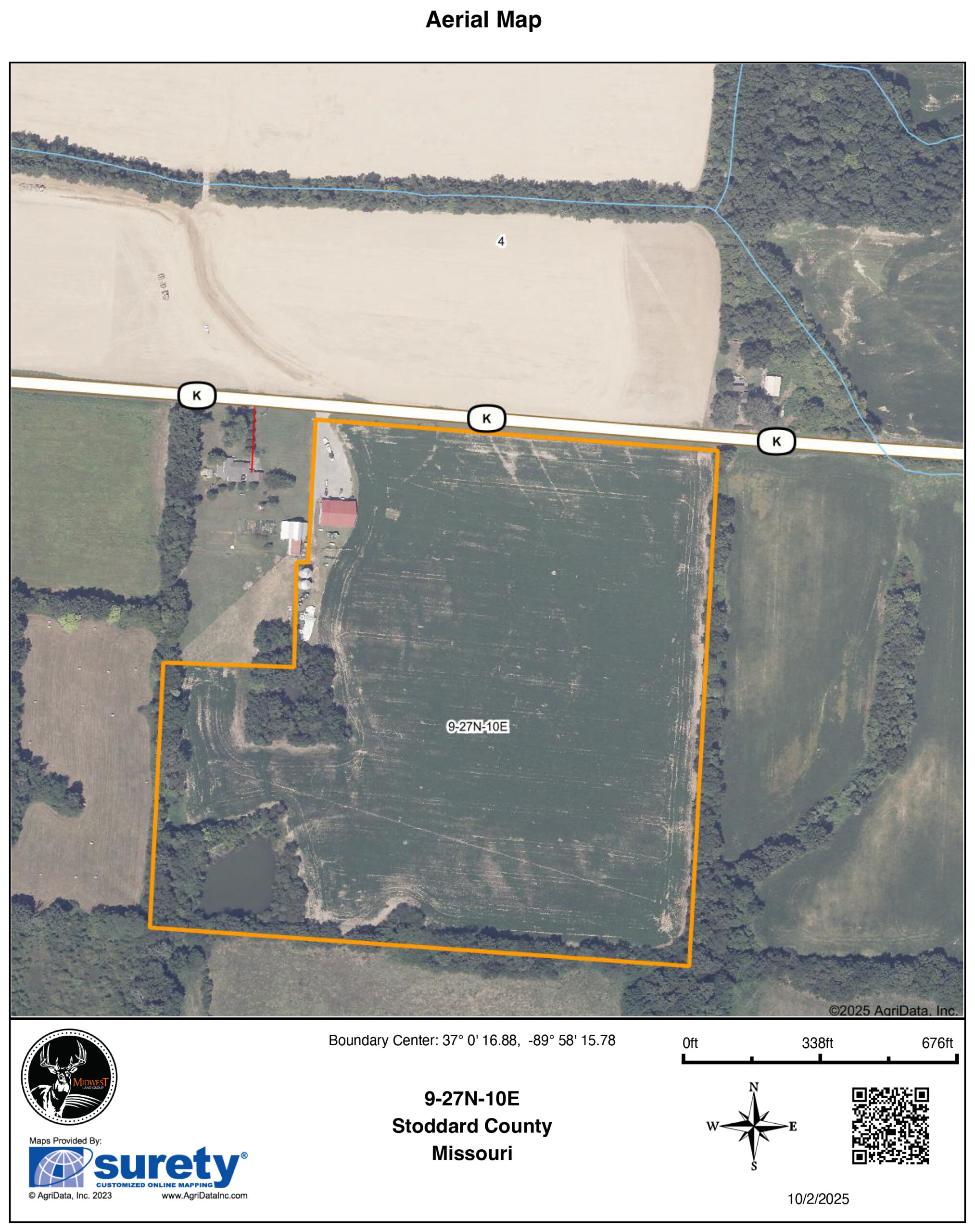 Check out this 35 +/- acre farm located in Stoddard County off Highway K. The farm is mostly tillable ground with an impressive 60'x80' shop. The 60'x80' insulated shop has three bays - two of which feature 14-foot doors - propane radiant heat in the concrete floor, also a well and septic system. Additionally, two 9,000-bushel grain bins provide ample storage for farming operations. The tillable ground boasts above-average yields on corn, soybeans, and wheat. There is 1 pond that spans nearly an acre that enhances the beauty and functionality of the property. If you're looking for productive farm ground with great build site options, this Stoddard County gem offers incredible potential. Property is being split from the original parcel. Survey will be completed at the time of sale. An additional adjoining 5 acres with 5 5-bed, 3-bath house is available for purchase.