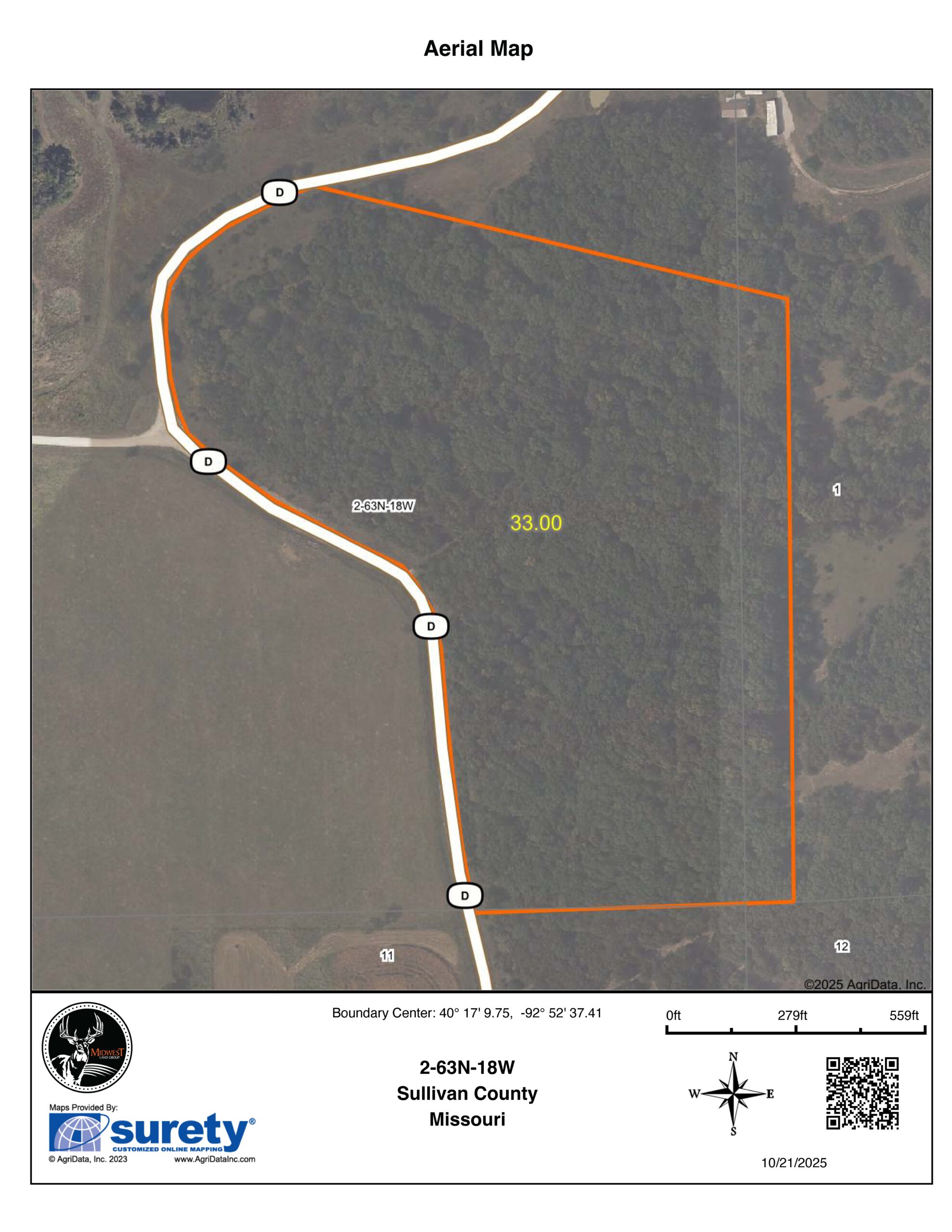 This phenomenal 33 +/- acre timber tract is located just 1.7 miles north of Green Castle, Missouri, right on State Route D and just across from the massive 8,262 +/- acre Union Ridge Conservation Area! This is a great opportunity for those looking for additional public access nearby! While touring the farm, it was clear that it has a tremendous amount to offer, whether you’re looking for a place to build your home or simply a small recreational farm. You will find a substantial amount of highway frontage, multiple ridge-top building sites, oak and hickory hardwood timber, cedar thickets for bedding, significant elevation changes, a small wildlife pond, multiple double-gated entrances, a water meter, an electric meter, and fiber internet located at the road.