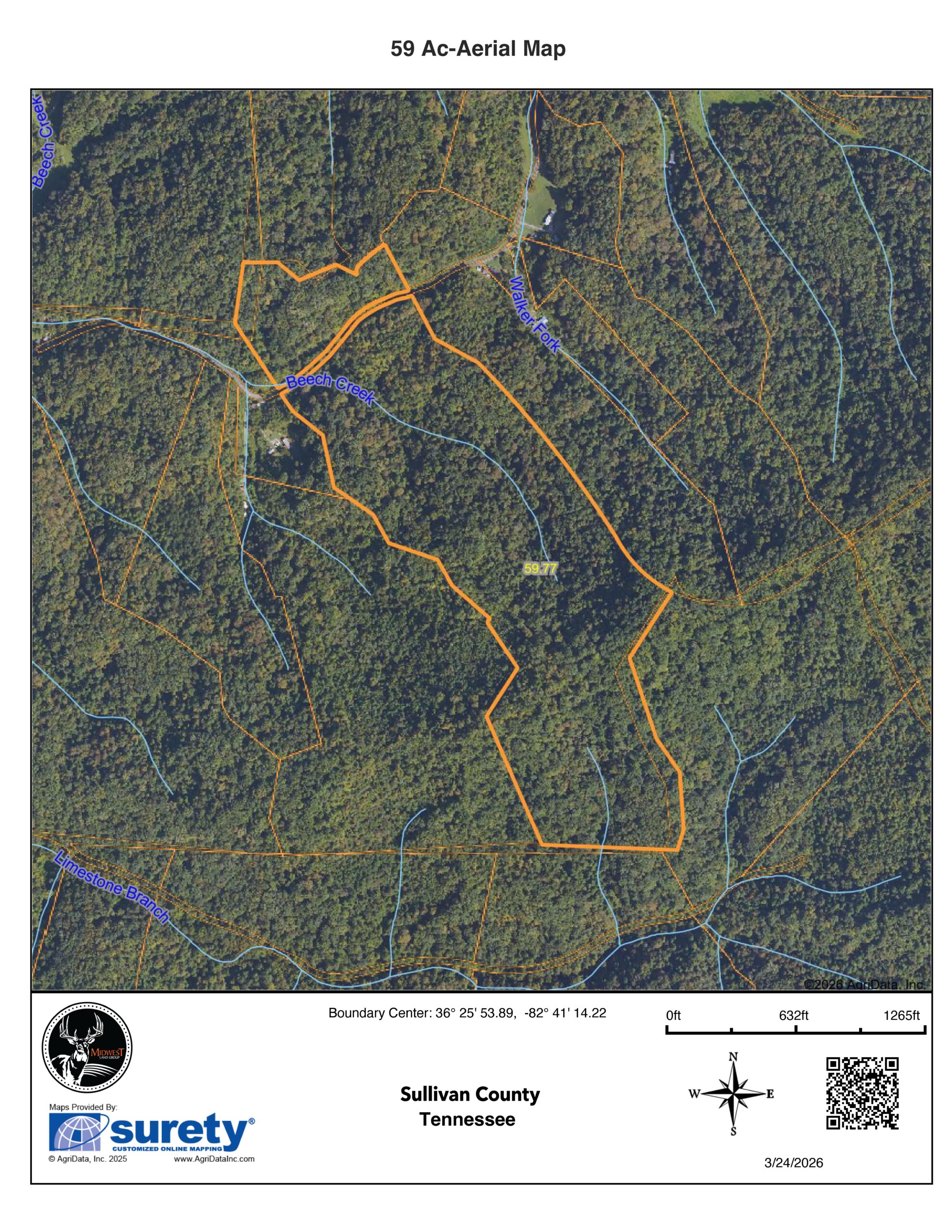 Nestled along the Sullivan/Hawkins County line in the heart of East Tennessee, this remarkable 59-acre tract on Light Hollow Road offers a rare blend of natural beauty, seclusion, and versatility. The property is thoughtfully divided by Light Hollow Road itself, with just over 6 acres on one side and the expansive remaining acreage on the opposite side — creating a unique opportunity to retain the larger parcel while selling the smaller portion for additional income. With over 800 feet of road frontage along a well-maintained and recently paved Light Hollow Road, access is both convenient and impressive. Whether you're searching for a private retreat, a homestead, or a long-term land investment, this property checks every box.The land is defined by its stunning mountainous and rolling hillsides, draped with large, mature oak trees and a rich variety of native East Tennessee hardwoods that provide both beauty and timber value. Beech Creek meanders through the property, originating from an on-site springhead and offering a pristine, year-round water source that enhances both the aesthetic and practical appeal of the land. An established road leads into the interior of the property, and with minimal cleanup, will provide excellent access throughout. Additionally, old logging roads running along both sides of Beech Creek offer easy passage through the entire hollow, making exploration and development of the back portions of the tract straightforward and accessible.