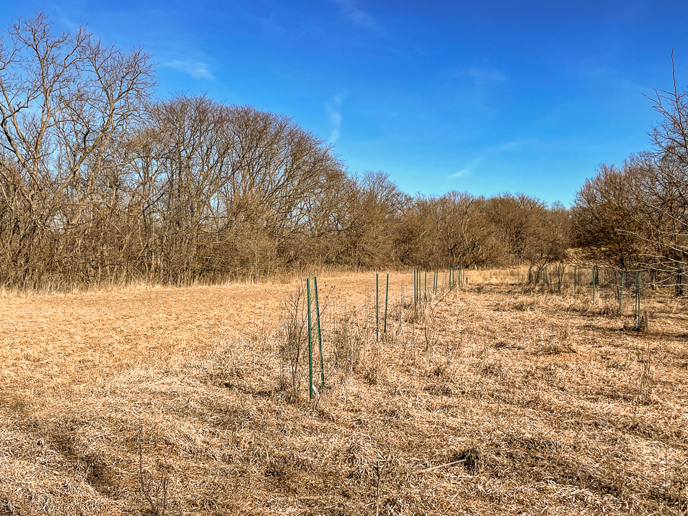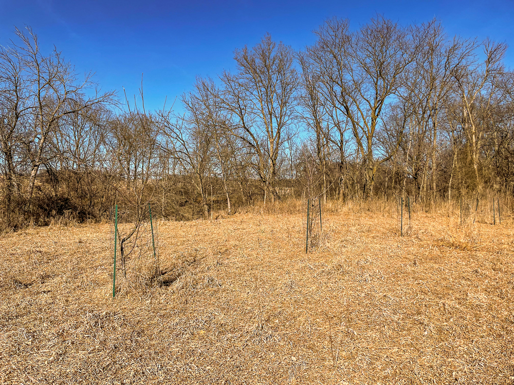 - Rows of apple trees and established tree plantings