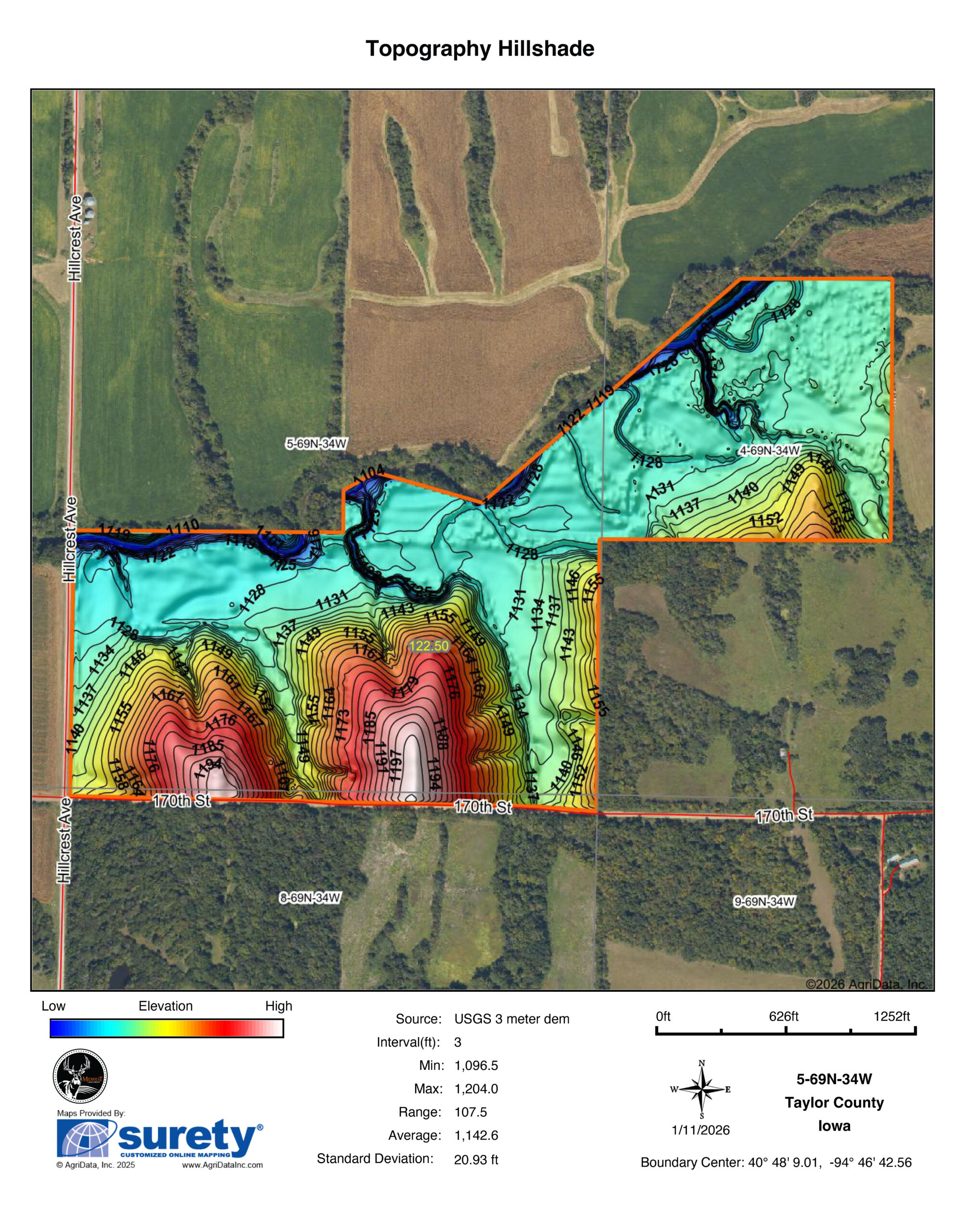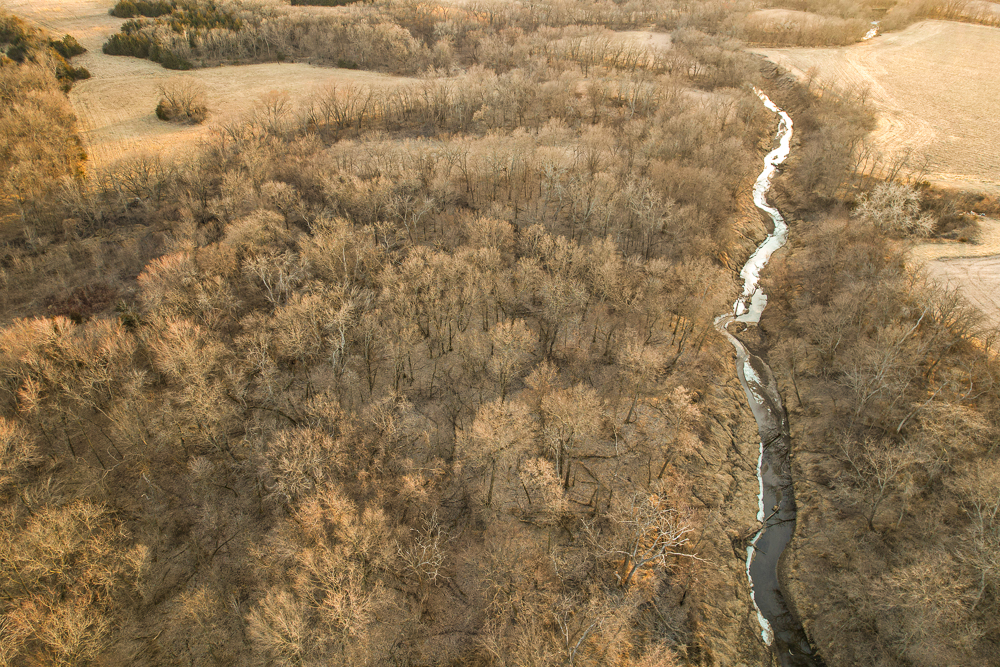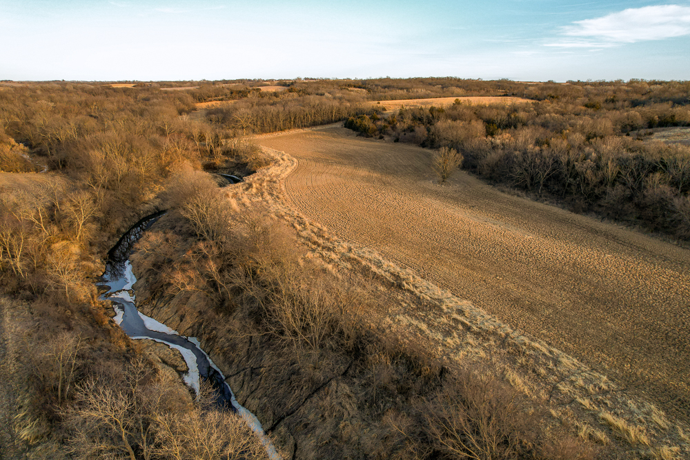 This is, without question, one of the most well-laid-out whitetail farms in southern Iowa. Located in the heart of big-buck country, this Taylor County tract offers everything serious hunters and land investors are looking for — income, access, habitat diversity, and documented giant whitetails. It’s my privilege to represent some of the finest whitetail farms in the state of Iowa, and I can confidently say this one stands among the very best on the market right now.The Middle Branch of the One Hundred and Two River forms the north boundary of the property, creating a natural travel corridor that acts like a revolving door for rutting bucks in November. The farm is a true habitat-rich environment with thick cedar thickets, beautiful stands of CP25, well-maintained buffer strips, and a large, low-pressure bedding sanctuary in the northeast corner that sees very little intrusion. While previewing the property, I personally observed over a dozen bucks in a single visit — a testament to the age structure and overall deer density in the area.