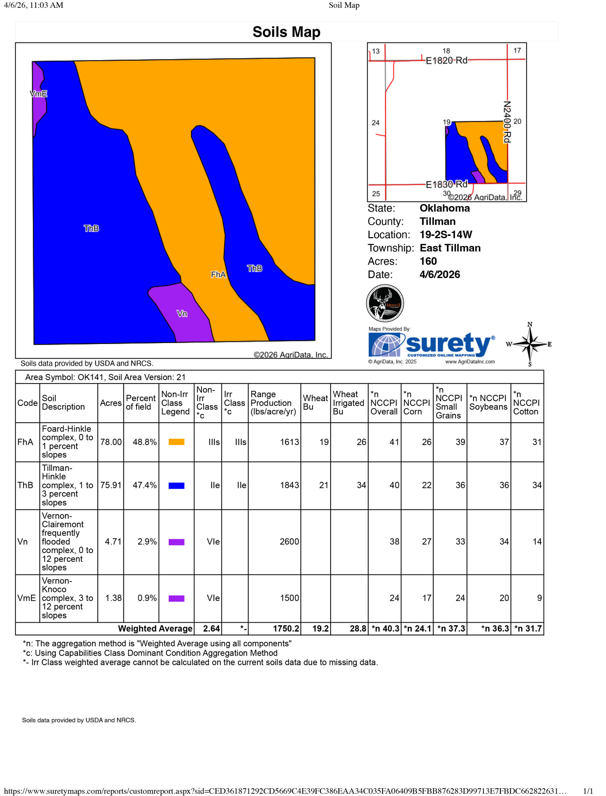 - 160 +/- acres in Tillman County, OK