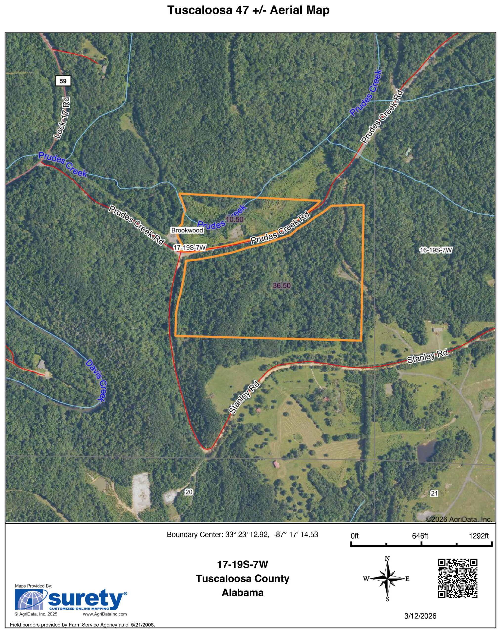 Discover the perfect blend of recreation, natural beauty, and future potential with this versatile property located within easy reach of Tuscaloosa and Birmingham. Featuring paved road frontage and access to nearby utilities, this tract is well-positioned for a private homesite, weekend getaway, or investment opportunity.The land is richly wooded with a mix of mature pine and hardwood timber, offering both aesthetic appeal and long-term value. A year-round creek winds through the property, enhancing the landscape and providing a reliable water source for wildlife.