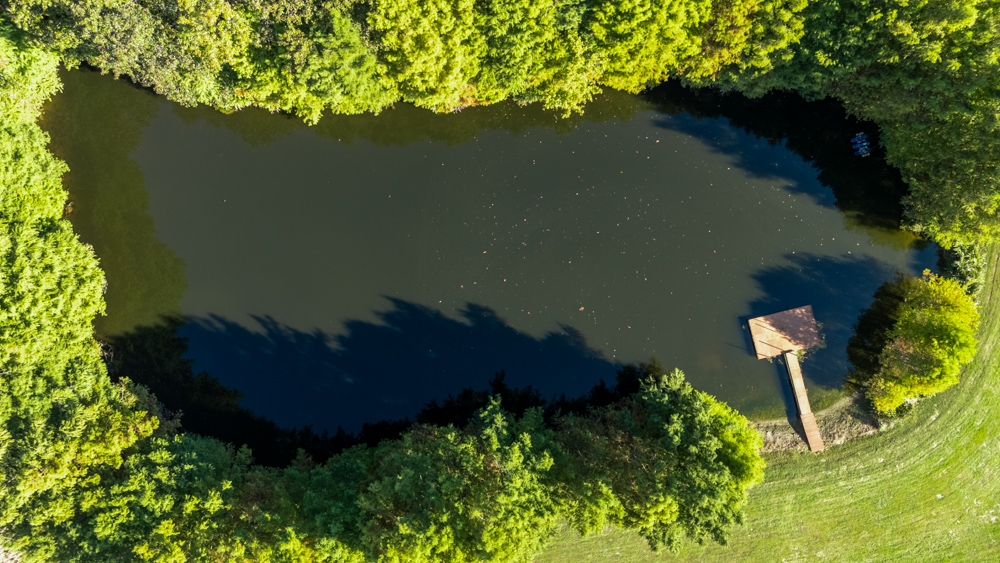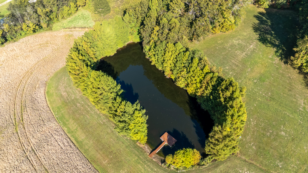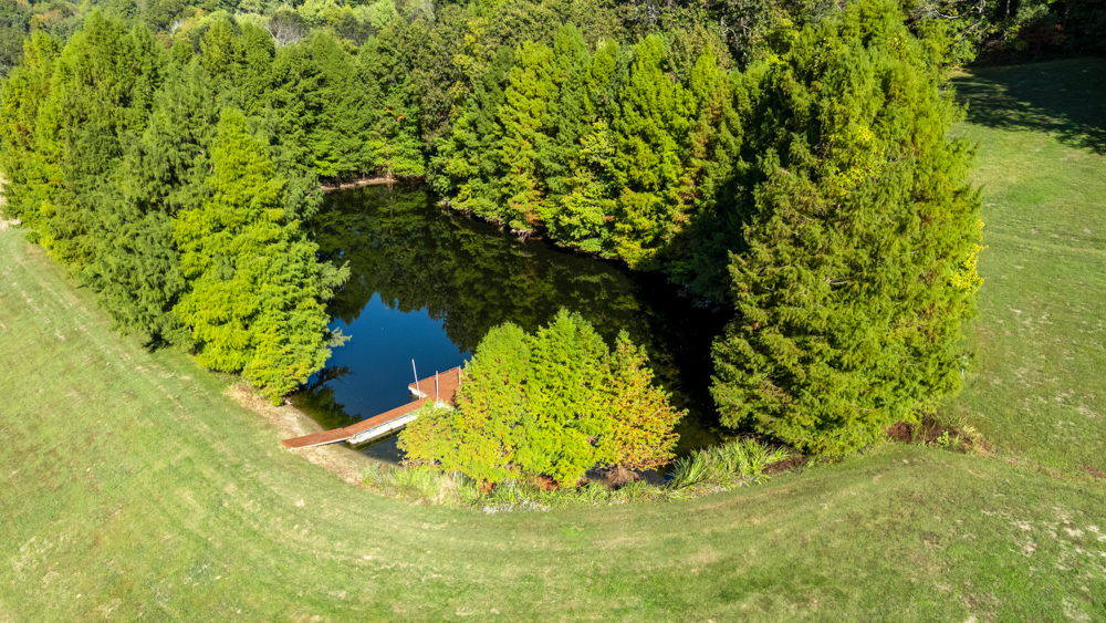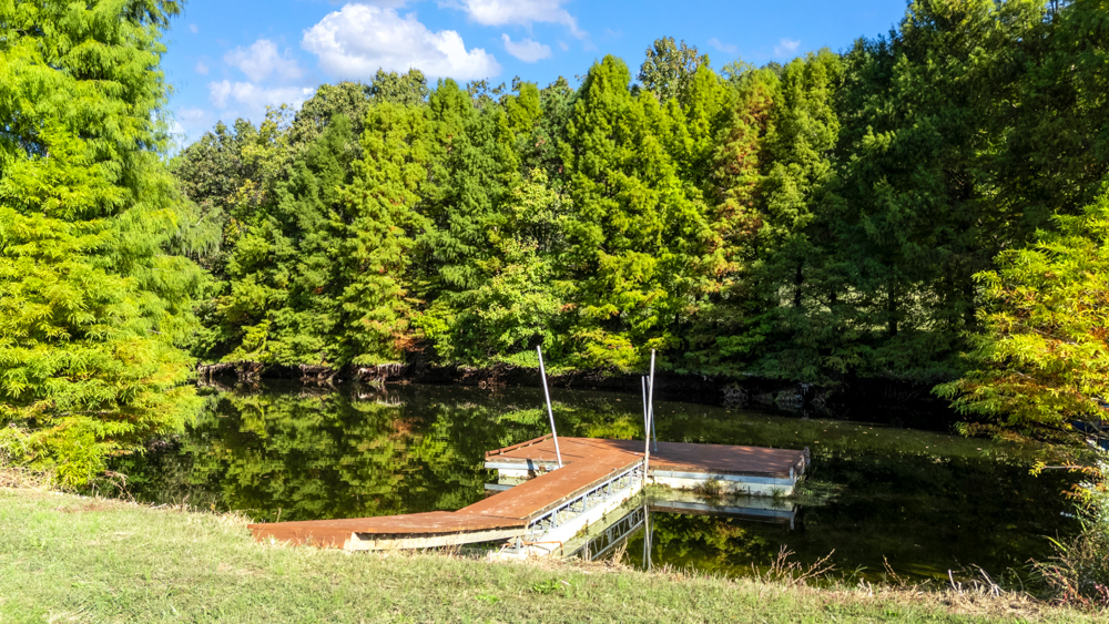 - Stocked pond with large catfish, bluegill, and bass