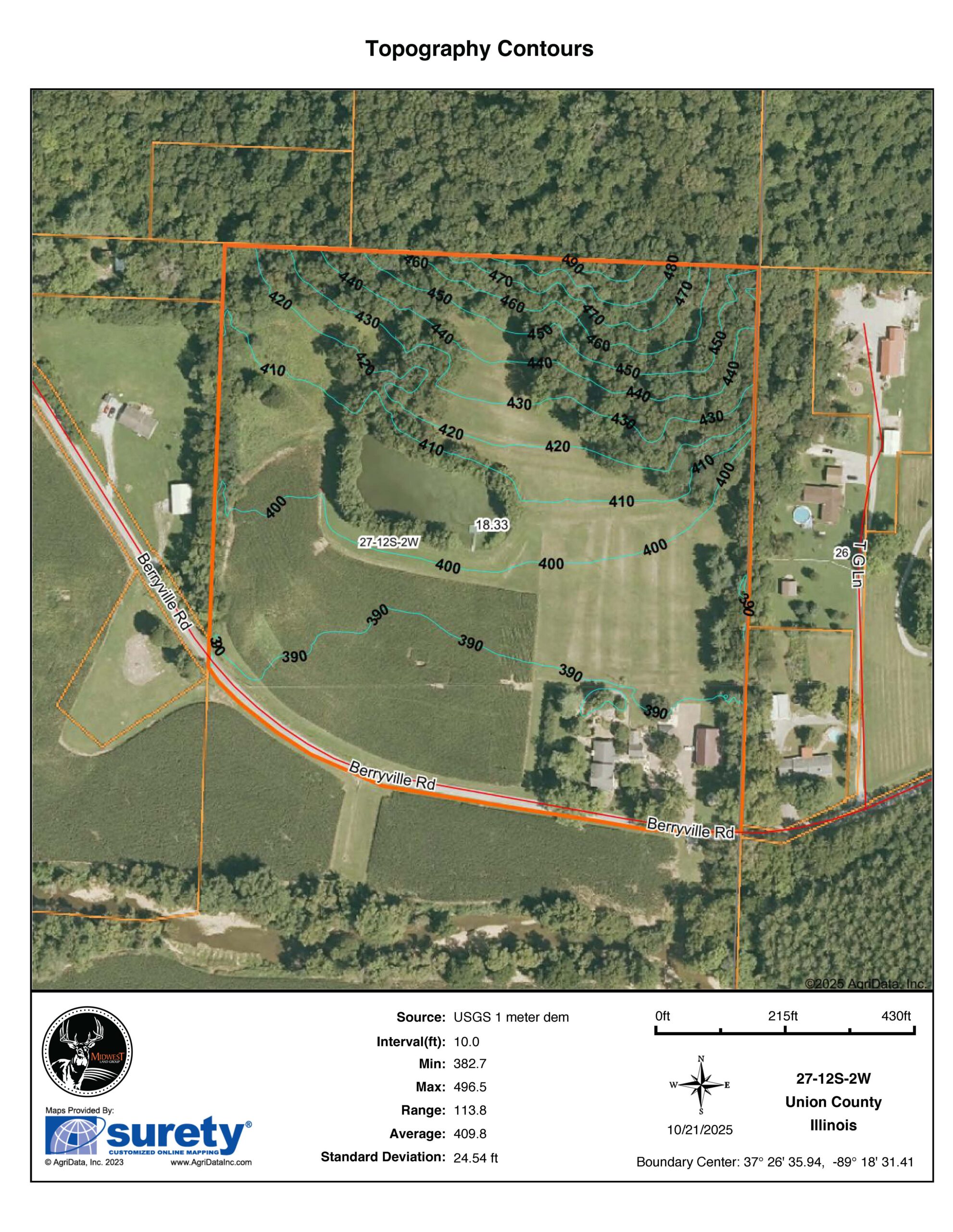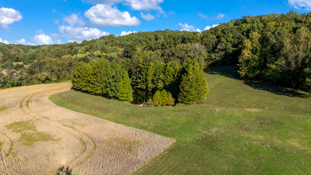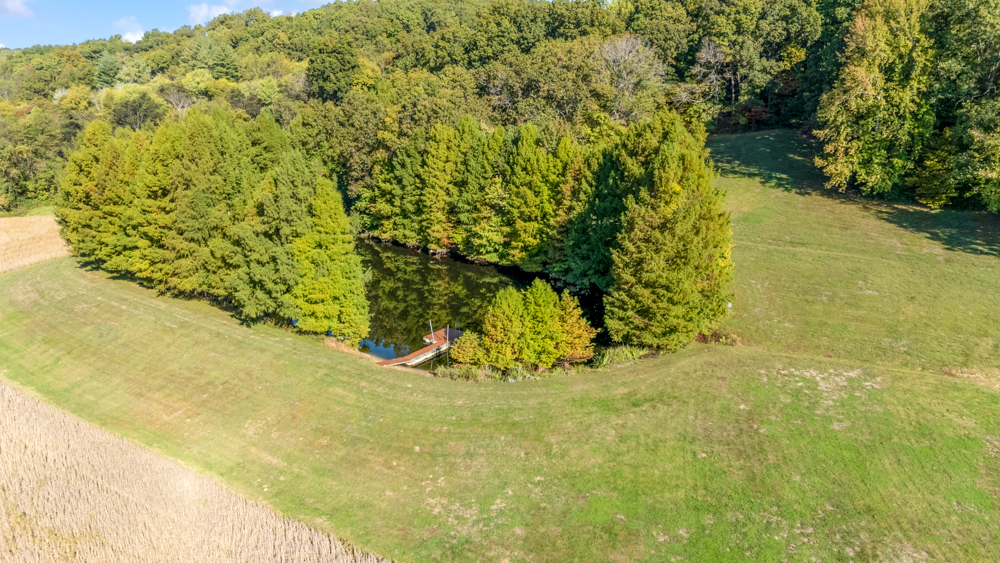 The remaining property has a small ag field that is currently being used for farming, a great wooded area that borders some of the Shawnee Nation Forest, and a fully stocked pond.