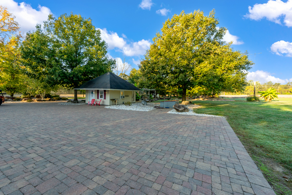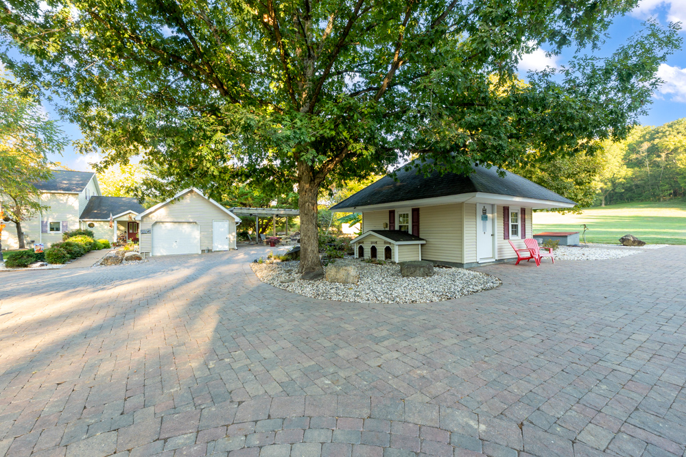 Steps away from the house, you will find 3 outbuildings for all your needs. Building 1 boasts a 30’x60’ with a concrete floor, insulated and heated. Complete with 3 automatic garage doors, 2 walk-in doors, and a 13’x60’ lean-to off the back side. Building 2 is 22’x18’ with a concrete floor, a garage door, and walk doors. Building 3 is 18’x16’, perfect for a wood shop or mancave/she-shed. A concrete floor covered with easy walk foam floor, electric, heat, and A/C. The driveway boasts custom-designed pavers that add a beautiful touch as you drive into the property.