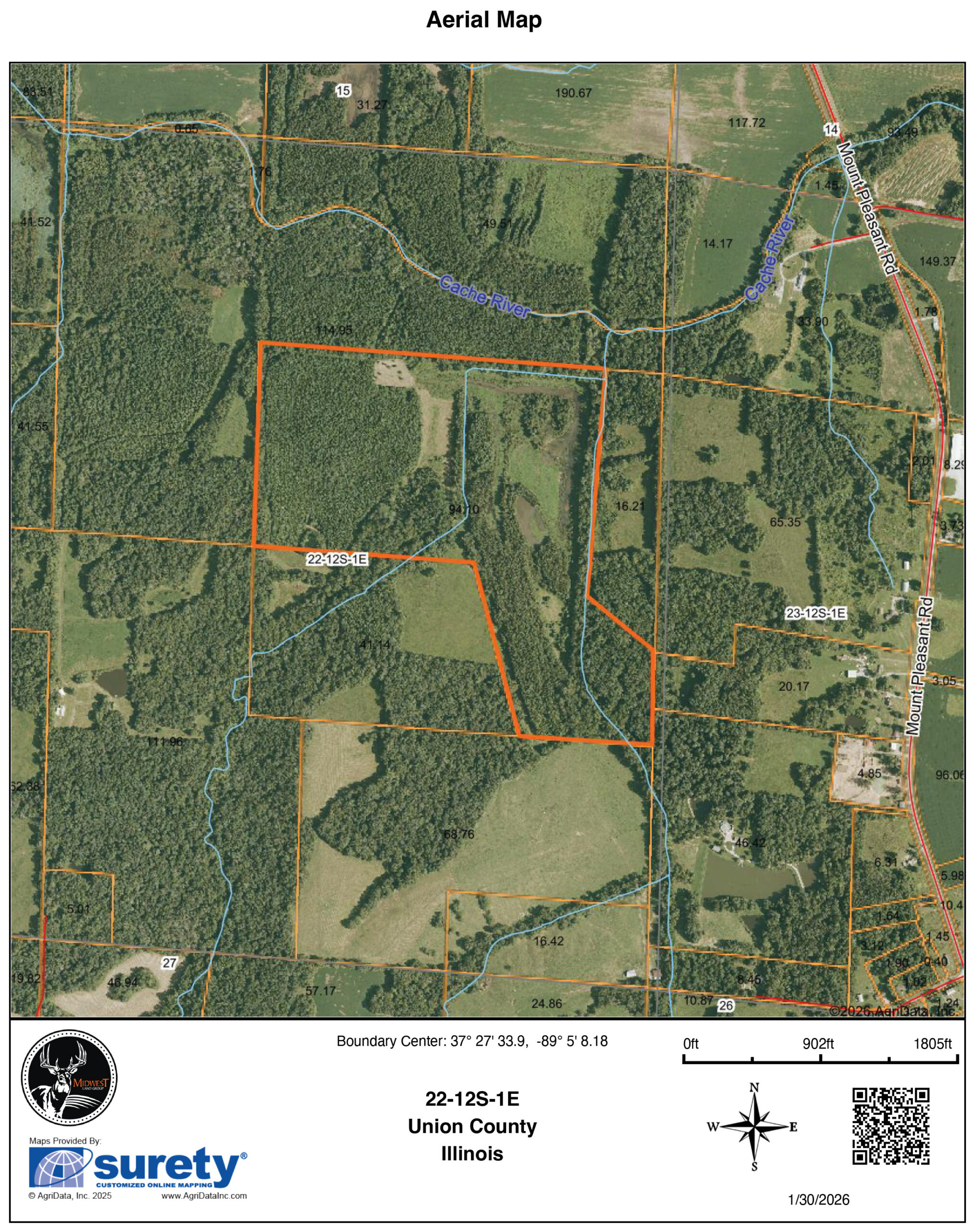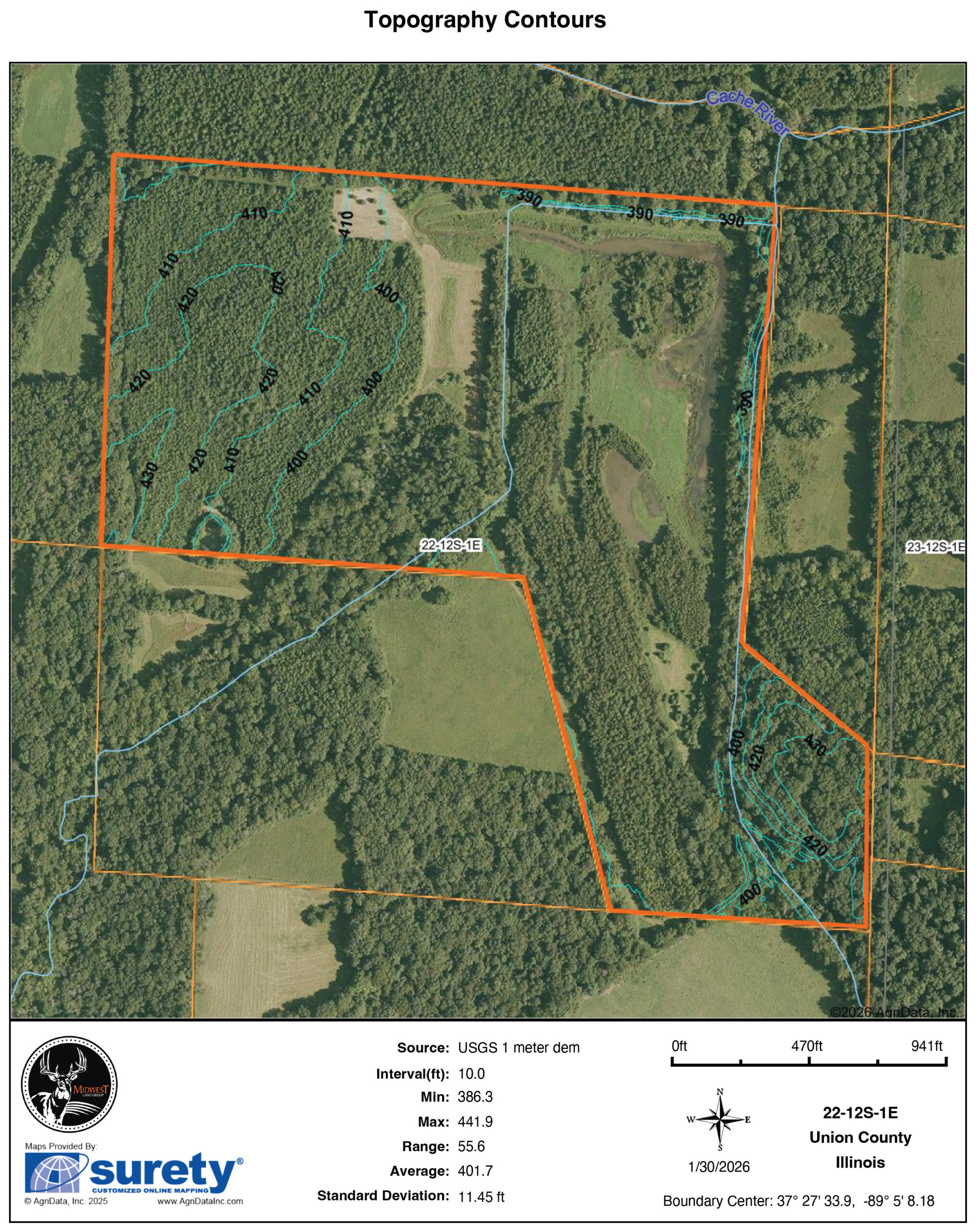 Located in Union County, Illinois, just minutes from Interstate 57, this exceptional 92 +/- acre recreational tract offers a rare opportunity to own a turn-key hunting and waterfowl property in one of Southern Illinois’ most desirable outdoors corridors. Situated approximately ½ mile off the county road, the property is accessed via a recorded easement through the neighboring parcel, providing privacy and seclusion without sacrificing convenience.The land is enrolled in a lifetime WRP (Wetlands Reserve Program) and has been meticulously designed and maintained by the owner to maximize habitat quality and wildlife usage. Approximately 20 acres are thoughtfully developed into a premier duck hole, featuring constructed levees with water-control structures and floodgates, allowing precise management of water levels throughout the season.
