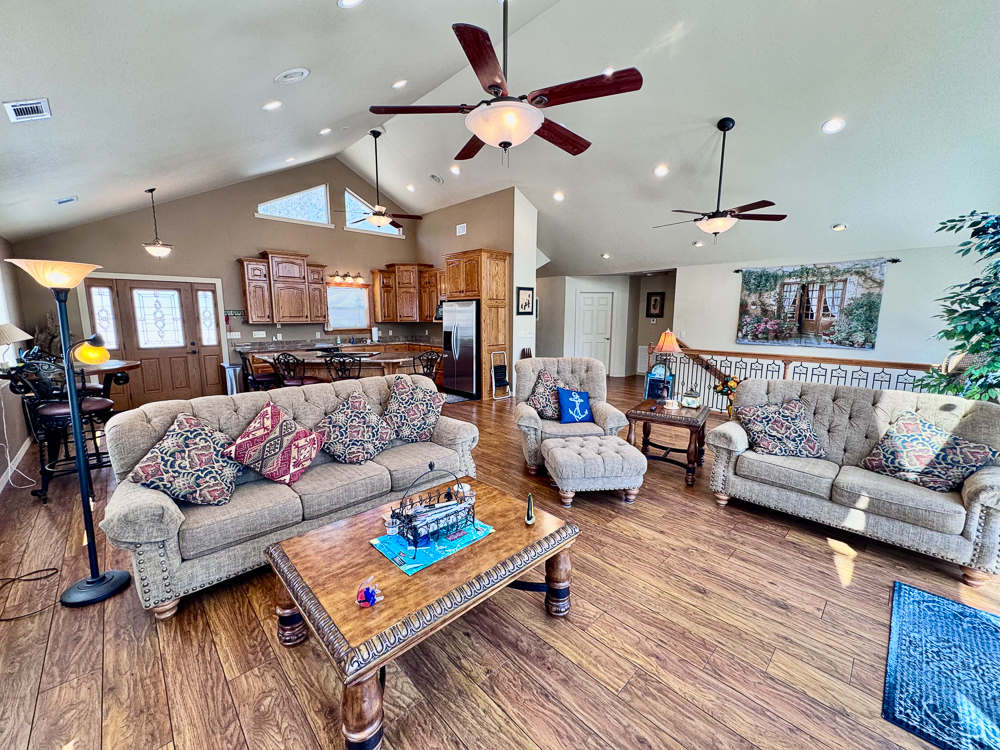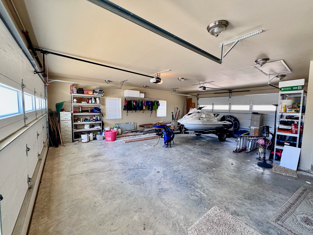 The oversized garage offers ample space for vehicles, lake toys, and storage—ideal for anyone who loves the outdoors.