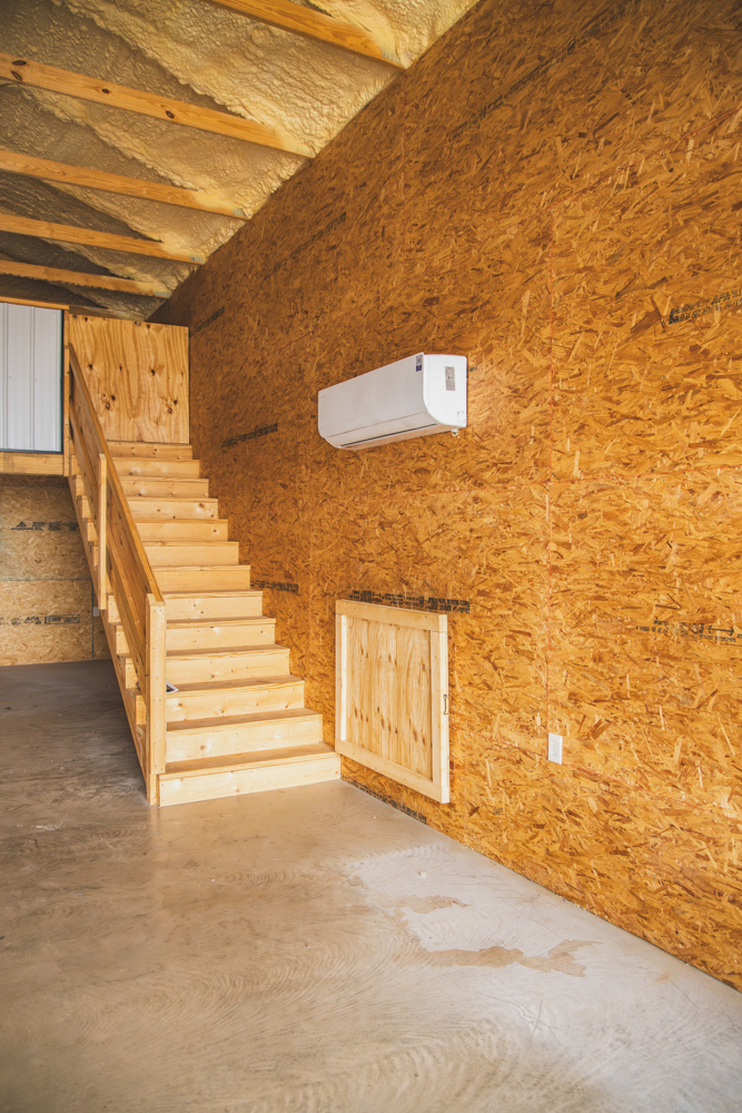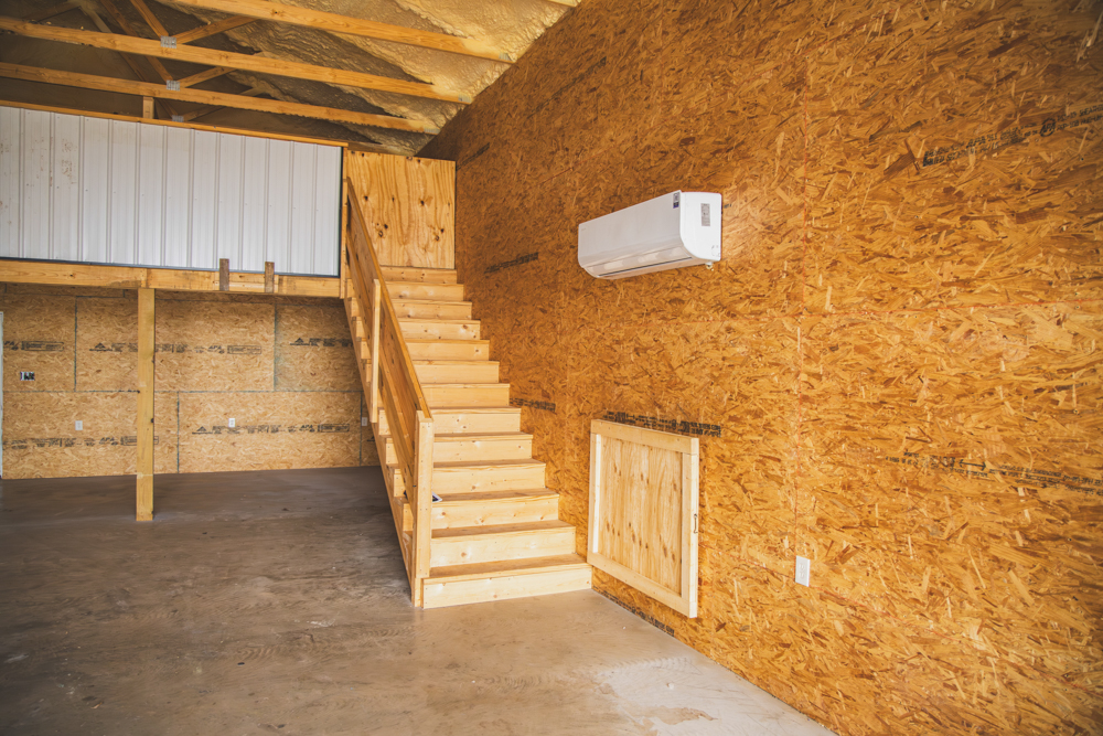 Improvements include a 40’x50’x14’ stick-built shop with a 14’x50’ lean-to, fully spray-foam insulated and sheeted. The interior is finished with a bathroom, laundry room, bedroom, full washroom, and a 10’x40’ loft with four bunk spaces, allowing the structure to function immediately as a temporary residence, guest quarters, or seasonal duck camp rental. A 36,000 BTU mini-split system provides efficient heating and cooling, and three oversized garage doors allow easy access for equipment, boats, or side-by-sides.