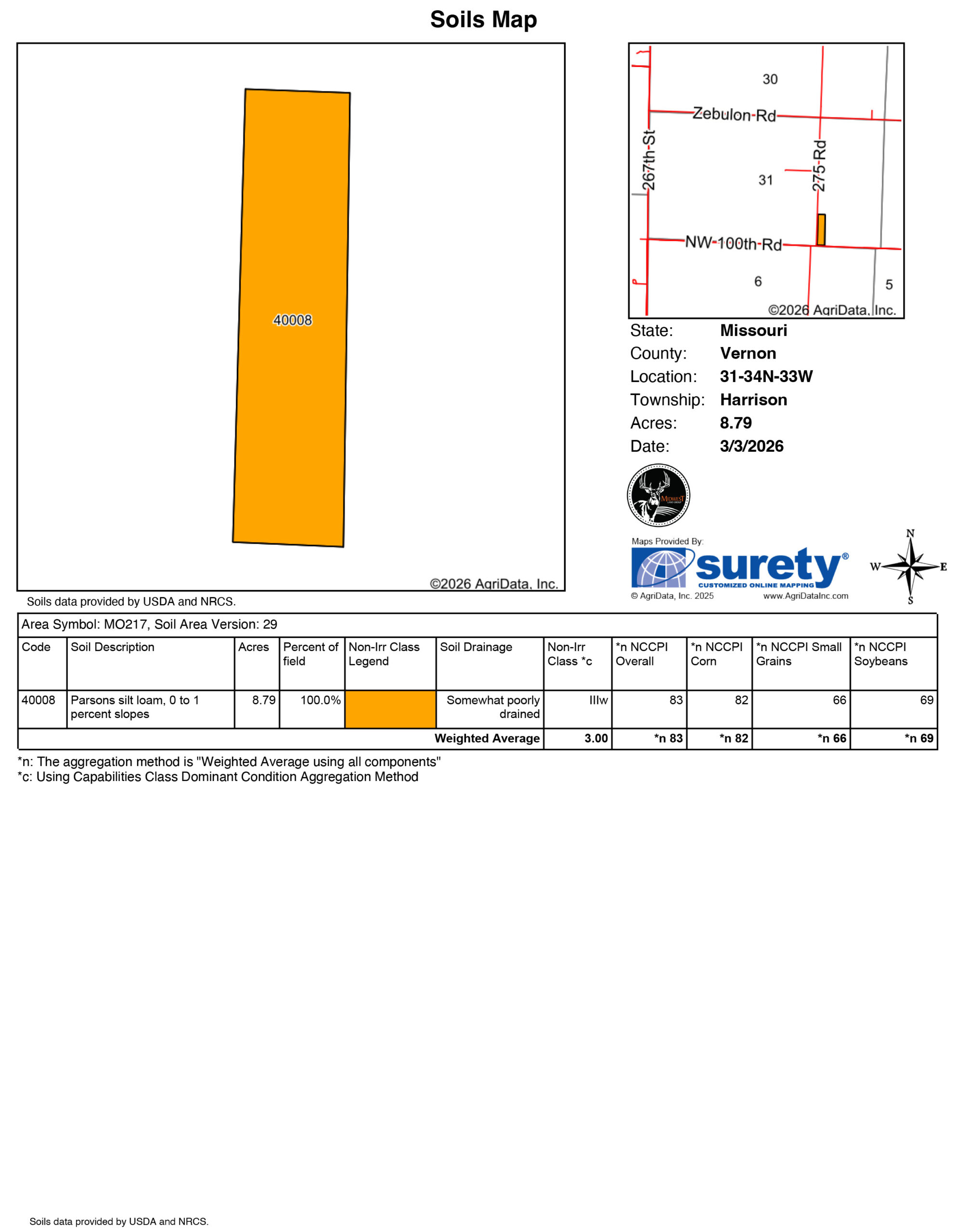 - Soil is Class 3 Parson Silt Loam