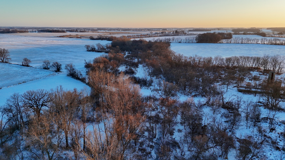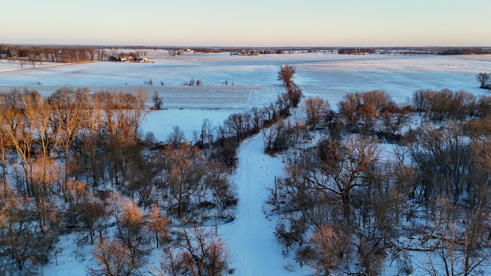 Soils are predominantly Pecatonica silt loam, Pella silt loam, and Flagg silt loam—well-regarded soils that support consistent yields and long-term agricultural value. Multiple access points along County Highway B provide convenient ingress and egress to the southern fields, while well-maintained trails allow seamless access across Ladd Creek to the northern tillable acres.